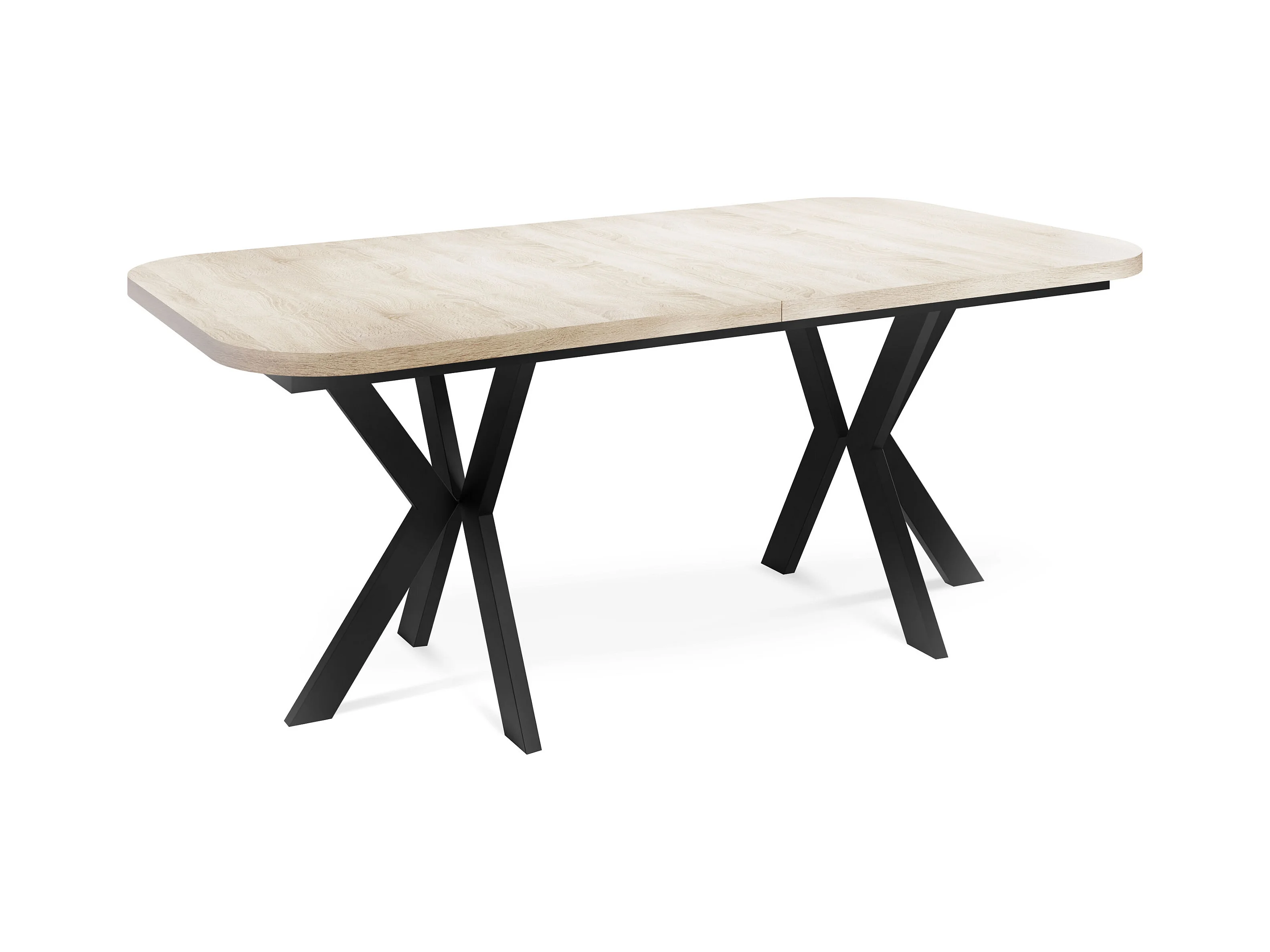 Table de Salle à Manger à Rallonges de Style Moderne - Table Rectangulaire avec Pieds en Métal Noir - Table Industrielle - 200 x 100 cm - Chêne Sonoma