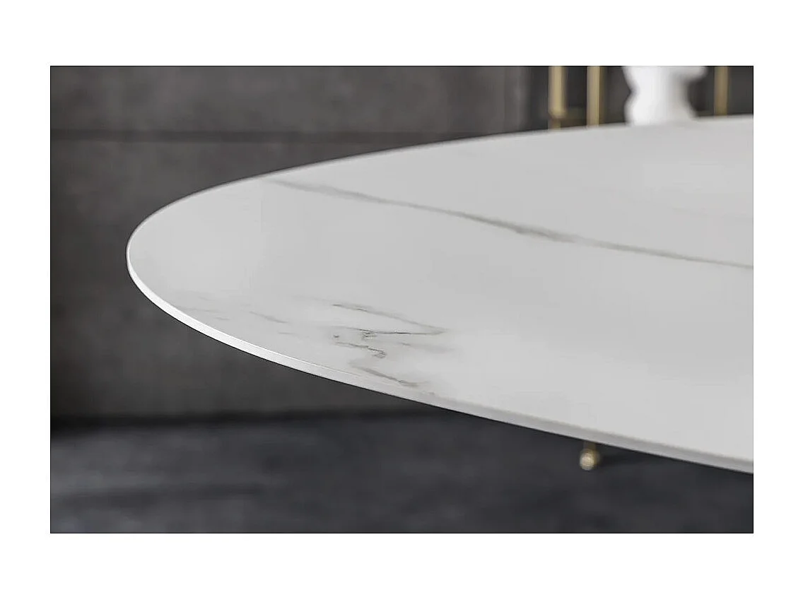 Table de salle à manger AERIS – Ovale 280 cm – Plateau céramique effet marbre blanc – Pieds métal – Style chic
