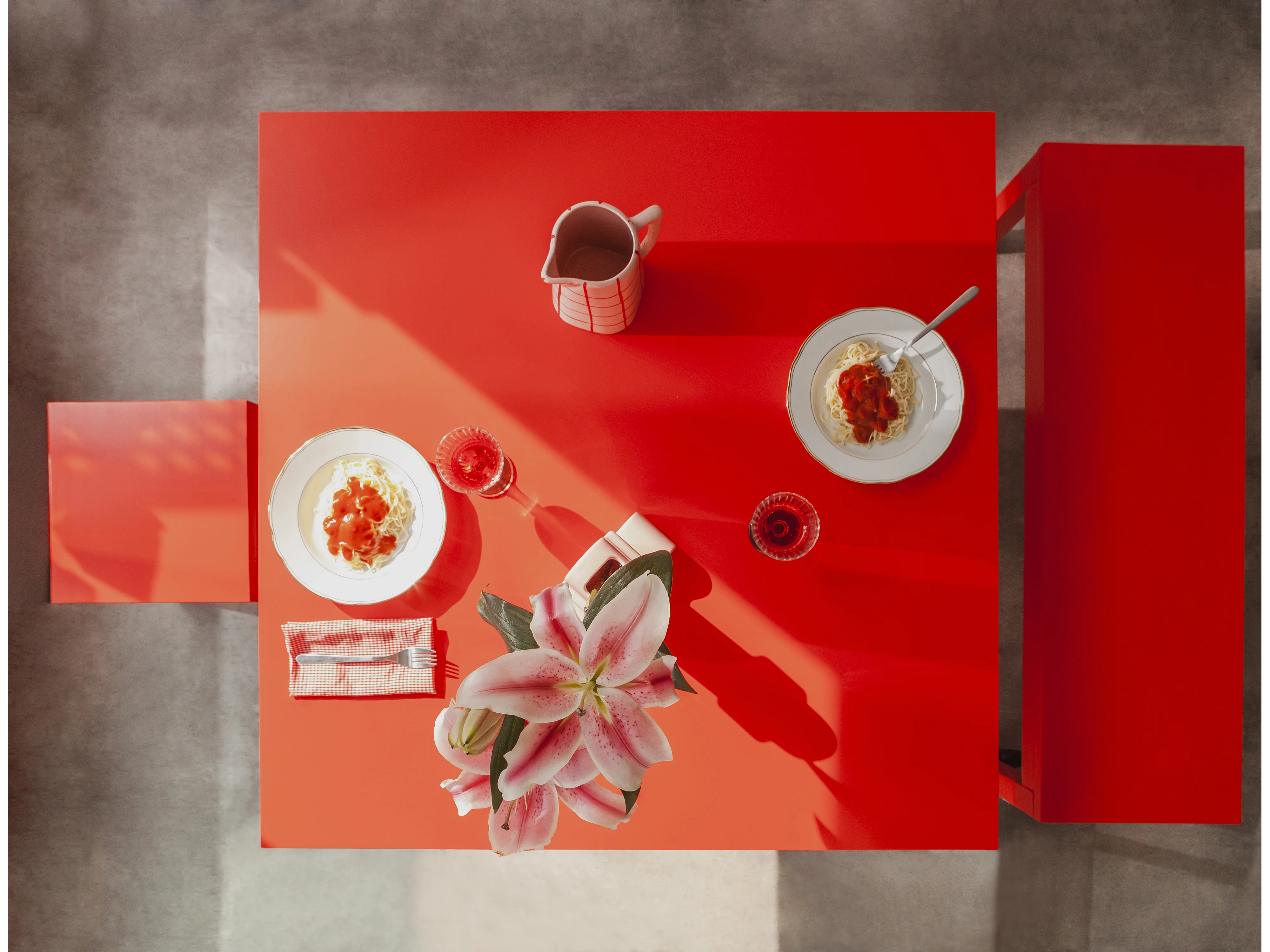 Table de salle à manger carrée panneau stratifiée 3cm Rouge Flamme 100