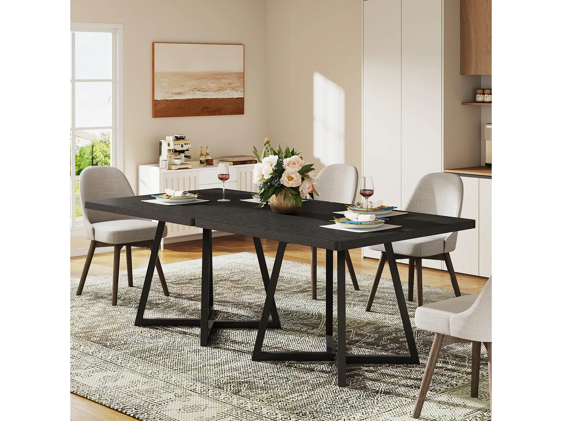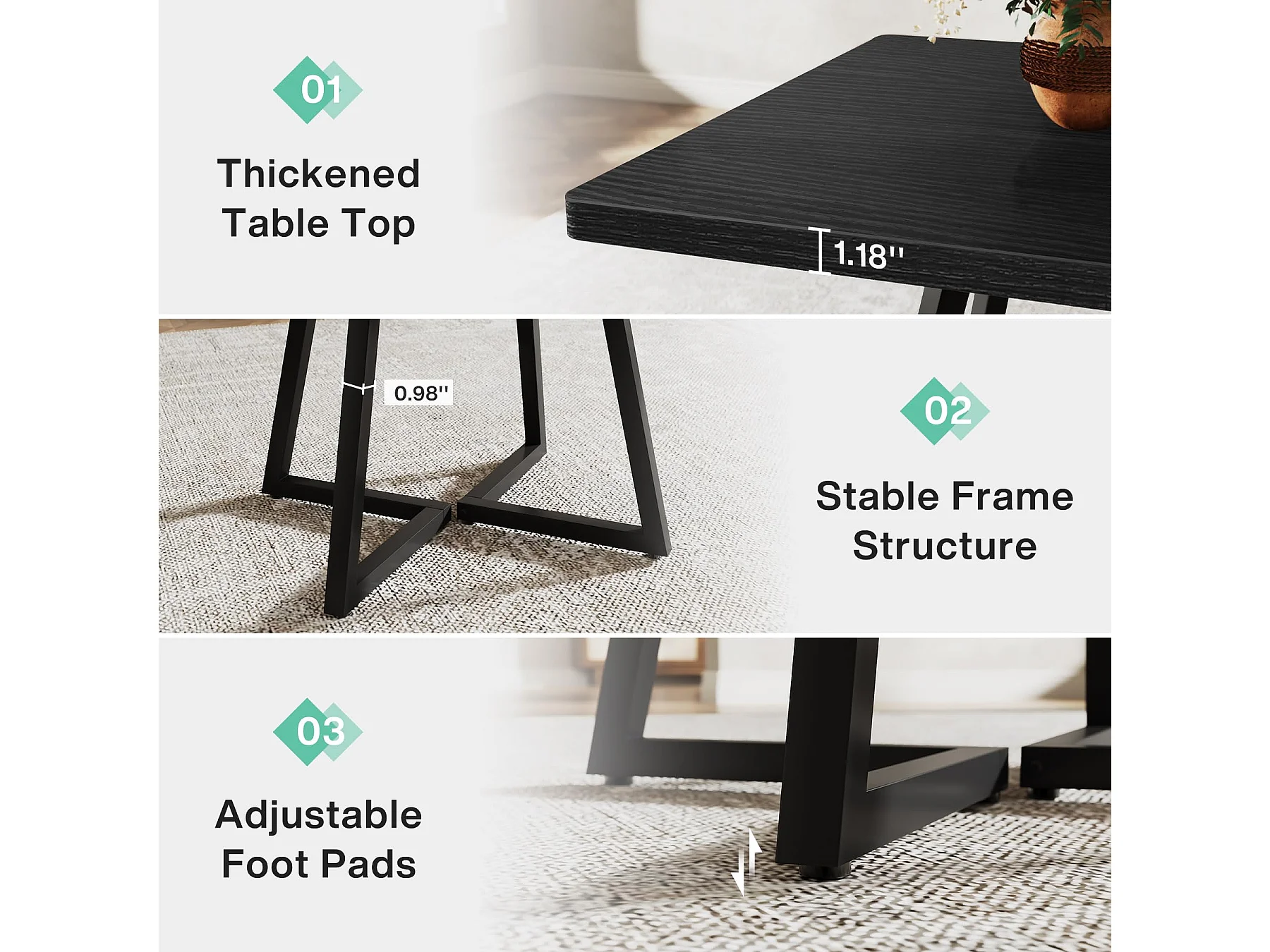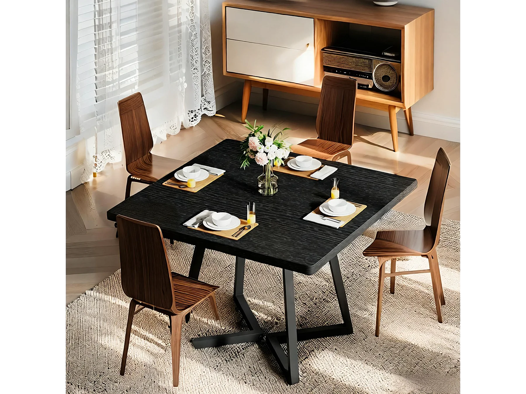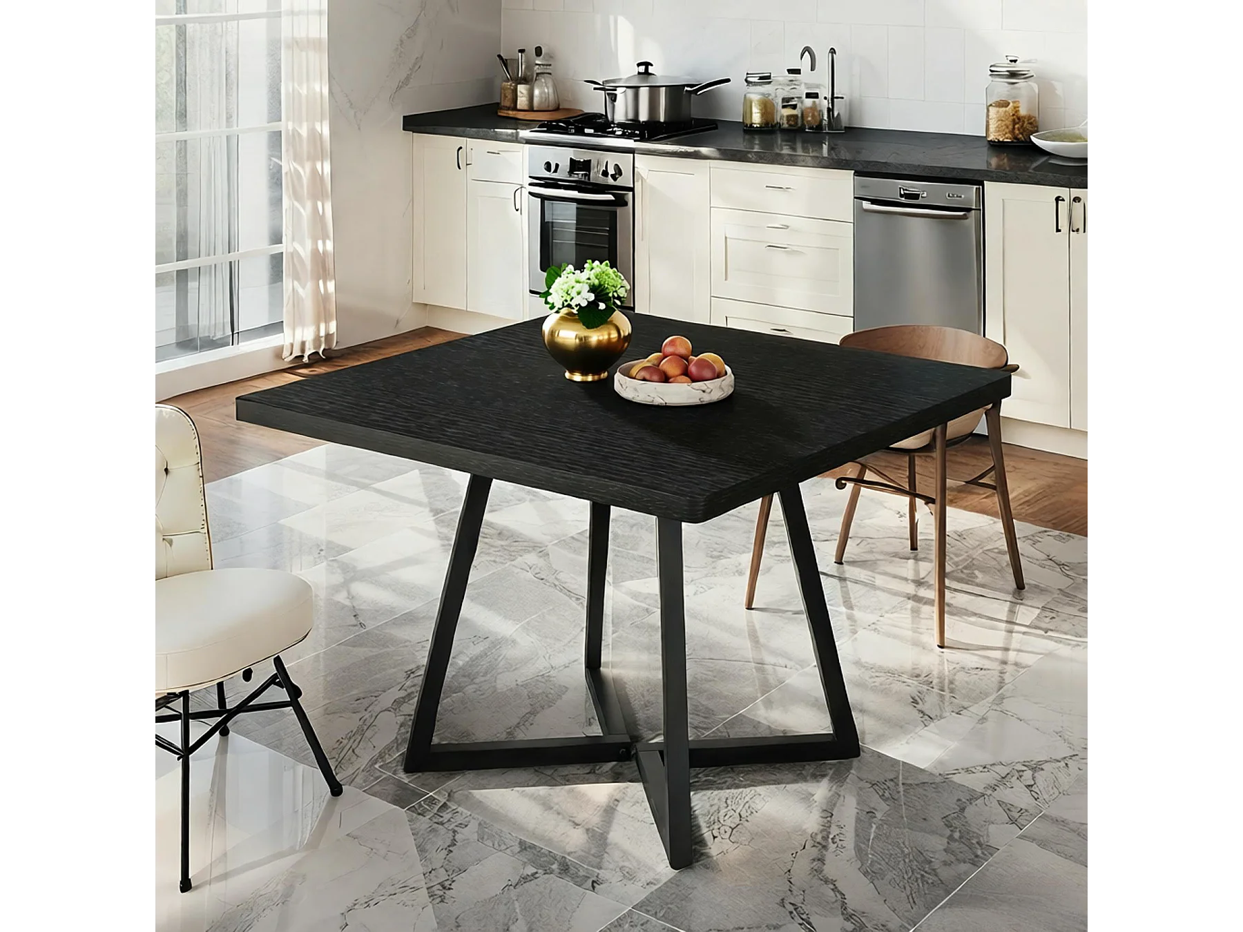 Table de salle à manger carrée pour 10,2 cm, table à manger industrielle avec base en métal, table de cuisine en bois pour salle à manger, petit espace, noir