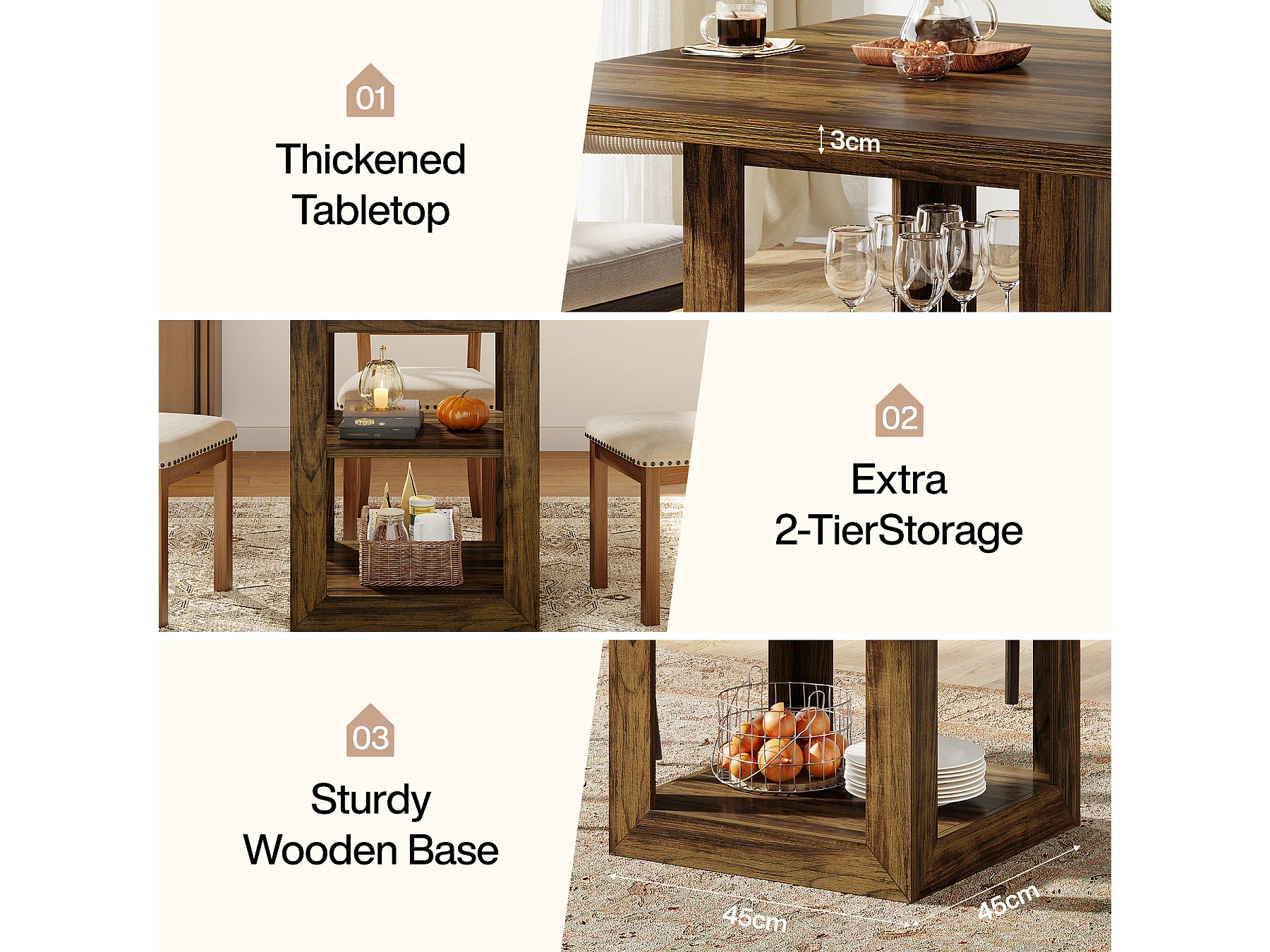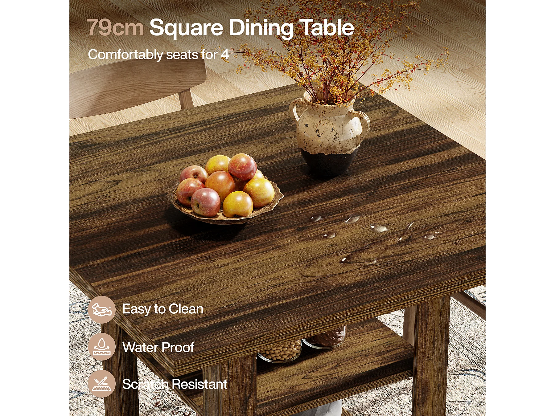 Table de salle à manger carrée pour 4 personnes, 80 cm, style campagnard, avec étagère de rangement pour la cuisine ou la salle à manger.
