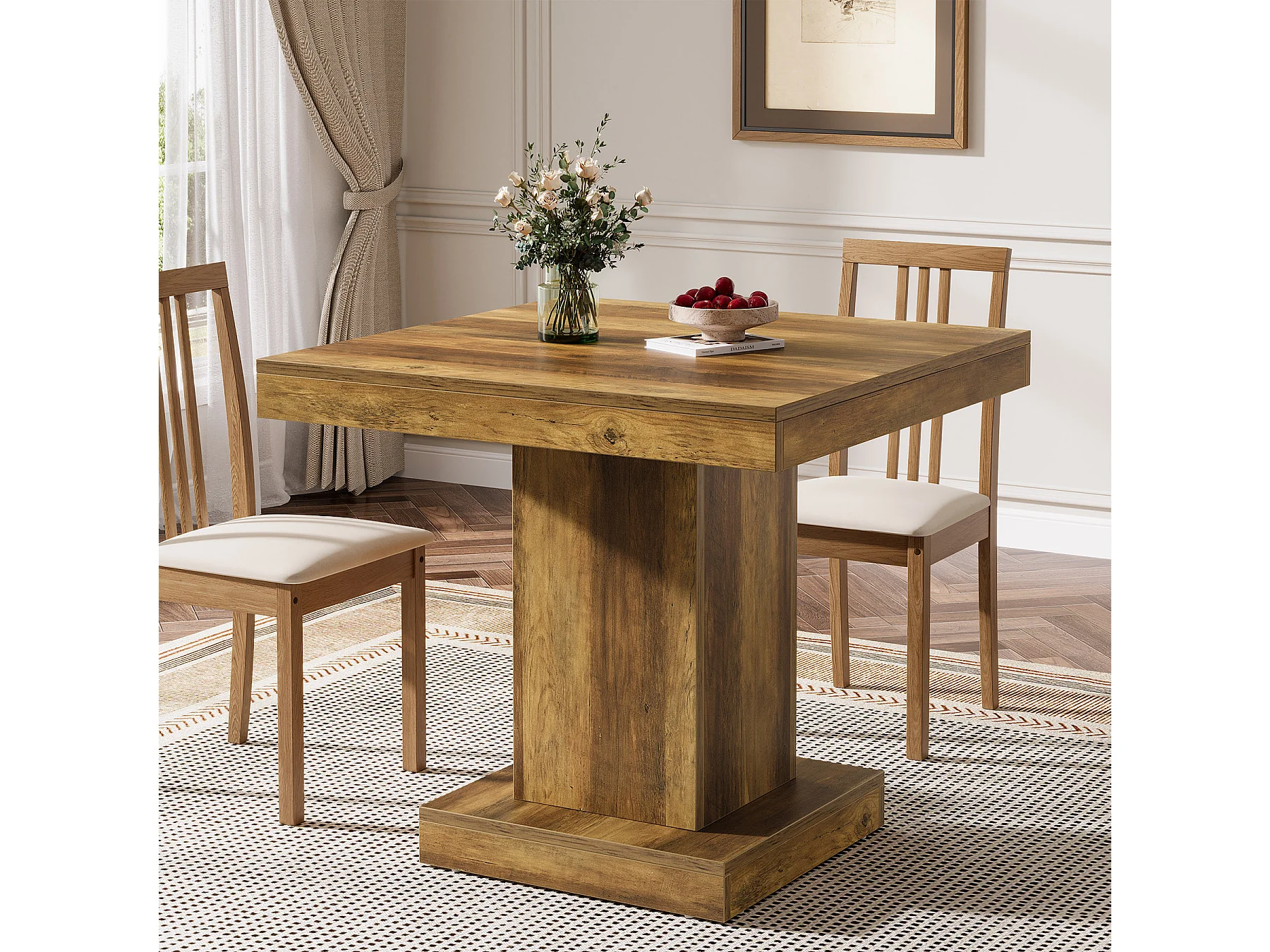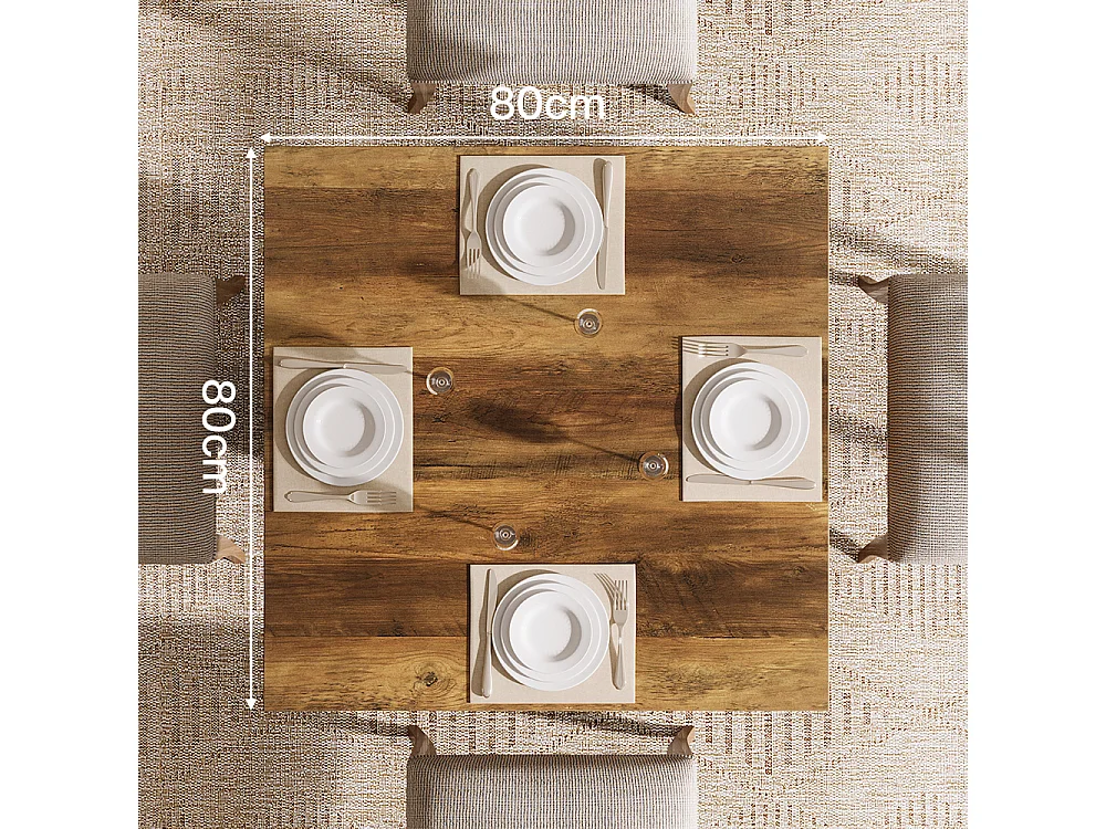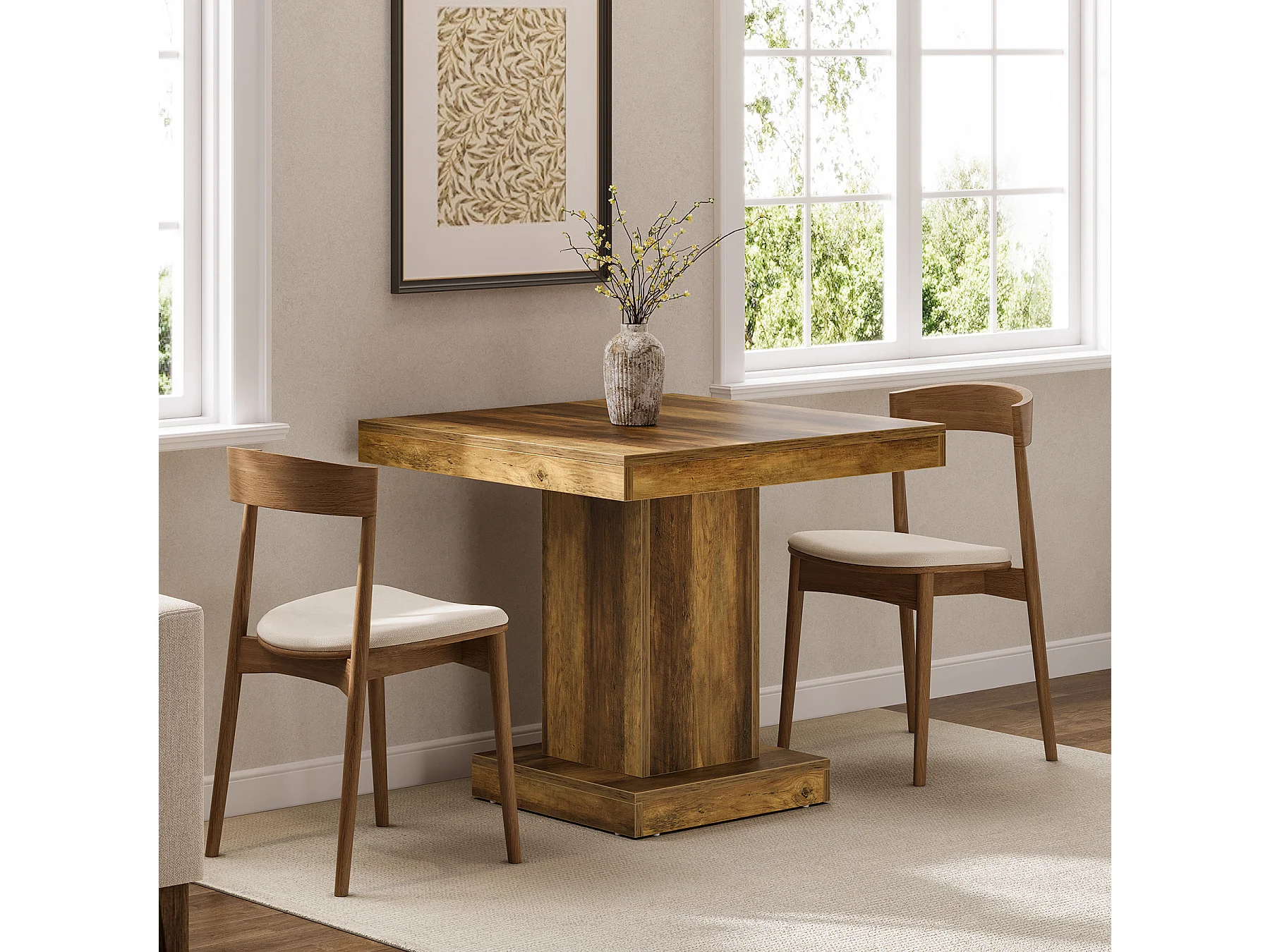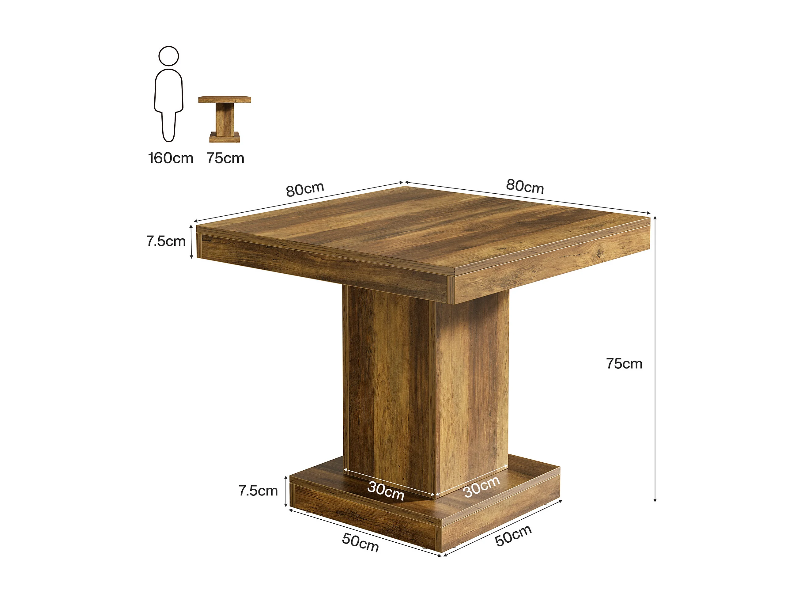 Table de salle à manger carrée pour 4 personnes, table de cuisine de style campagnard avec pied central robuste