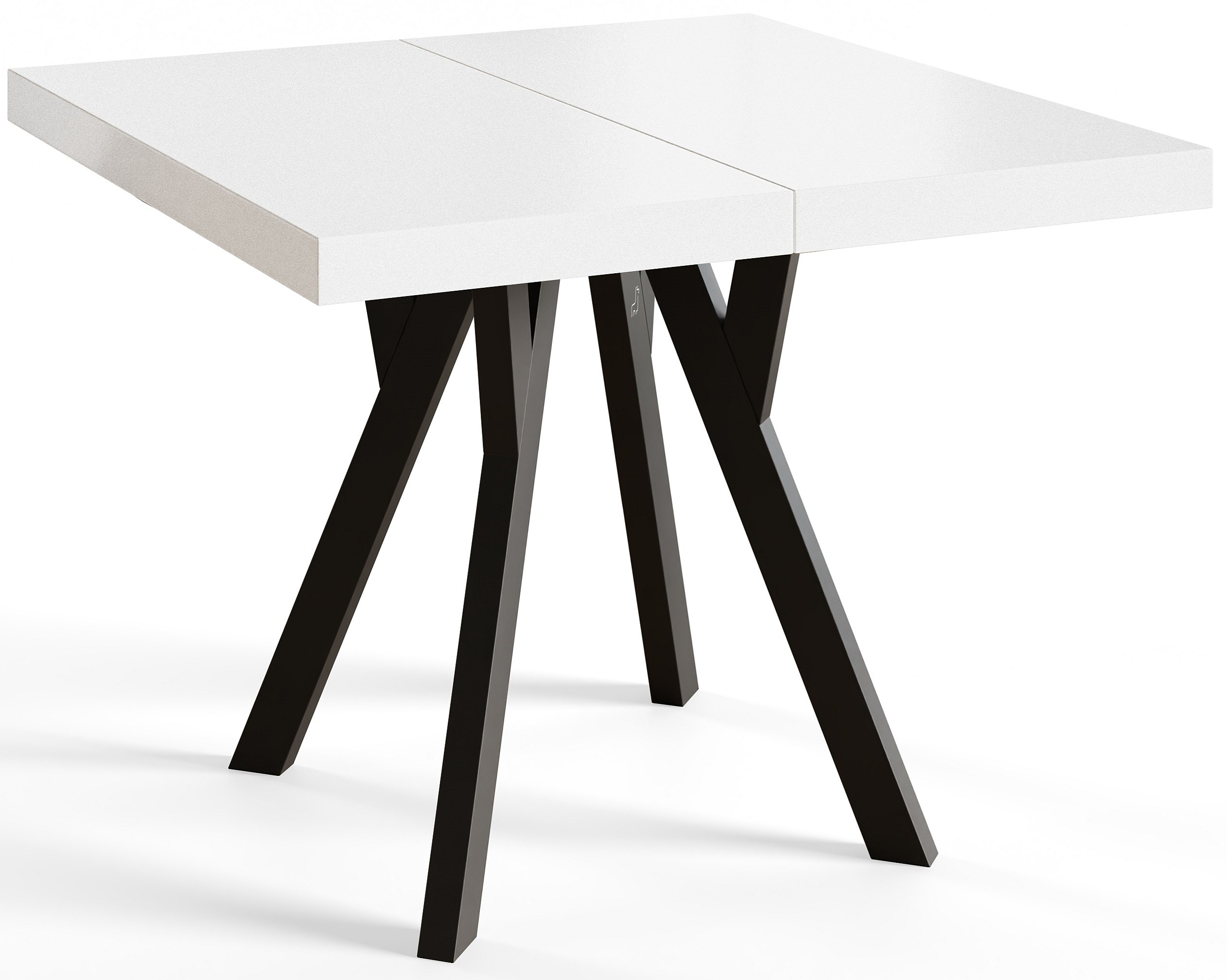 Table de salle à manger carrée RICO, table à rallonges, dimensions: 100-200X100X77 cm, couleur: blanc, avec pieds en bois de couleur noir