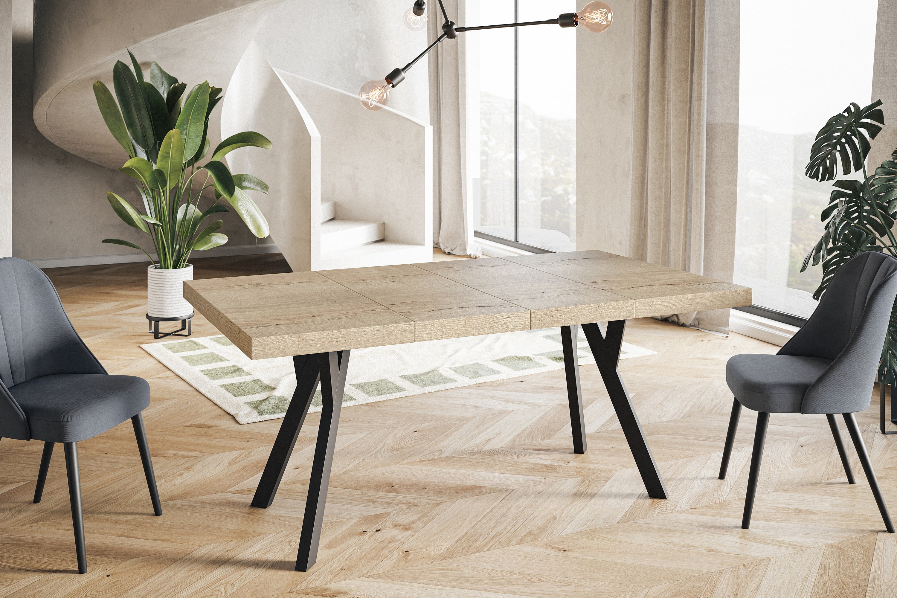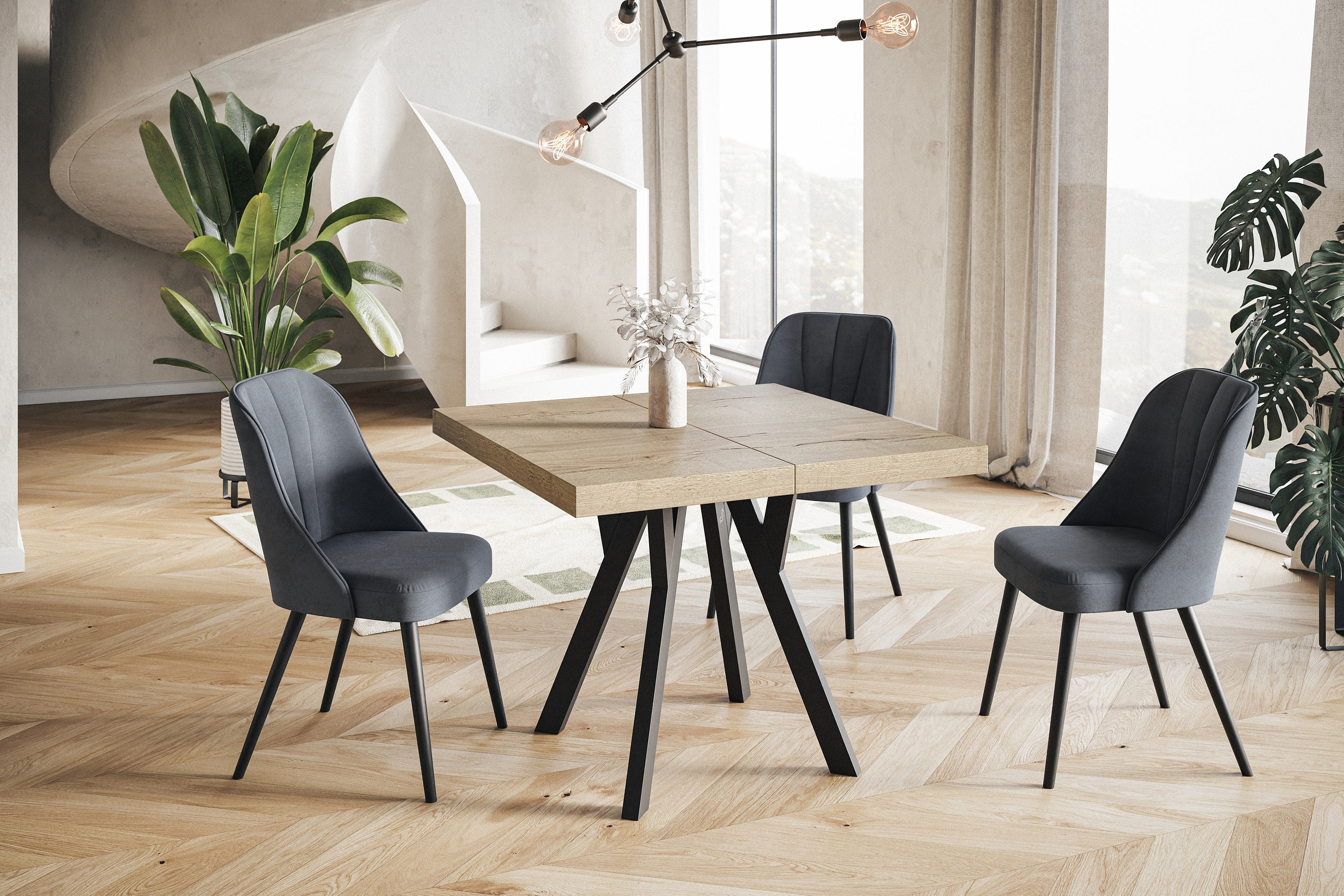 Table de salle à manger carrée RICO, table à rallonges, dimensions: 120-220X120X77 cm, couleur: HALIFAX, avec pieds en bois de couleur noire