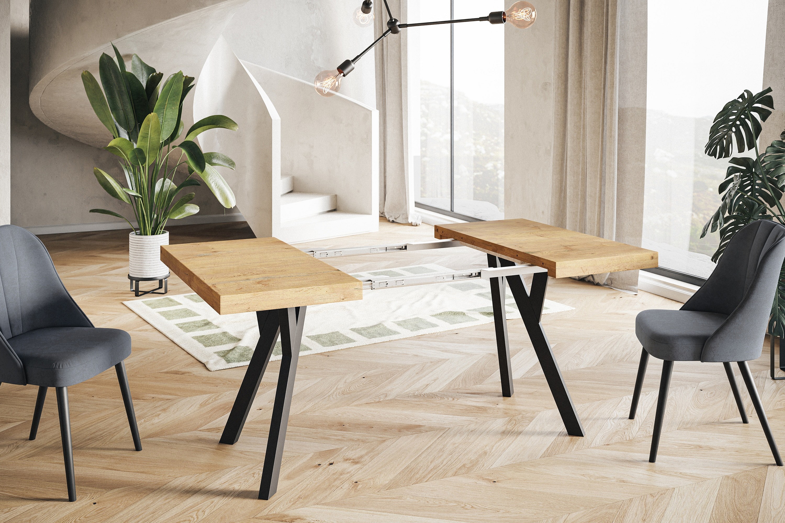 Table de salle à manger carrée RICO, table à rallonges, dimensions: 120-220X120X77 cm, couleur: LANCELOT, avec pieds en bois de couleur noire