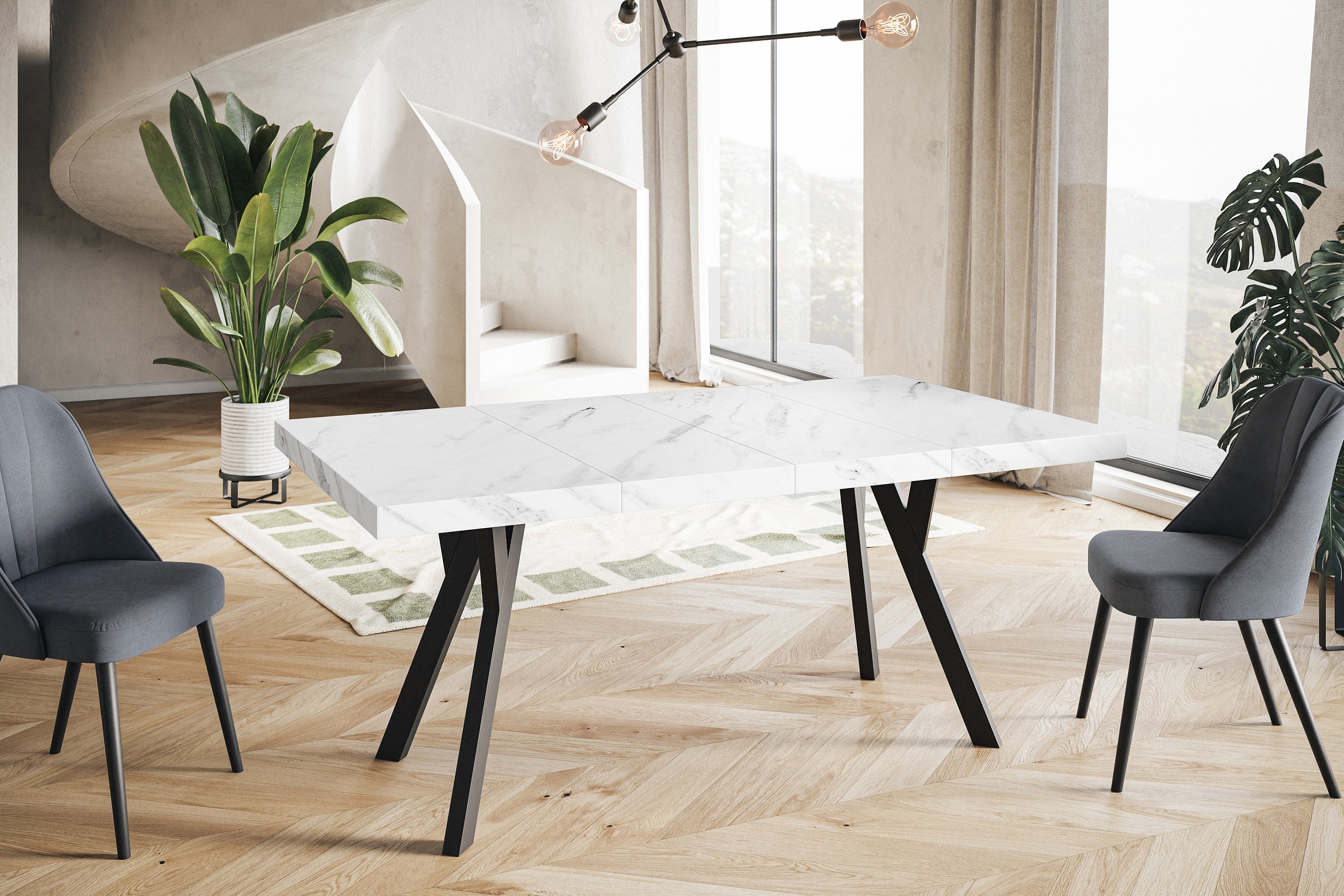 Table de salle à manger carrée RICO, table à rallonges, dimensions: 120-220X120X77 cm, couleur: MARMUR, avec pieds en bois de couleur noire