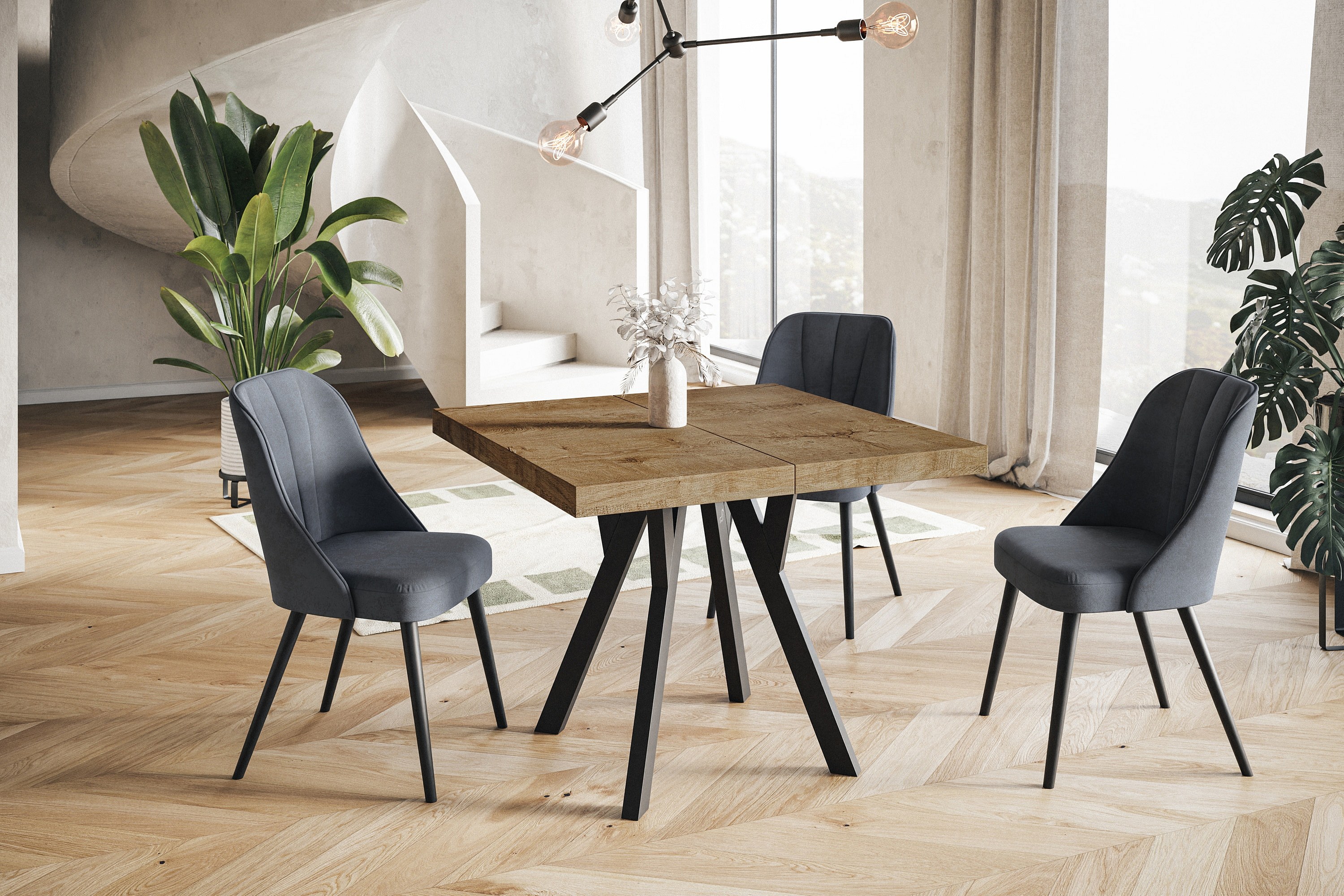 Table de salle à manger carrée RICO, table à rallonges, dimensions: 90-190X90X77 cm, couleur: LEFAKS, avec pieds en bois de couleur noire