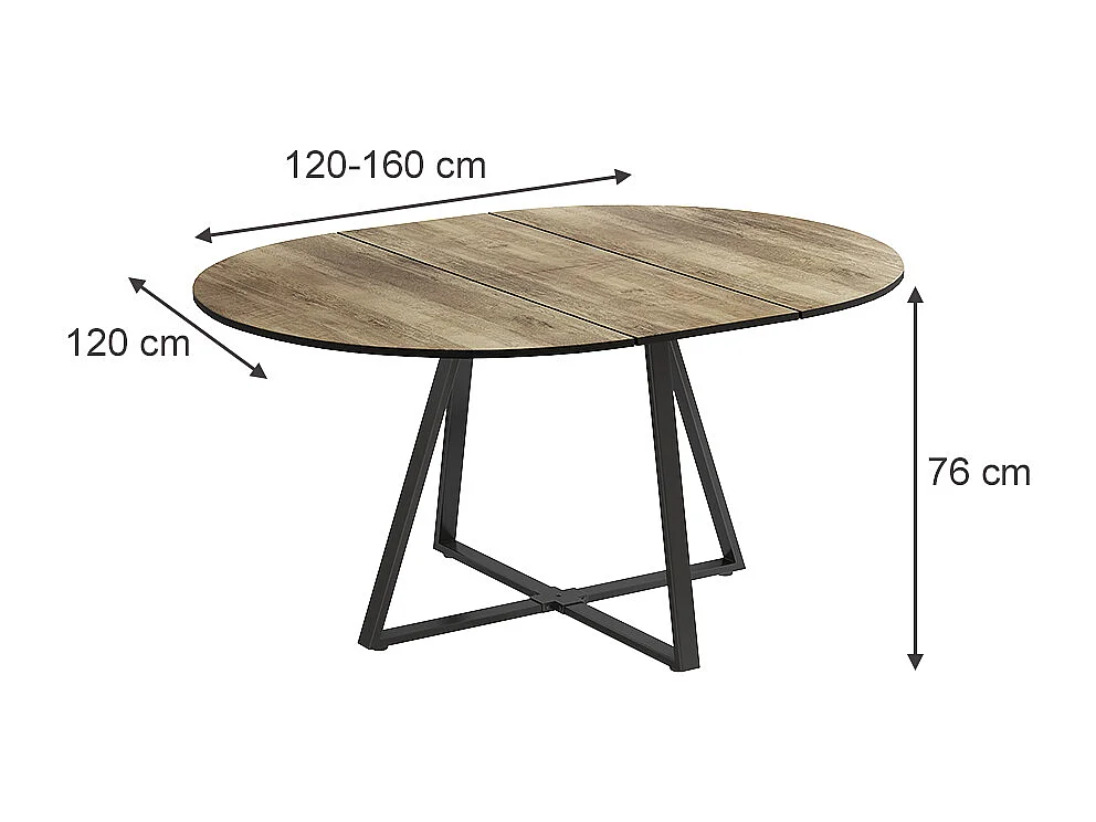 Table de salle à manger chêne rustique/noir 120x120x75.8 loyd