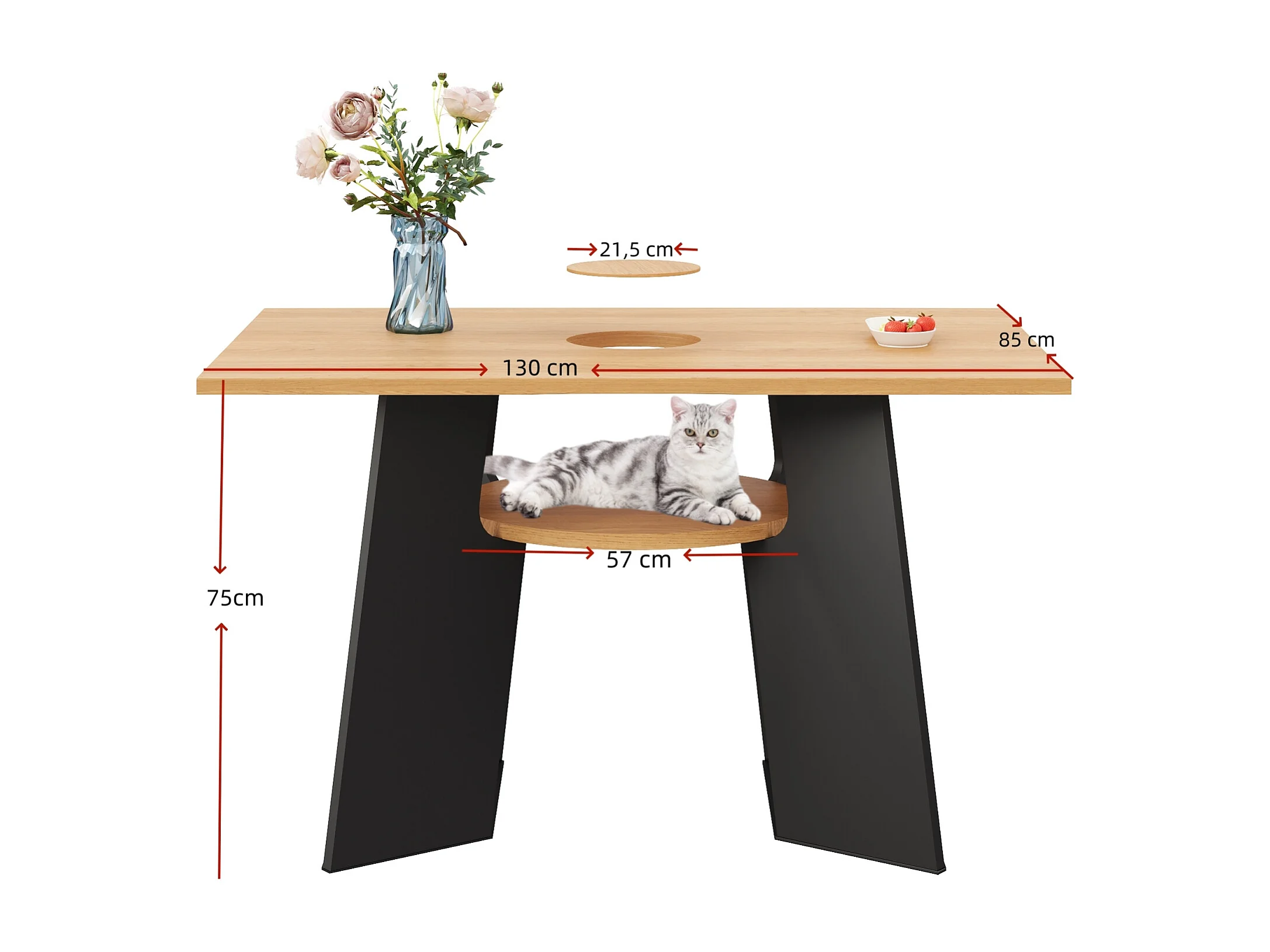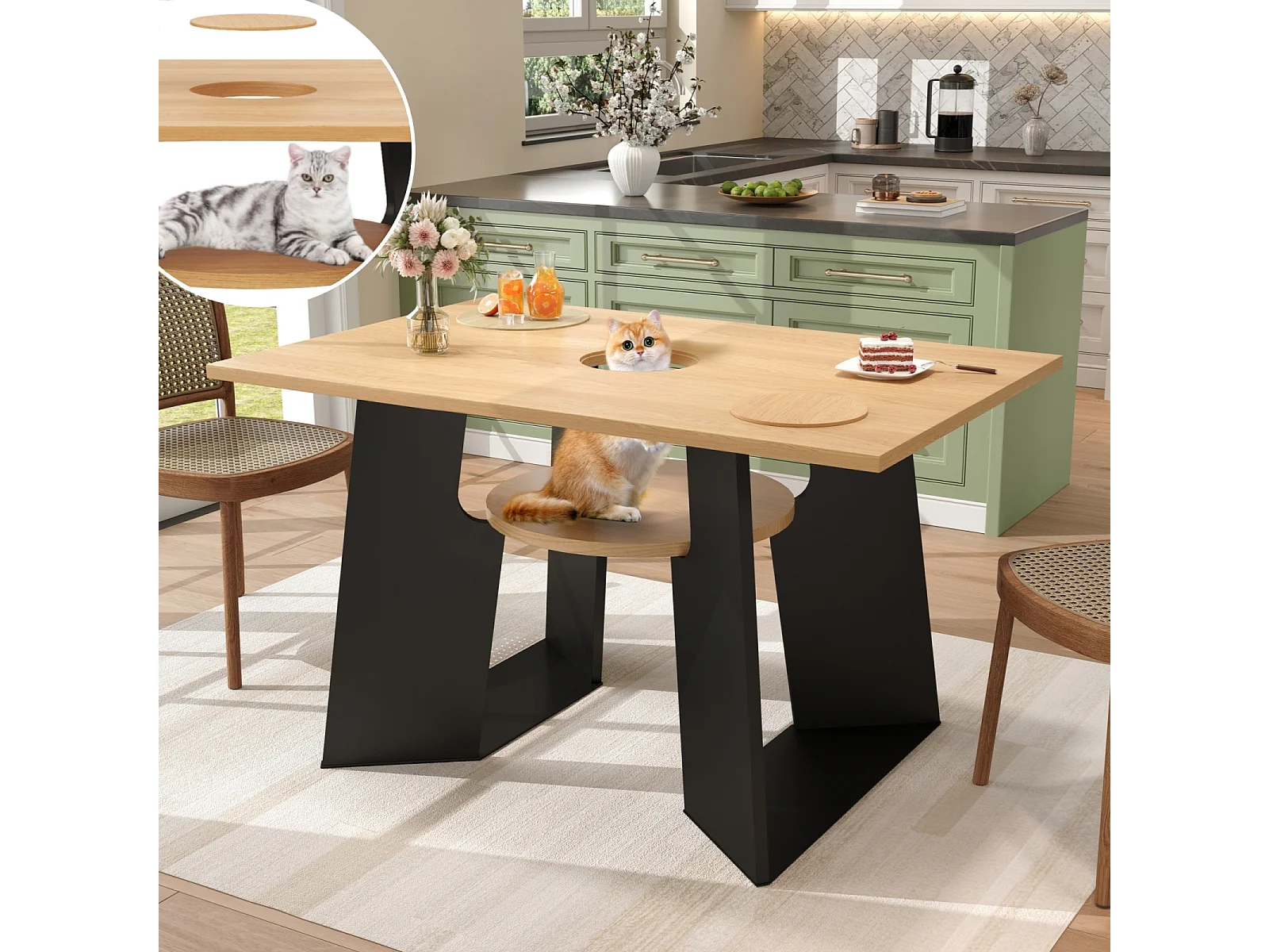 Table de salle à manger/cuisine - avec espace pour animaux et étagères - 6 places (130×85×75 cm)