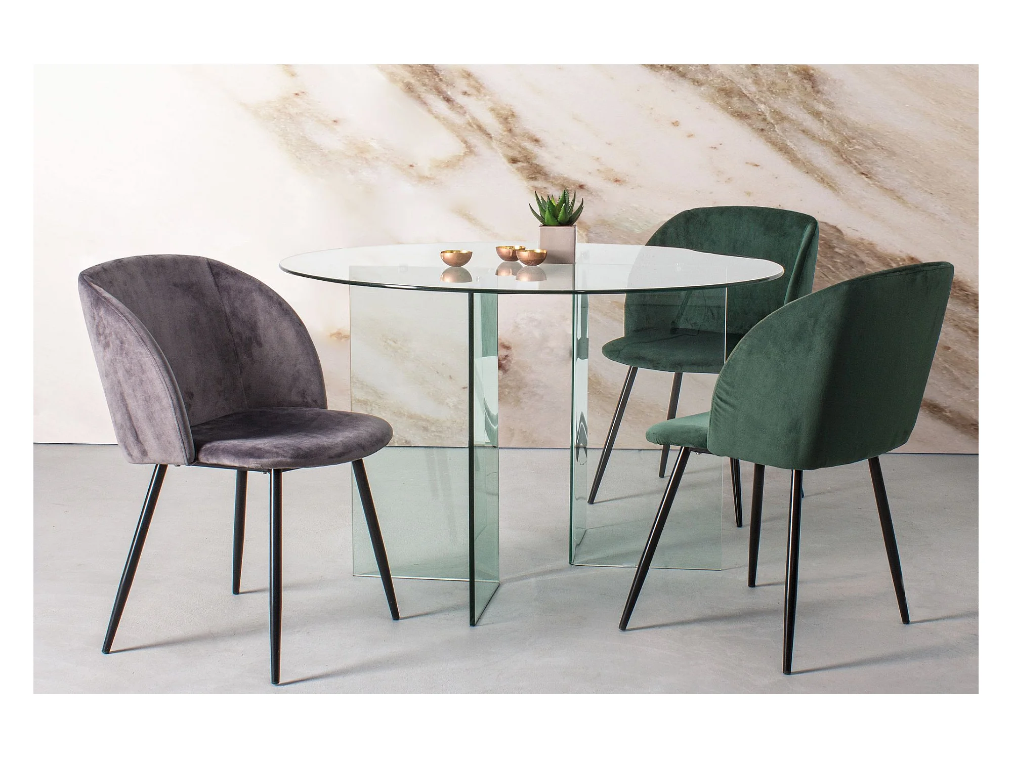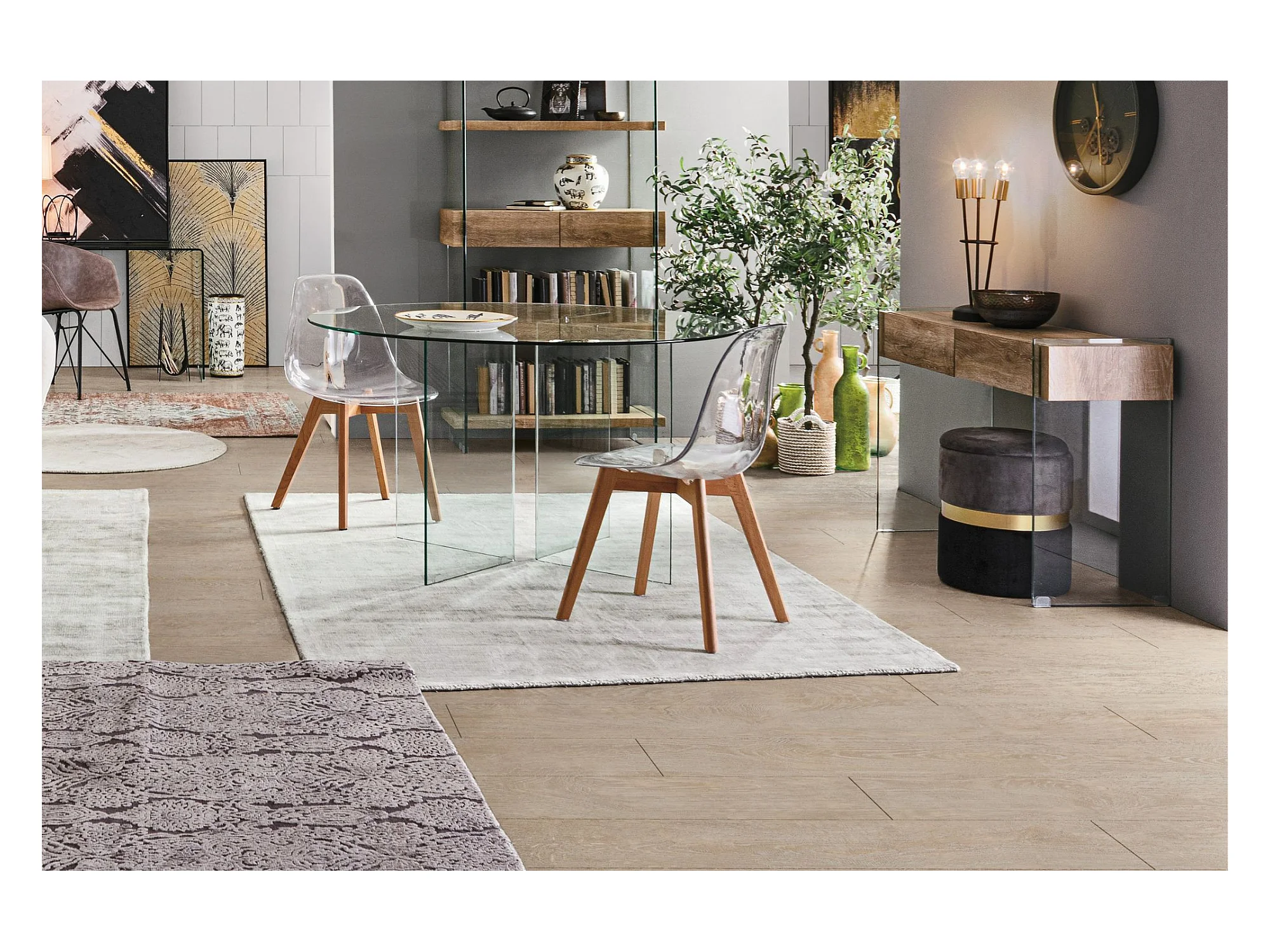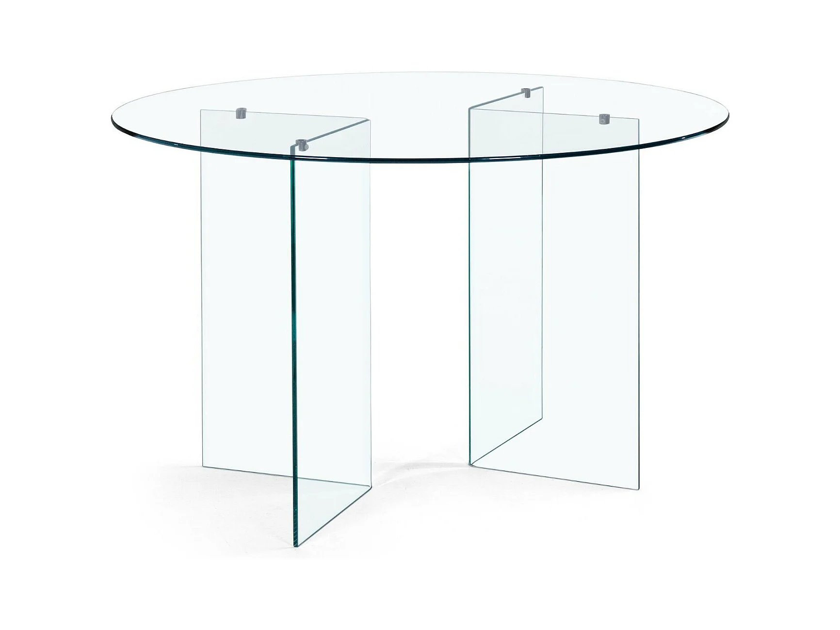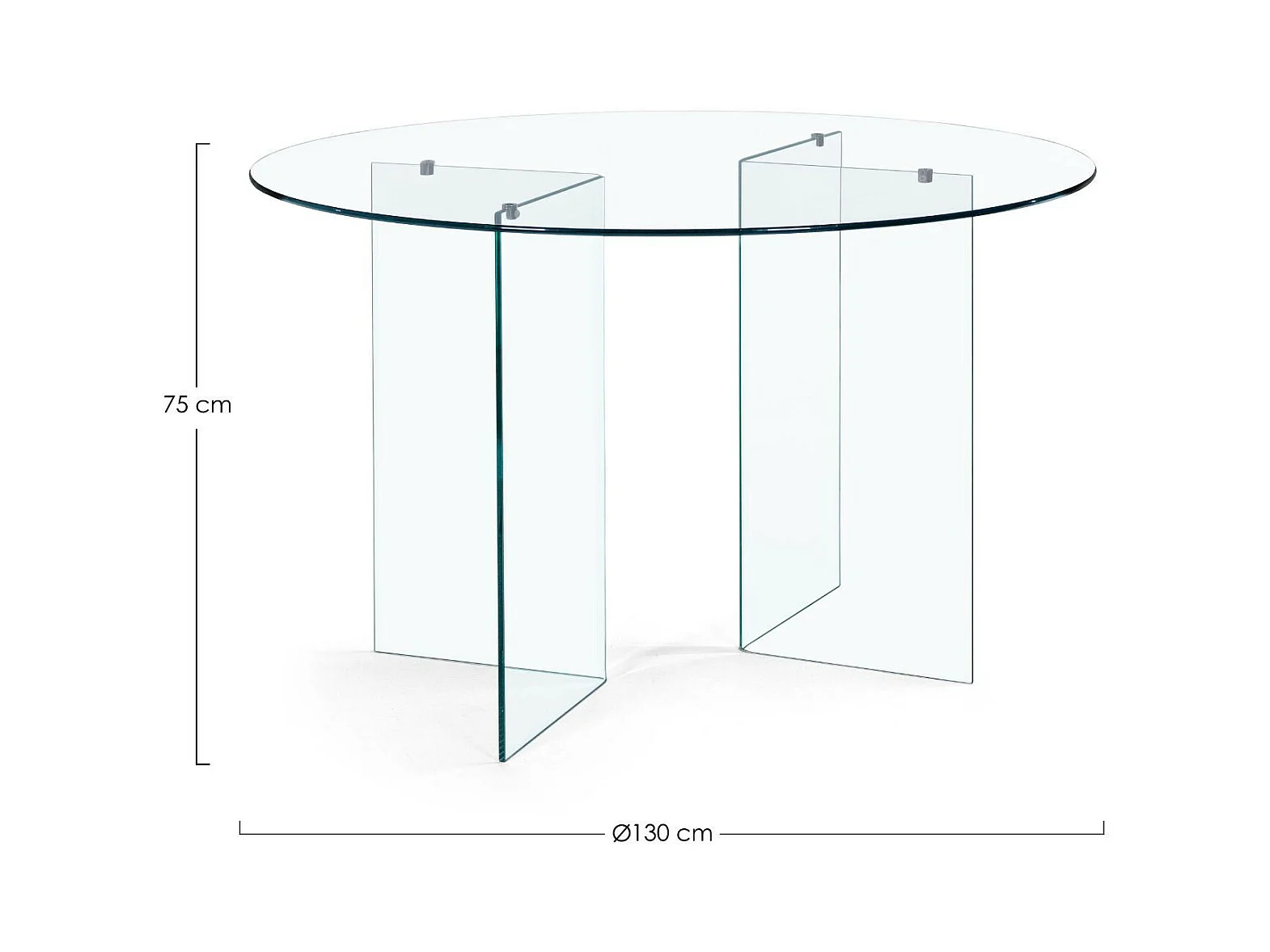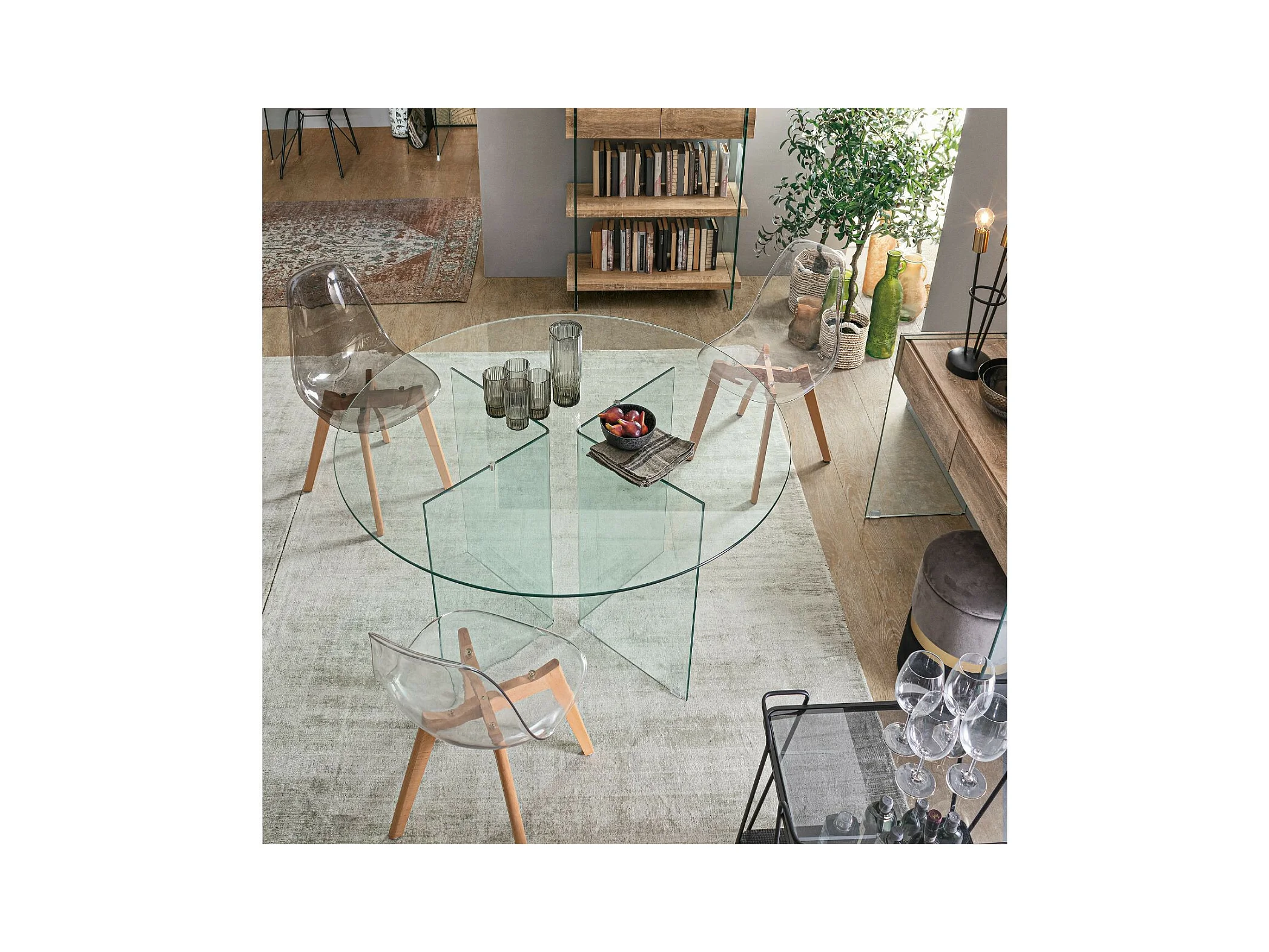 Table de salle à manger design ronde en verre transparent 6 places D130 - IDORA