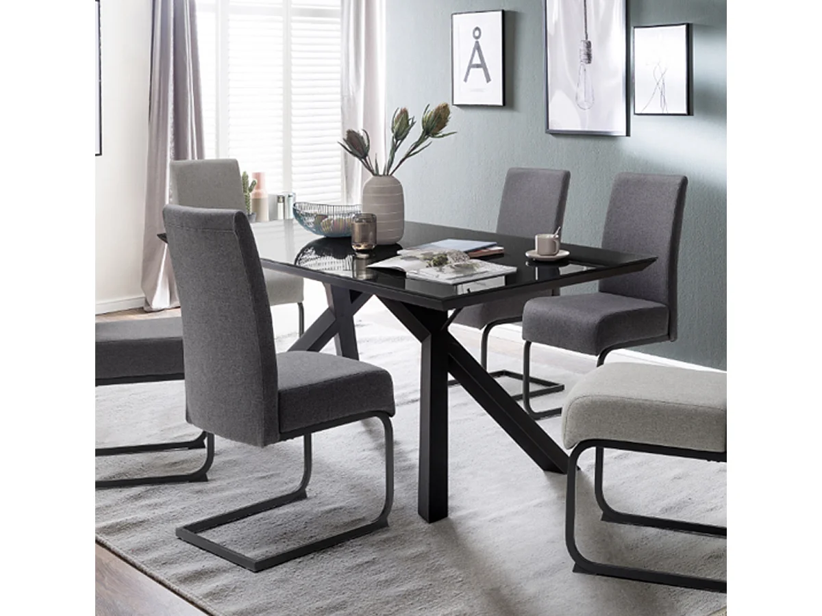 Table de salle à manger en verre et acier coloris noir mat - L.180 x H.75 x P.95 cm