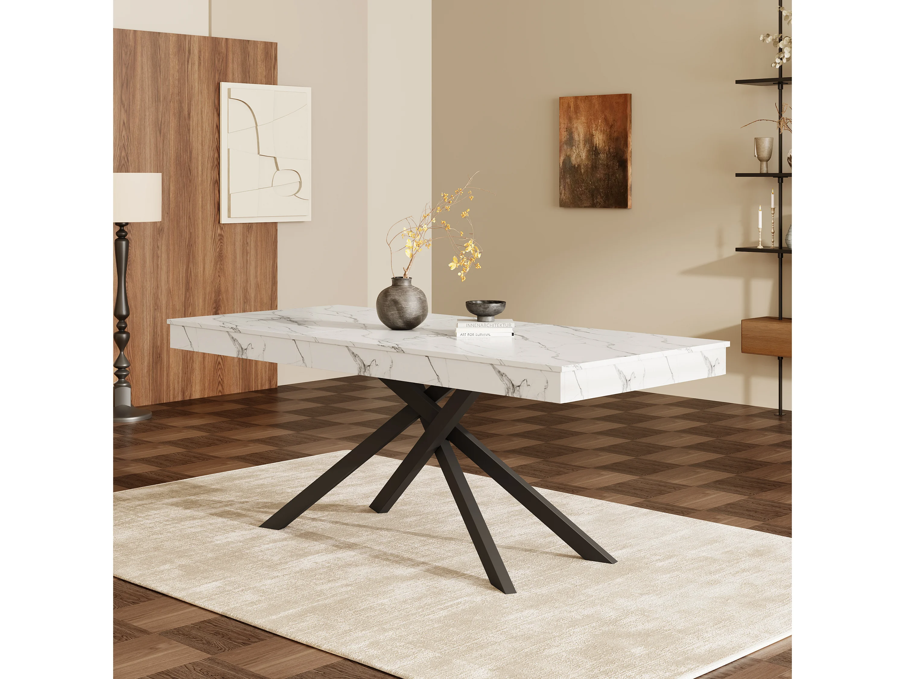 Table de salle à manger extensible - 140/180 x 80 x 76 cm - pour 6 à 8 personnes - pieds en métal - MDF - blanc