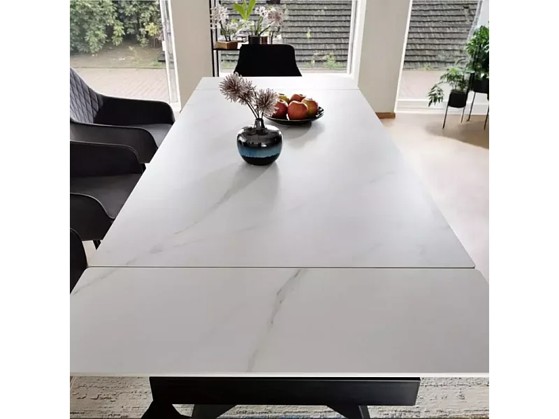 Table de salle à manger extensible 160 / 220cm en céramique blanc mat BARILA