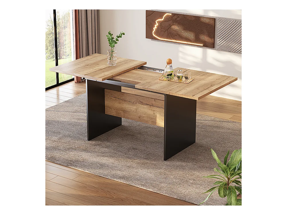 Table de salle à manger extensible Table de salle à manger extensible convient pour 4-6 personnes veinure du bois Noyer foncé