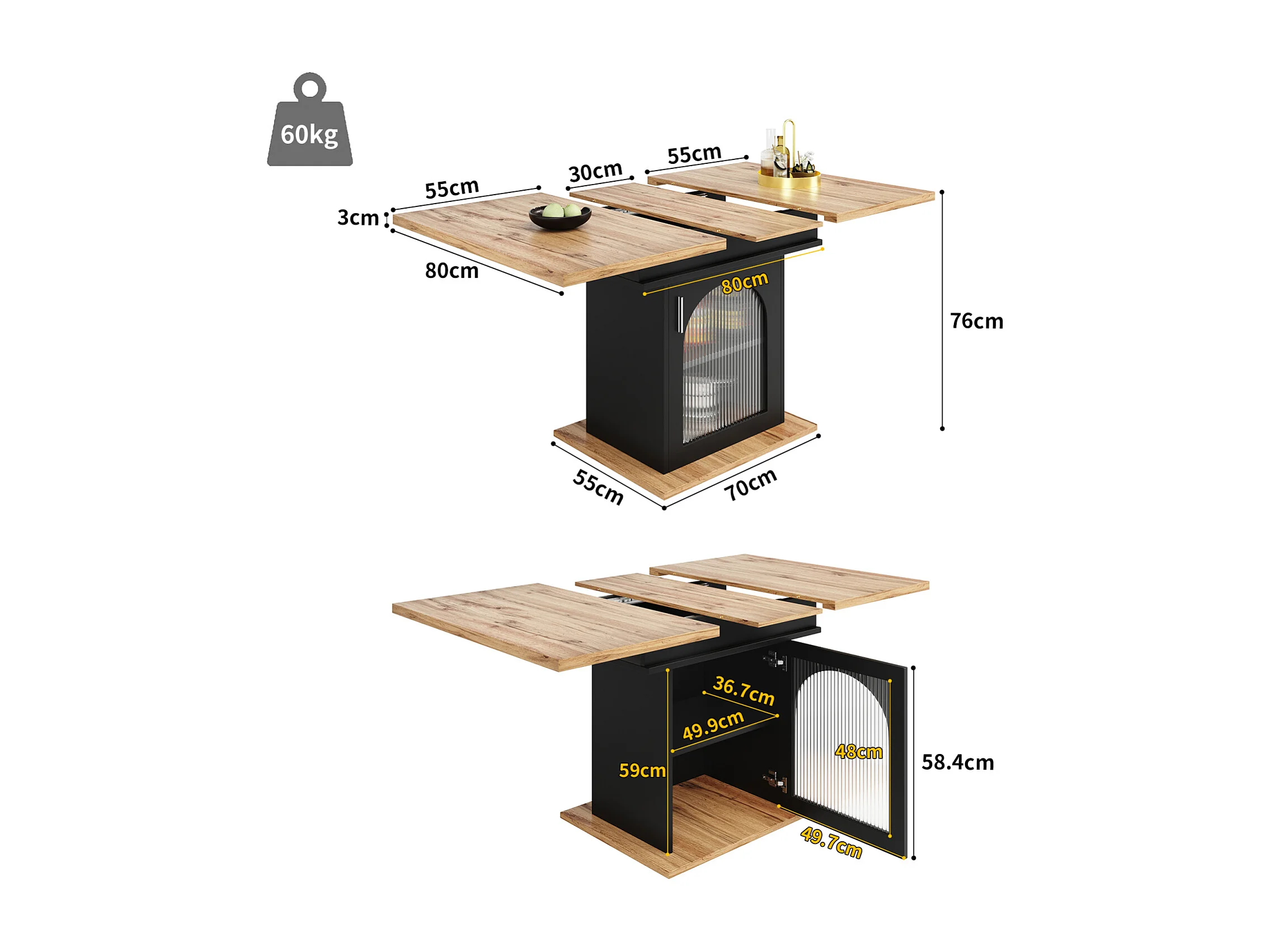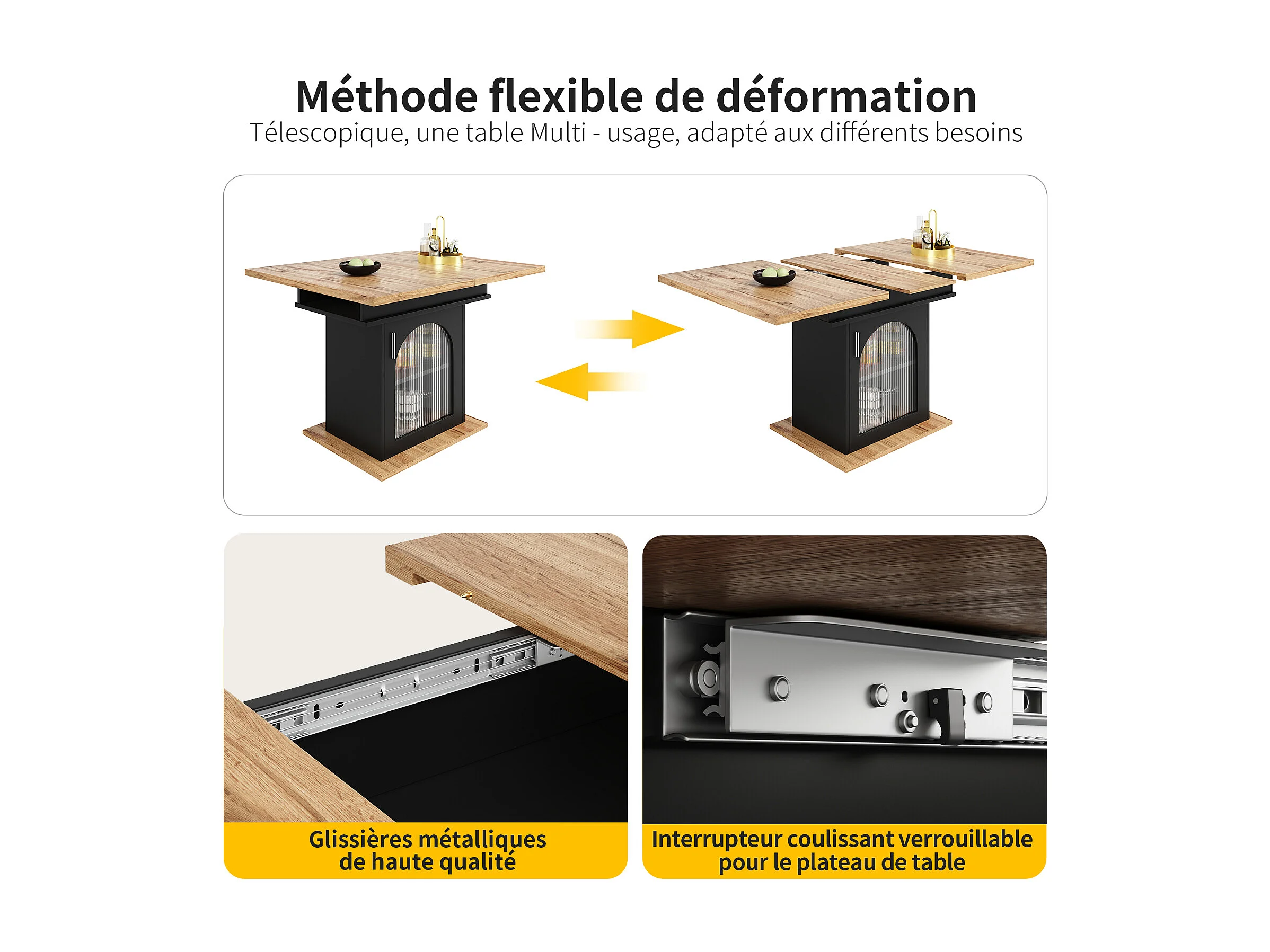 Table de salle à manger extensible - trois étagères de rangement intégrées réglables en hauteur - 110/140×80×76cm - noir