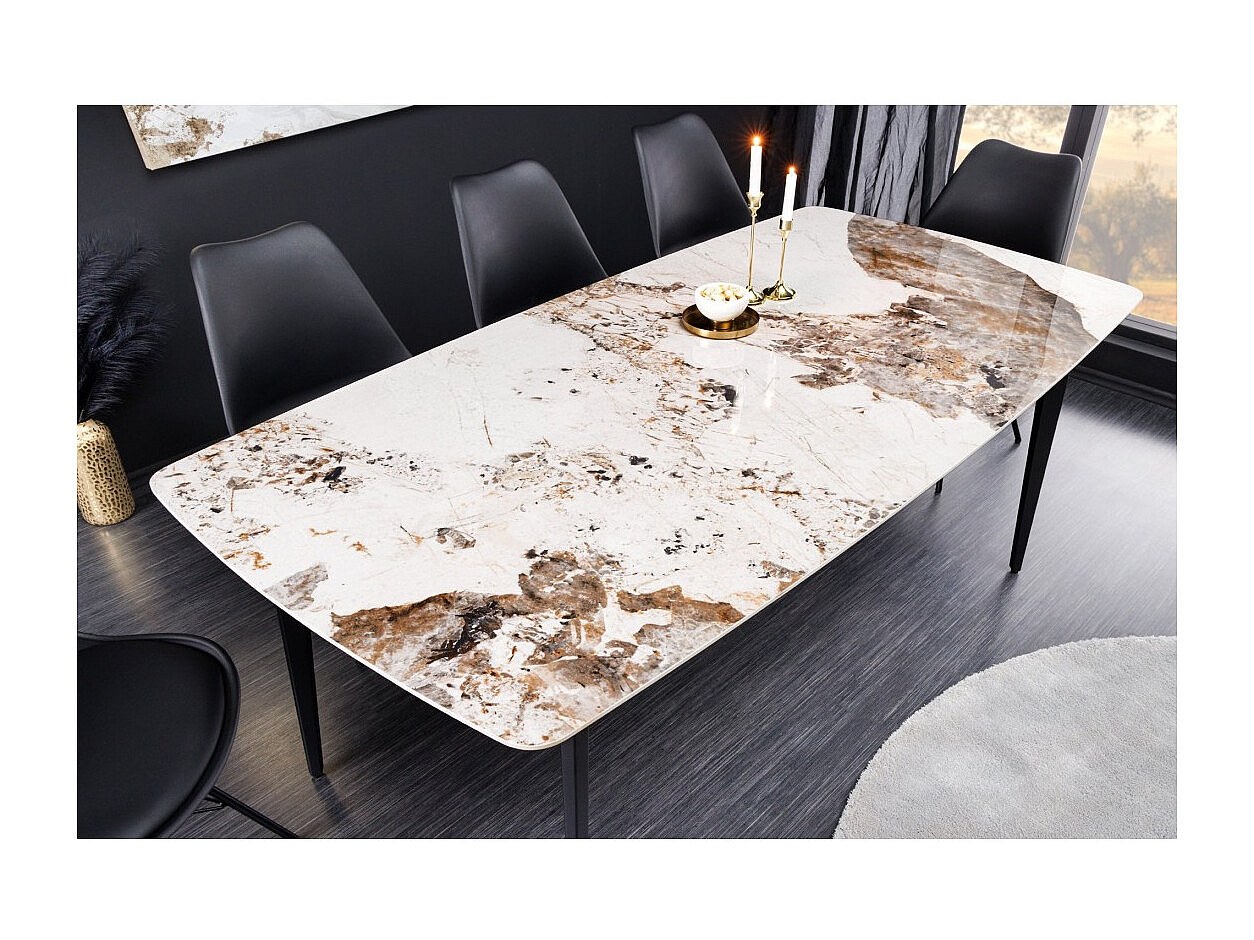 Table de salle à manger HEXA – Céramique aspect pierre et métal noir – 180 cm – Style contemporain
