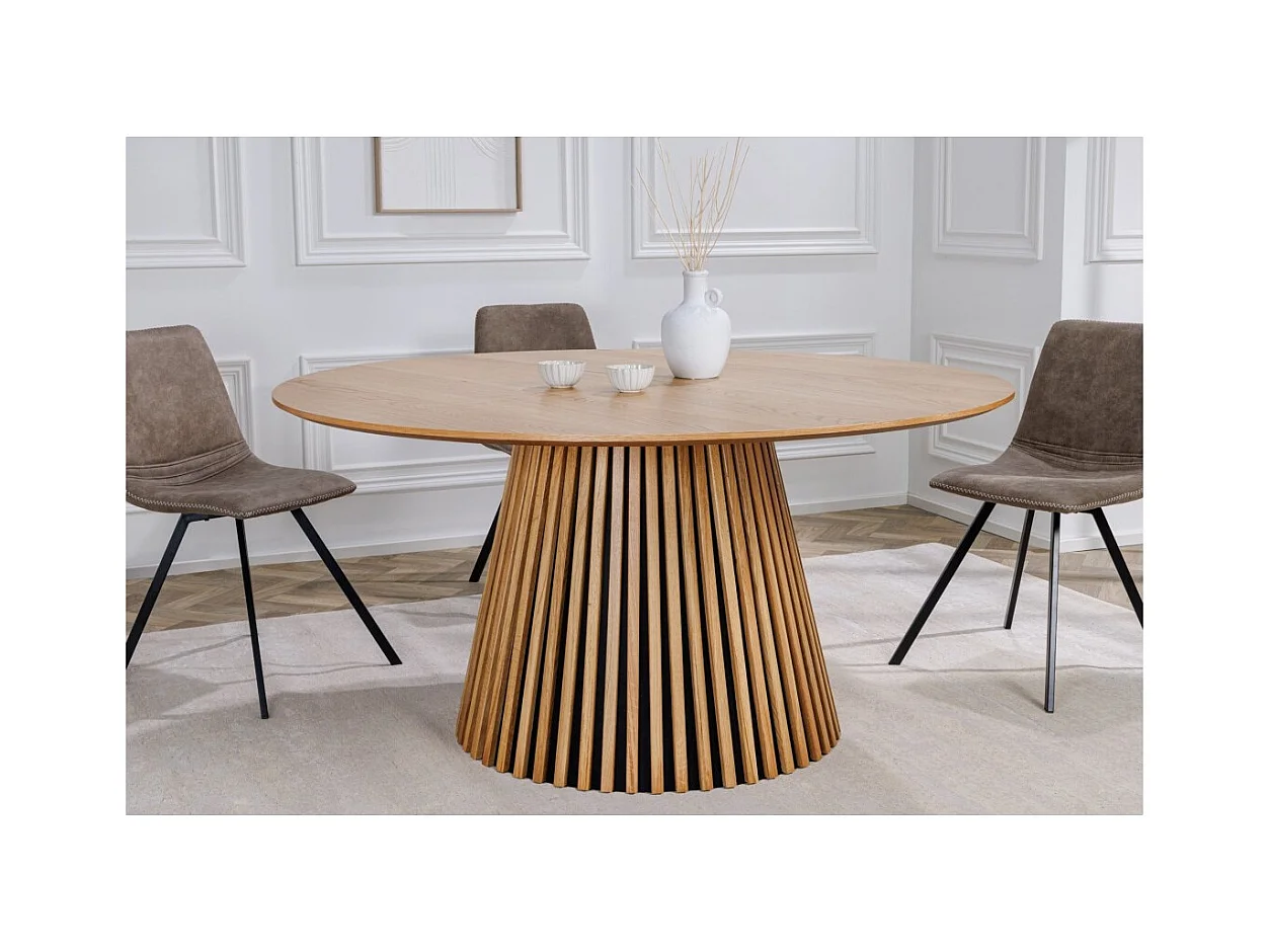 Table de salle à manger KANOVA 120 cm – Plateau rond en chêne clair et pied central design – Style contemporain