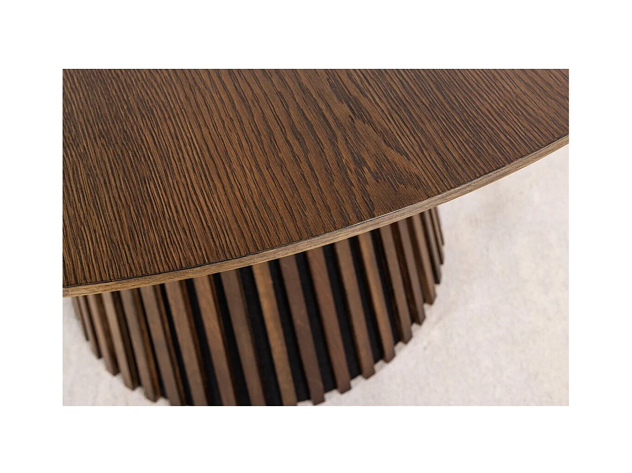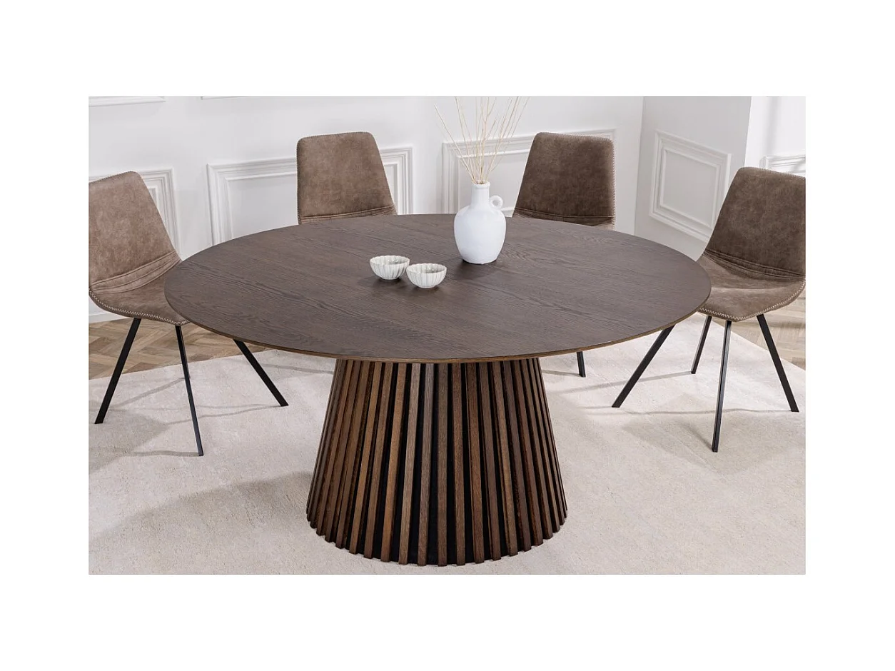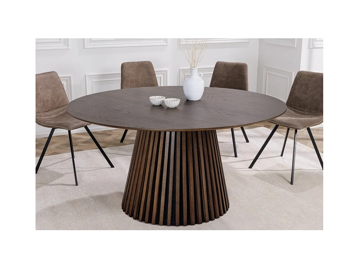 Table de salle à manger KANOVA 120 cm – Plateau rond en chêne foncé et pied central design – Style contemporain