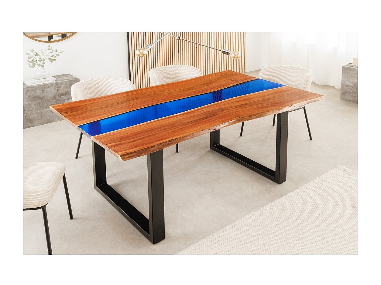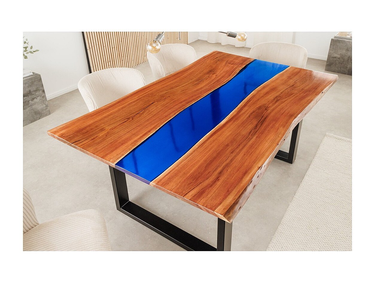 Table de salle à manger LAGUNA – Rectangulaire 160 cm – Bois massif d'acacia et résine époxy bleue