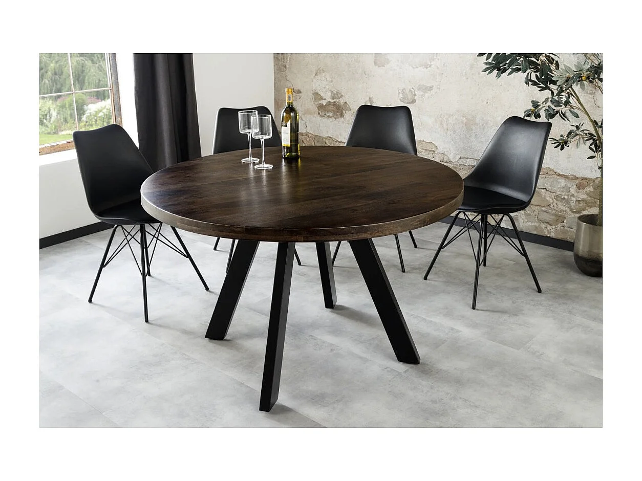 Table de salle à manger LODEN ronde 120 cm – Table industrielle en bois massif de manguier et métal
