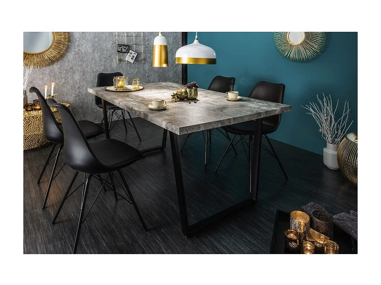 Table de salle à manger MERAX 160 cm – Plateau effet béton gris et structure en métal noir