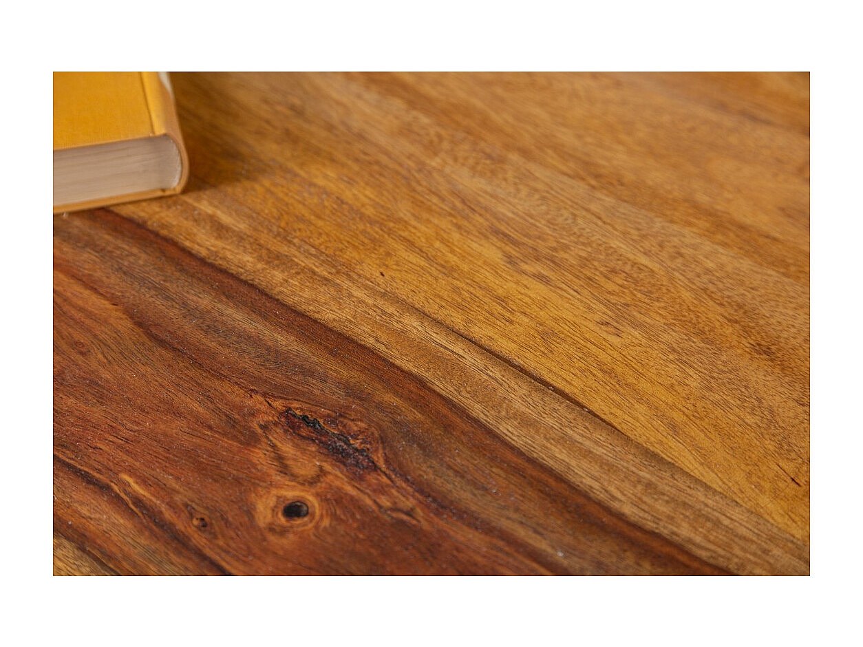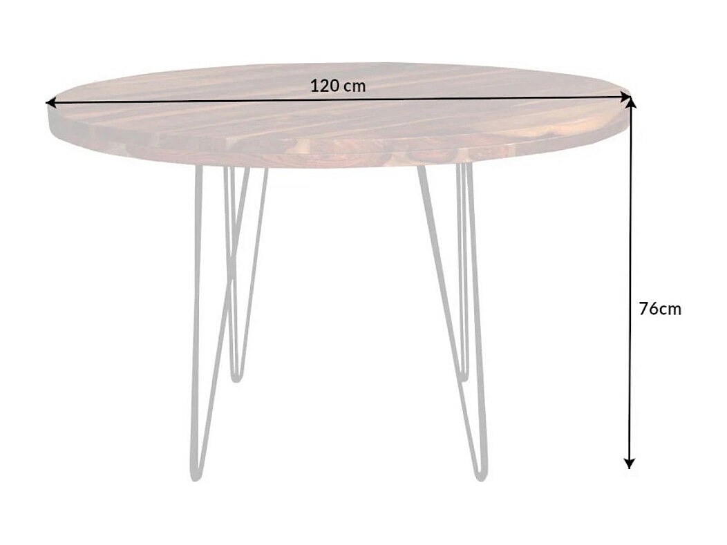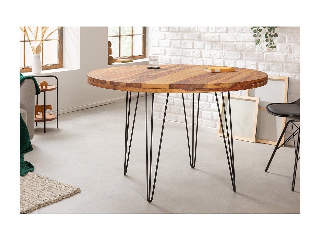 Table de salle à manger ORBO 120 cm – Plateau en bois de Sheesham verni et pieds en métal noir – Style industriel