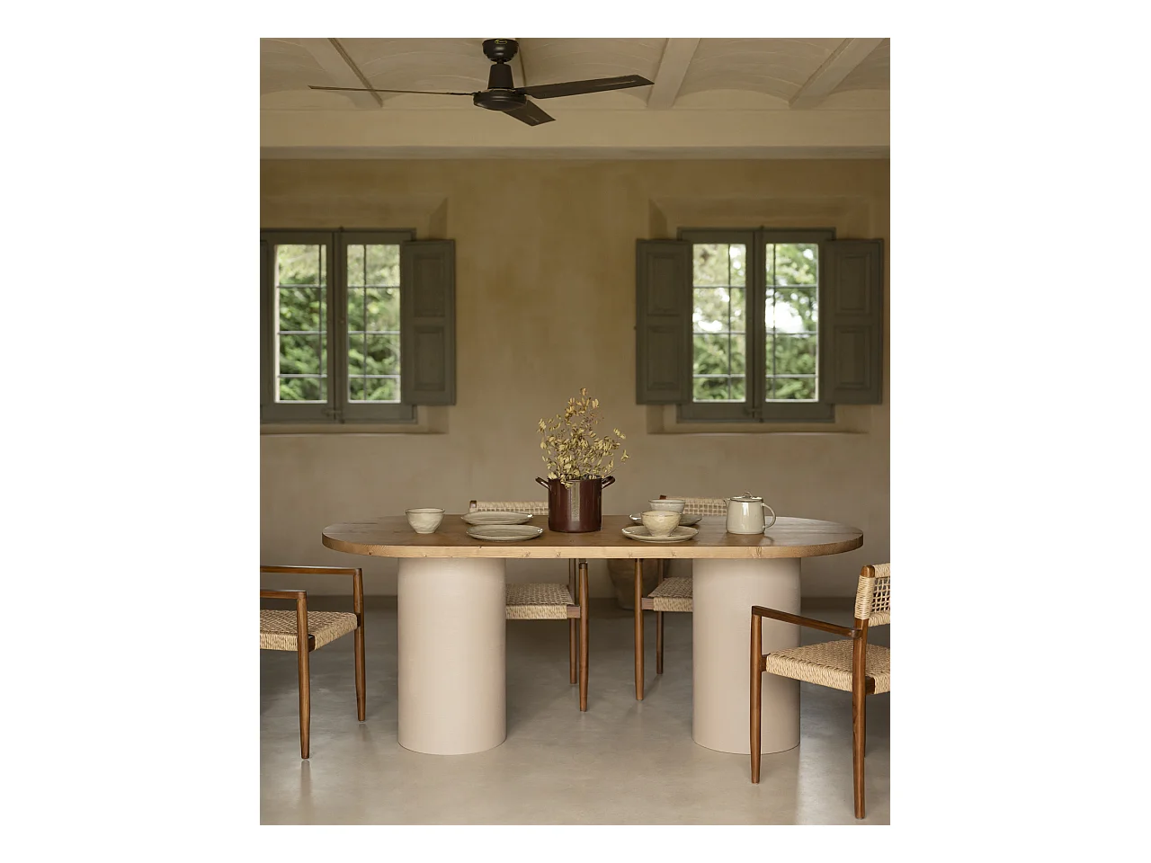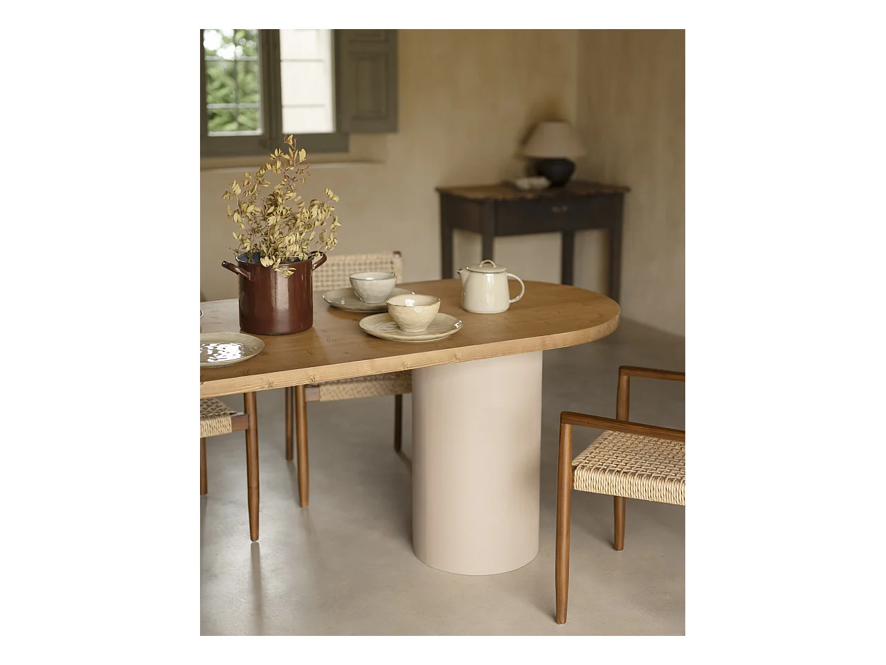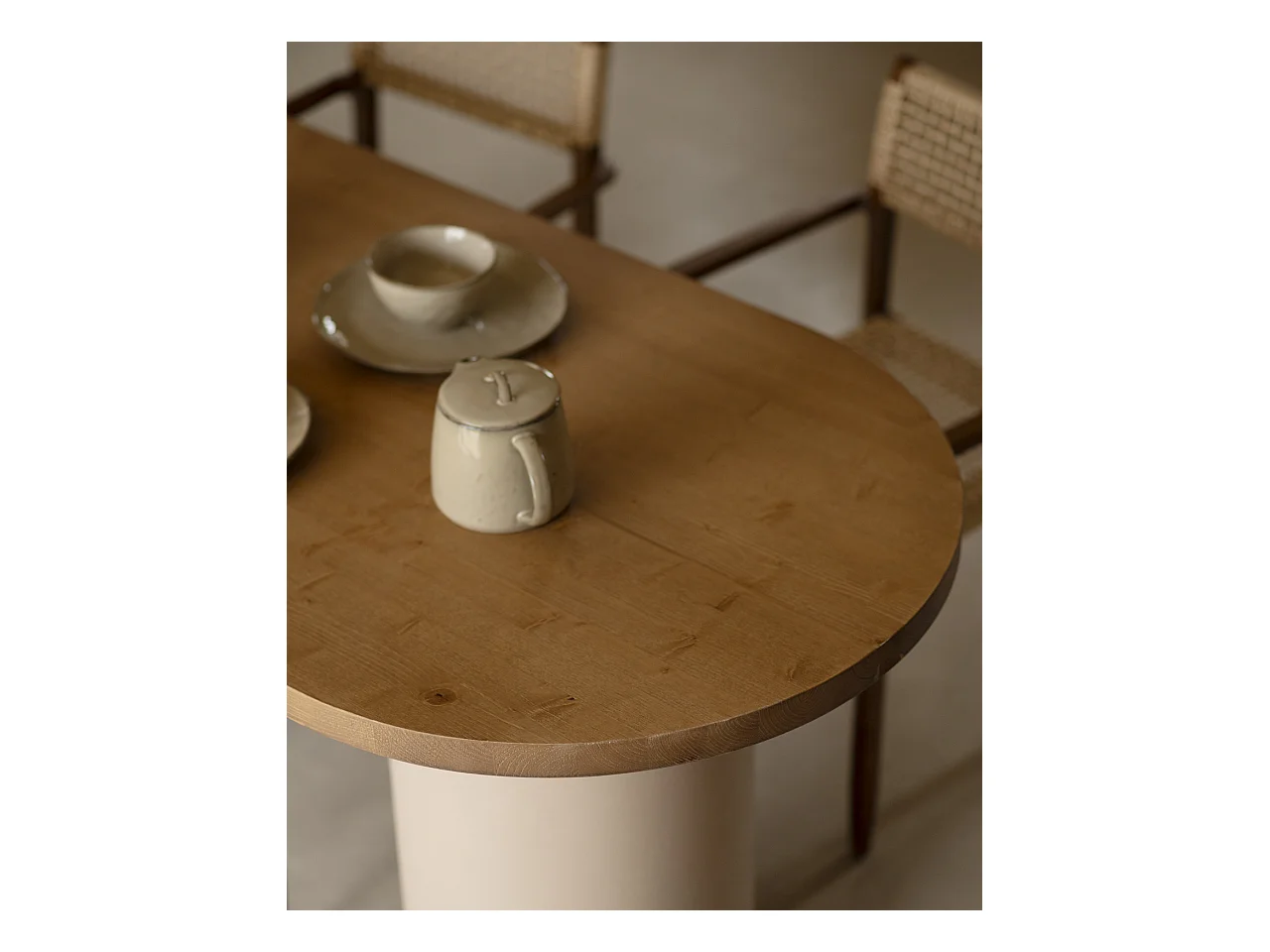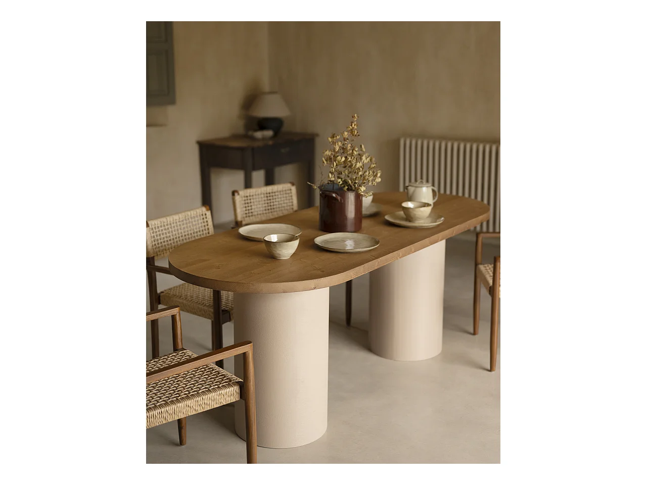 Table de salle à manger ovale en bois massif teinte chêne foncé avec pieds en microciment teinte terre 160cm - LUCÍA - DECOWOOD