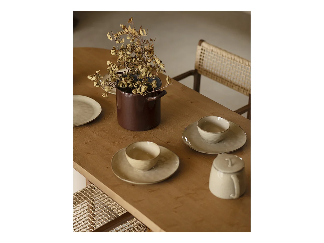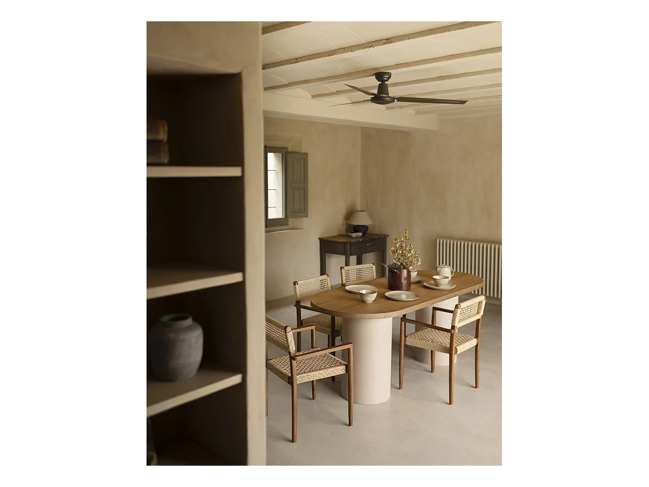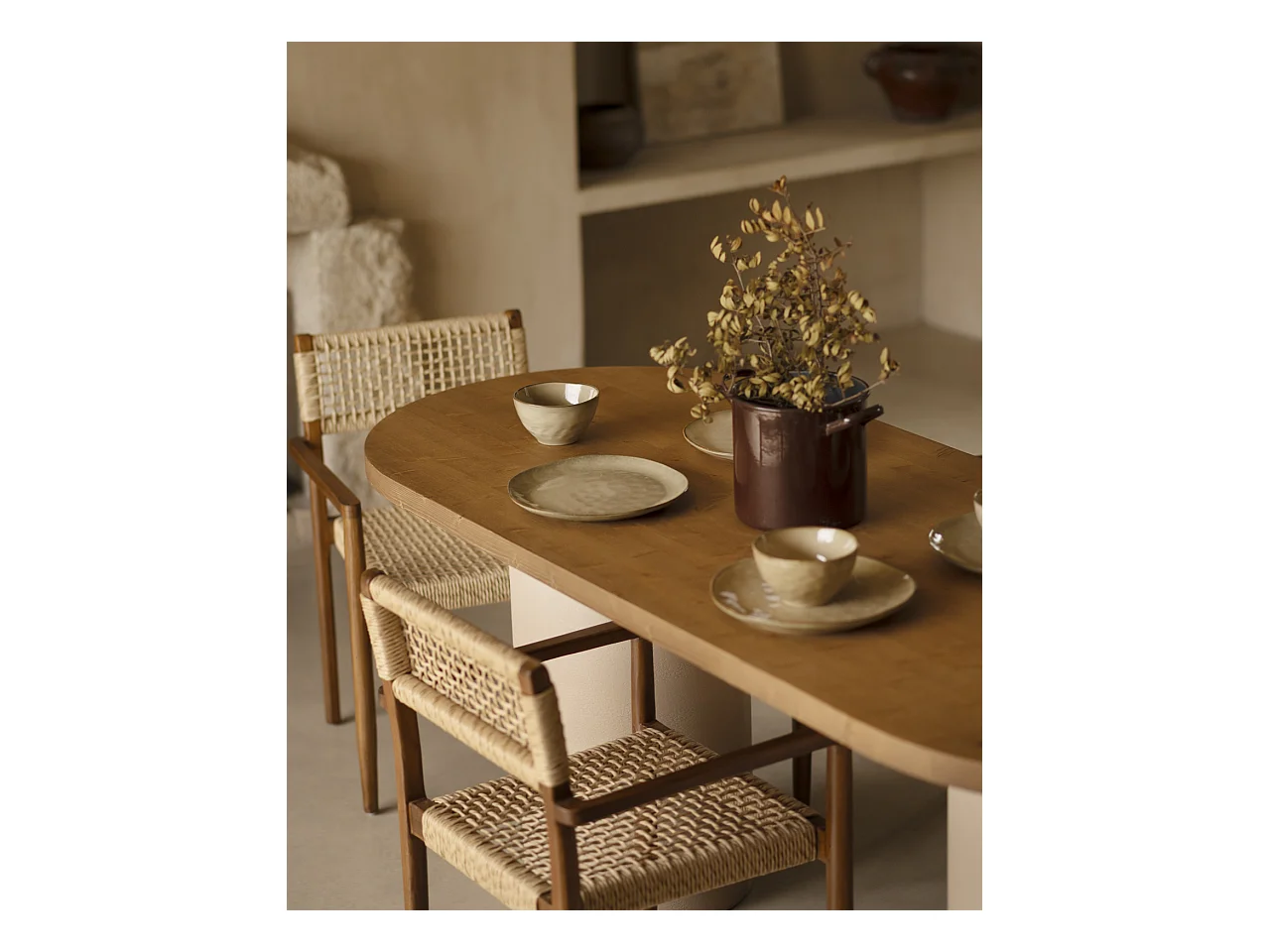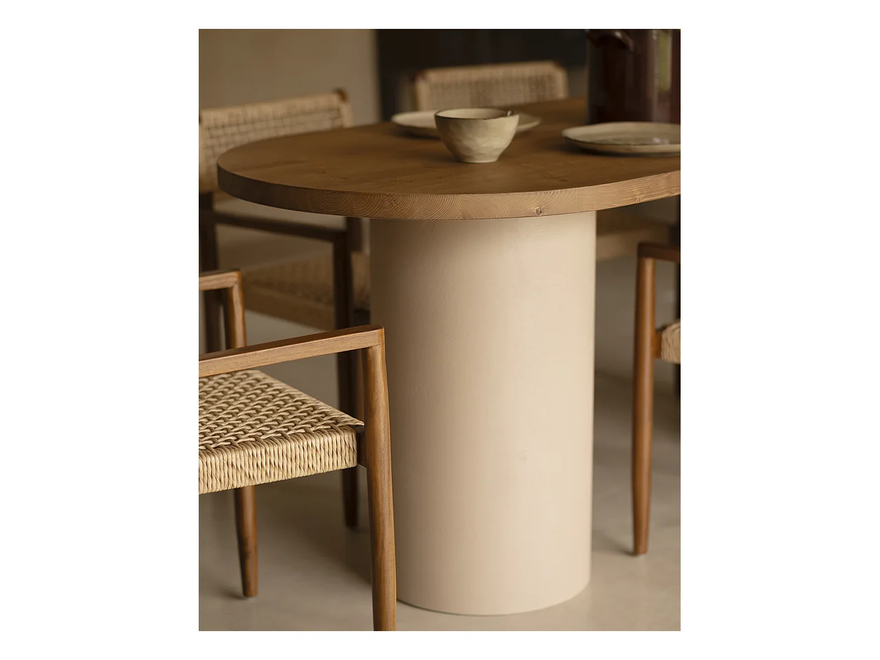 Table de salle à manger ovale en bois massif teinte chêne foncé avec pieds en microciment teinte terre 160cm - LUCÍA - DECOWOOD