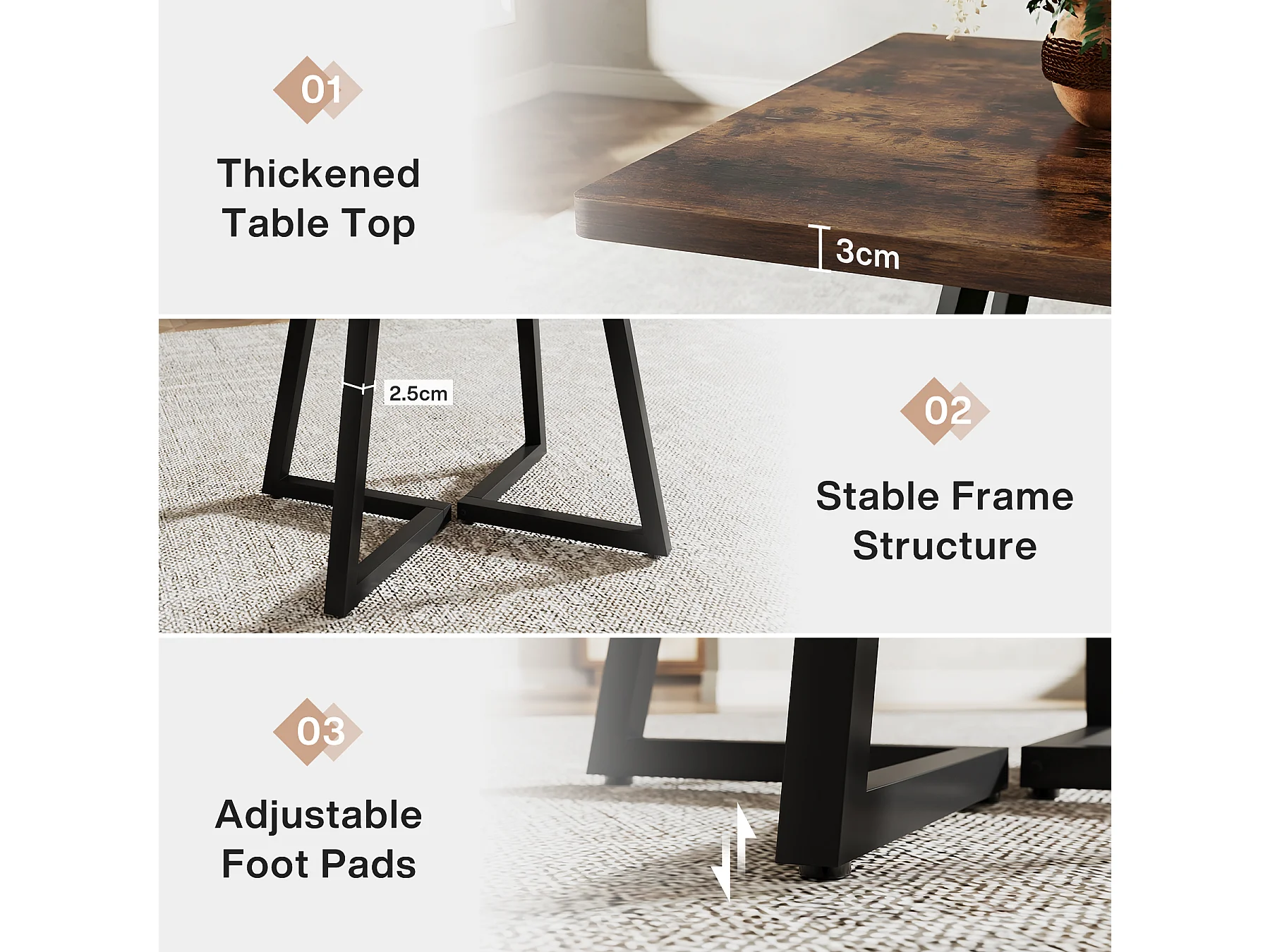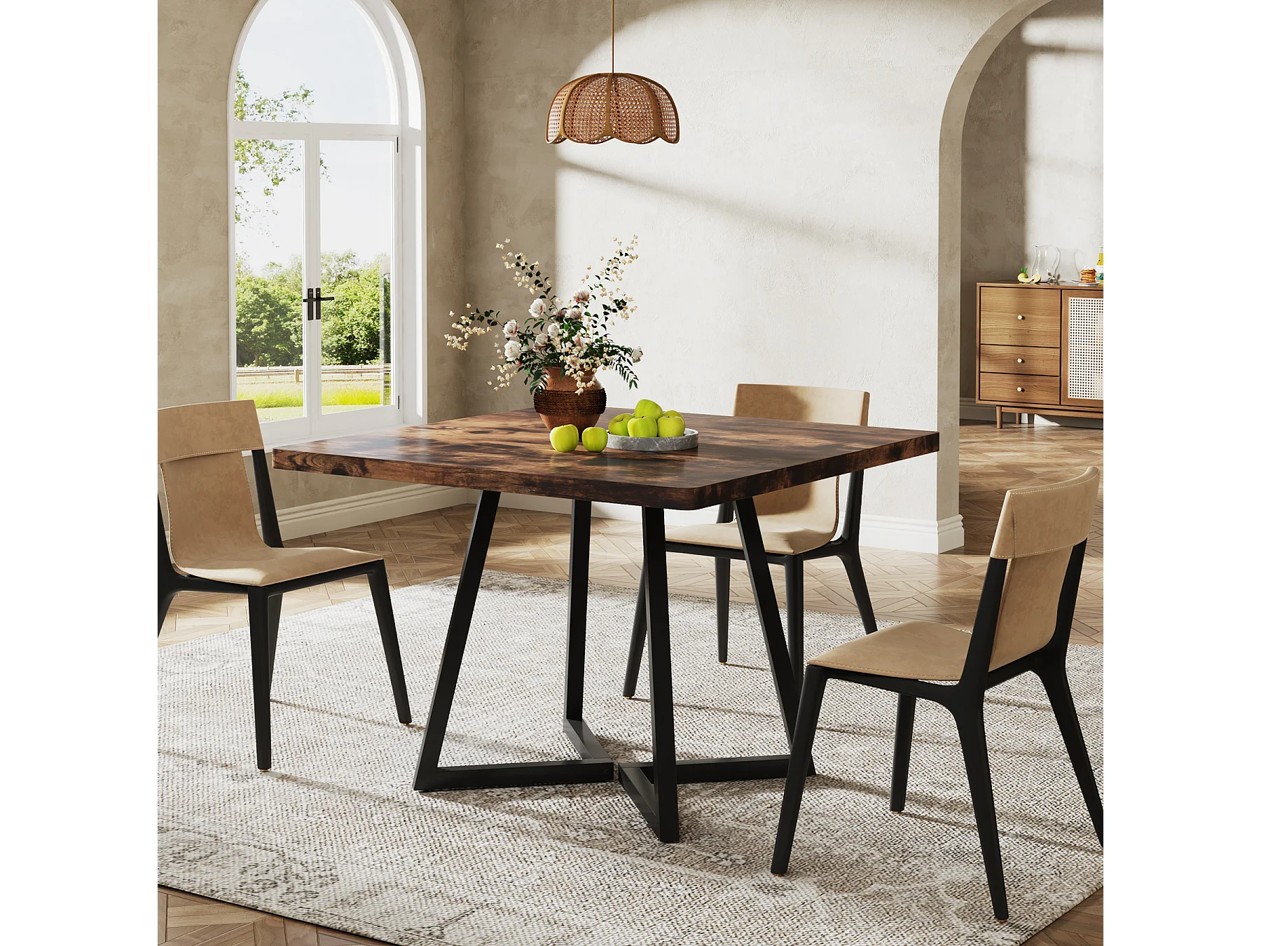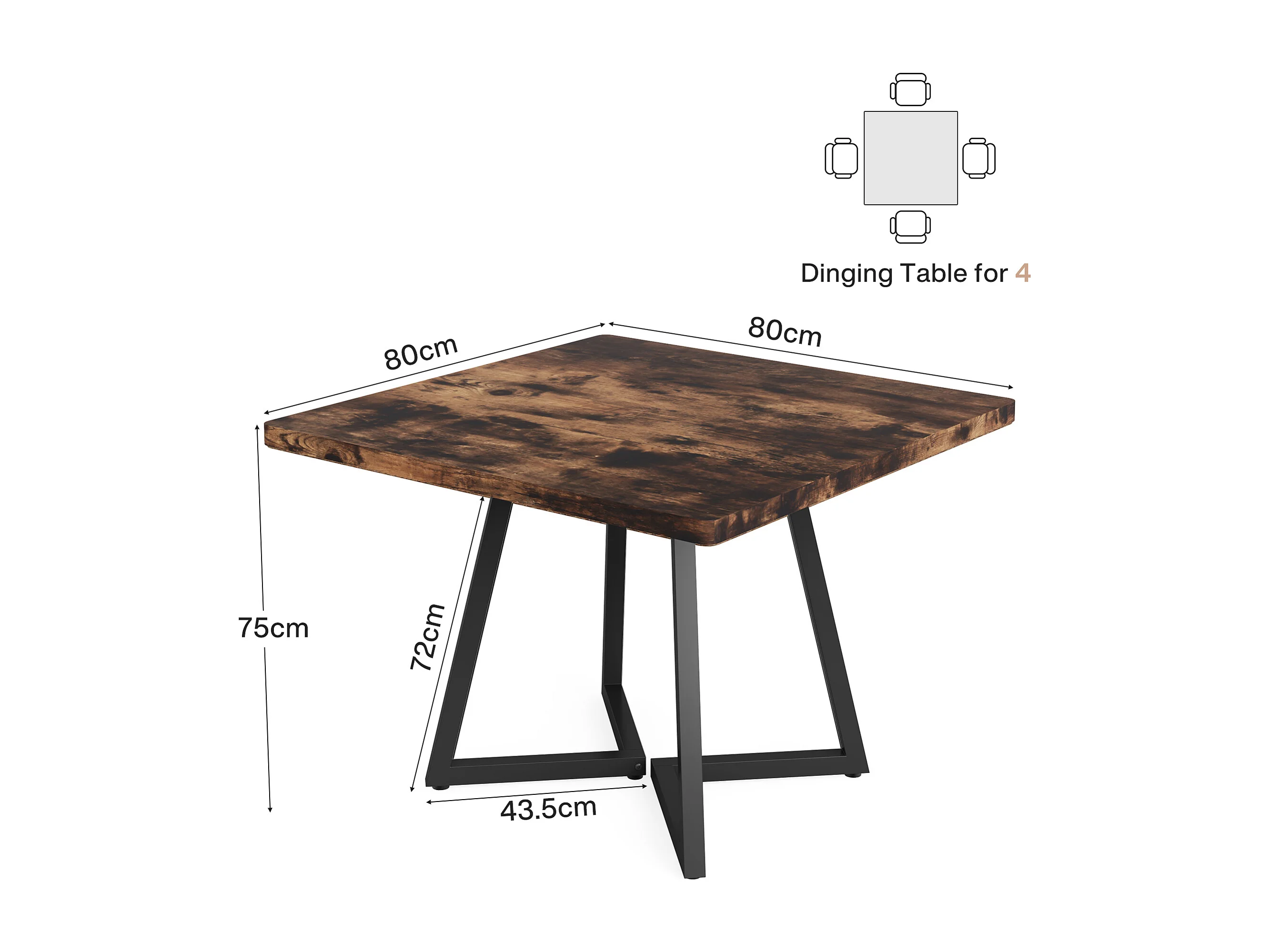 Table de salle à manger pour 4 personnes, style industriel, structure métallique robuste, 80 x 80 x 75 cm