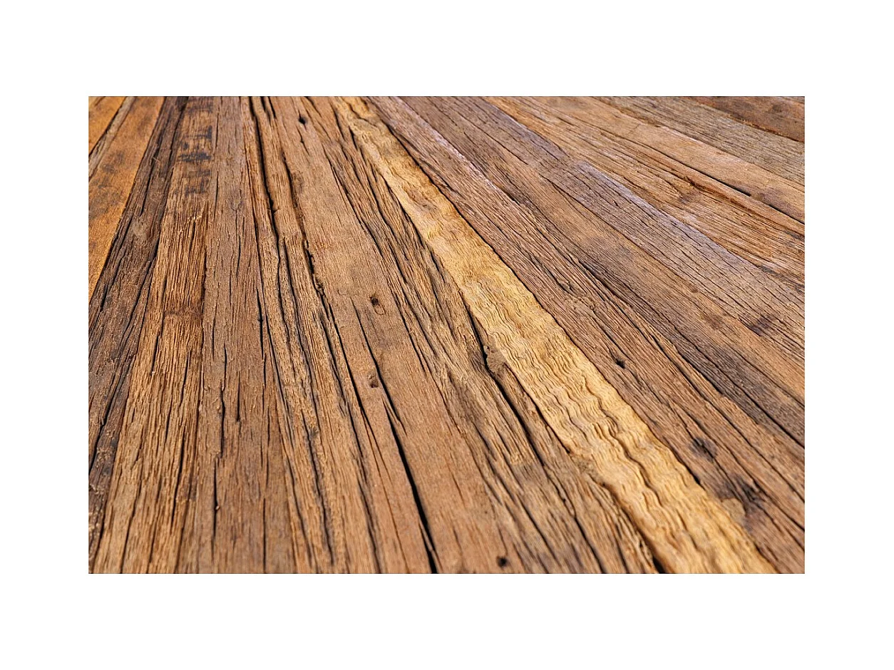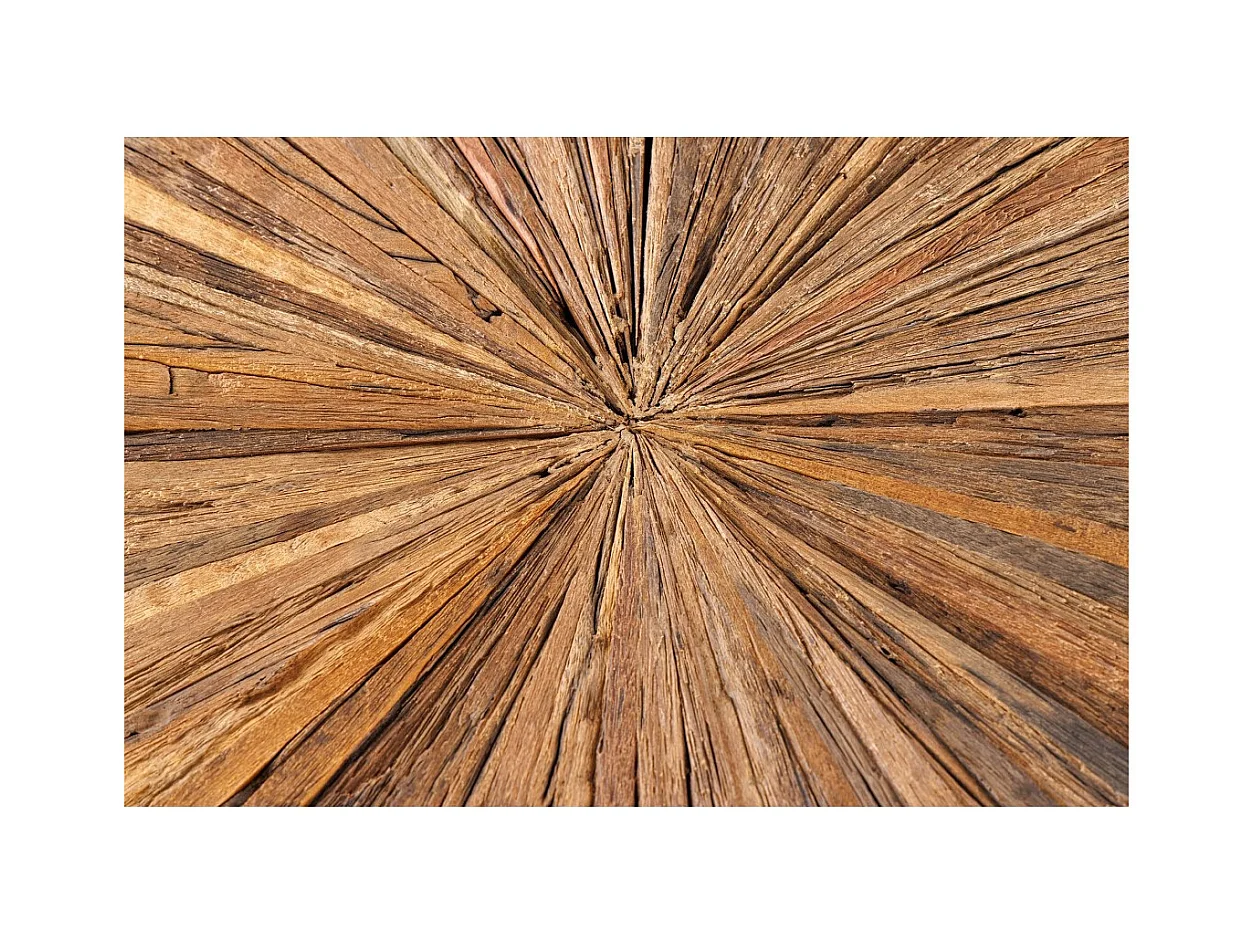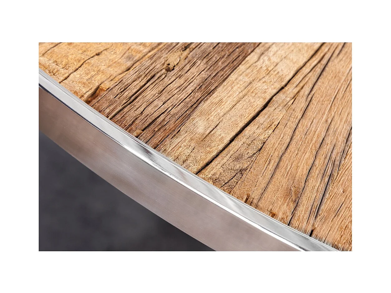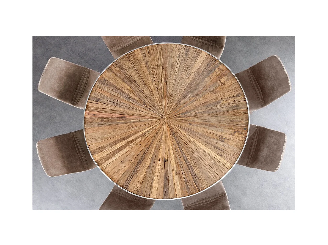 Table de salle à manger RAFTA – Bois de teck et verre trempé – Pied chromé – 120 cm – Ronde – Style contemporain