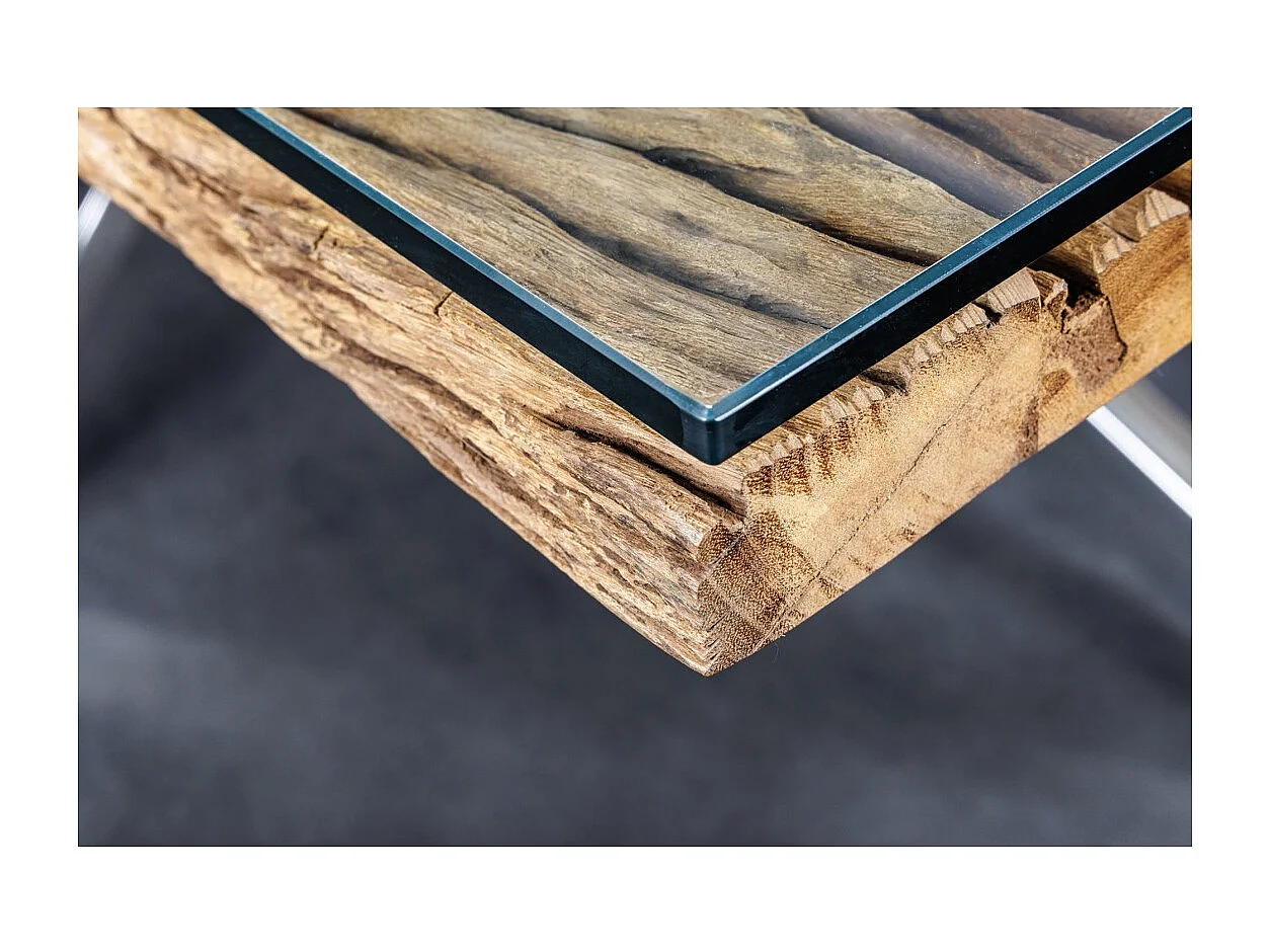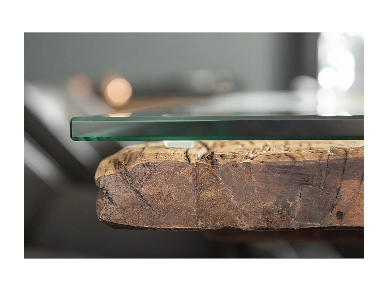 Table de salle à manger RAFTA – Bois massif et verre trempé – 220 cm – Style moderne