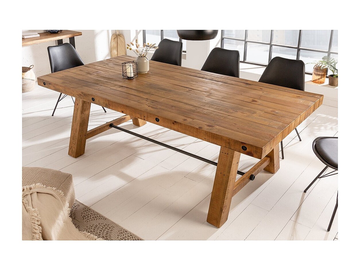 Table de salle à manger RANCHO 165 cm – Plateau en bois de pin recyclé verni – Style rustique et chaleureux