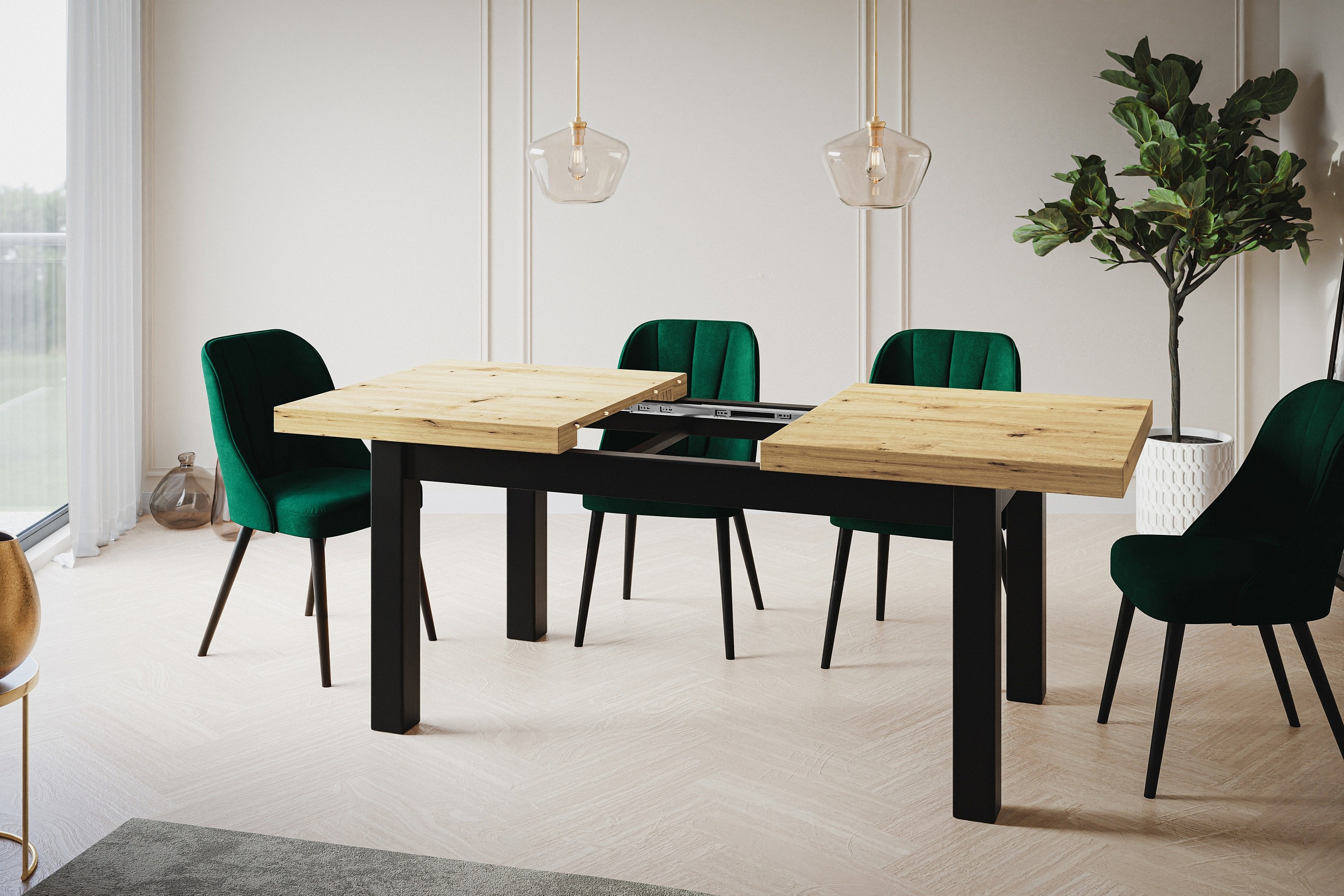 Table de salle à manger rectangulaire CLASSIC, table extensible, dimensions : 120-160X80X78 cm, couleur : ARTISAN, avec pieds en bois de couleur noire