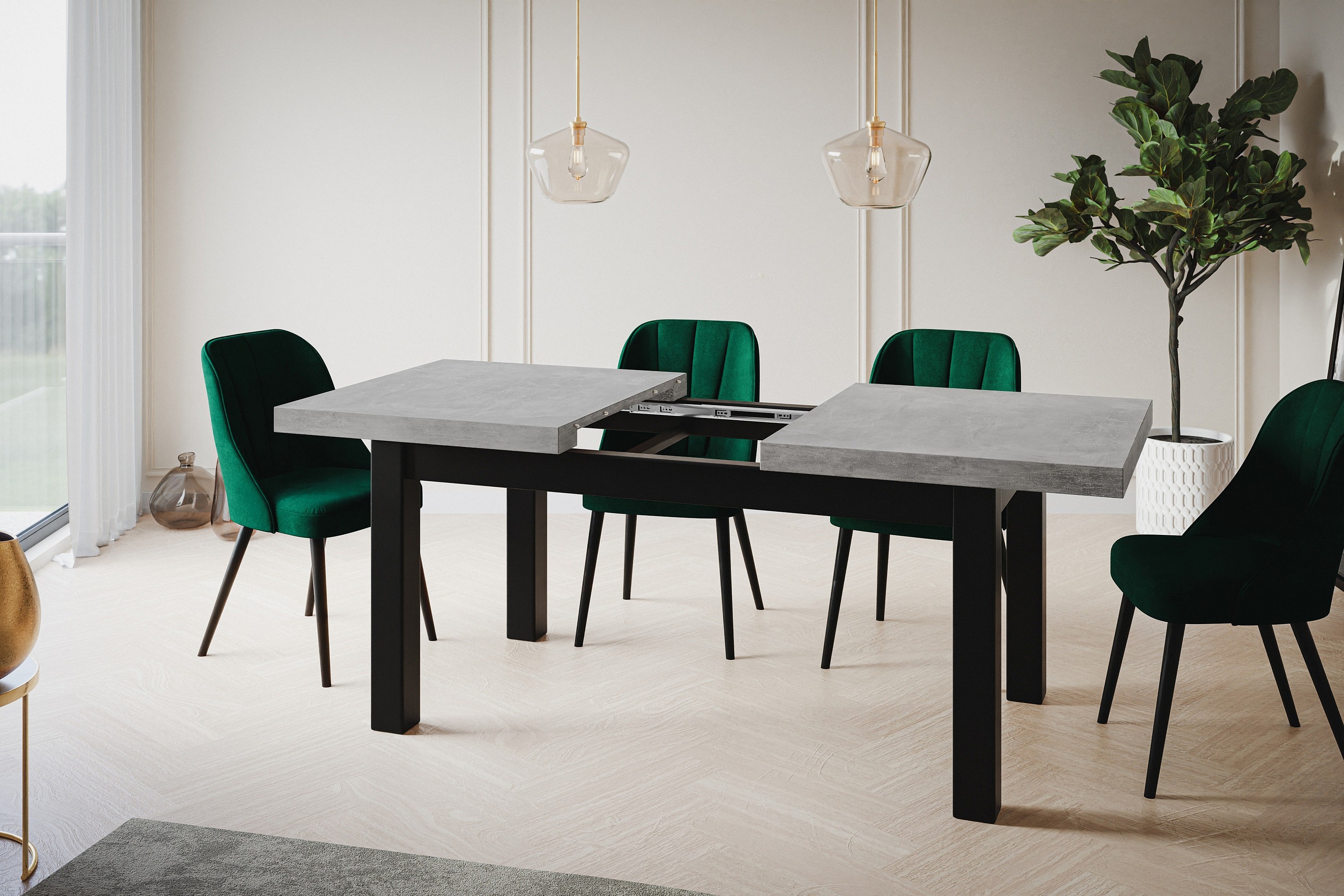 Table de salle à manger rectangulaire CLASSIC, table extensible, dimensions : 120-160X80X78 cm, couleur : ATELIER, avec pieds en bois de couleur blanche