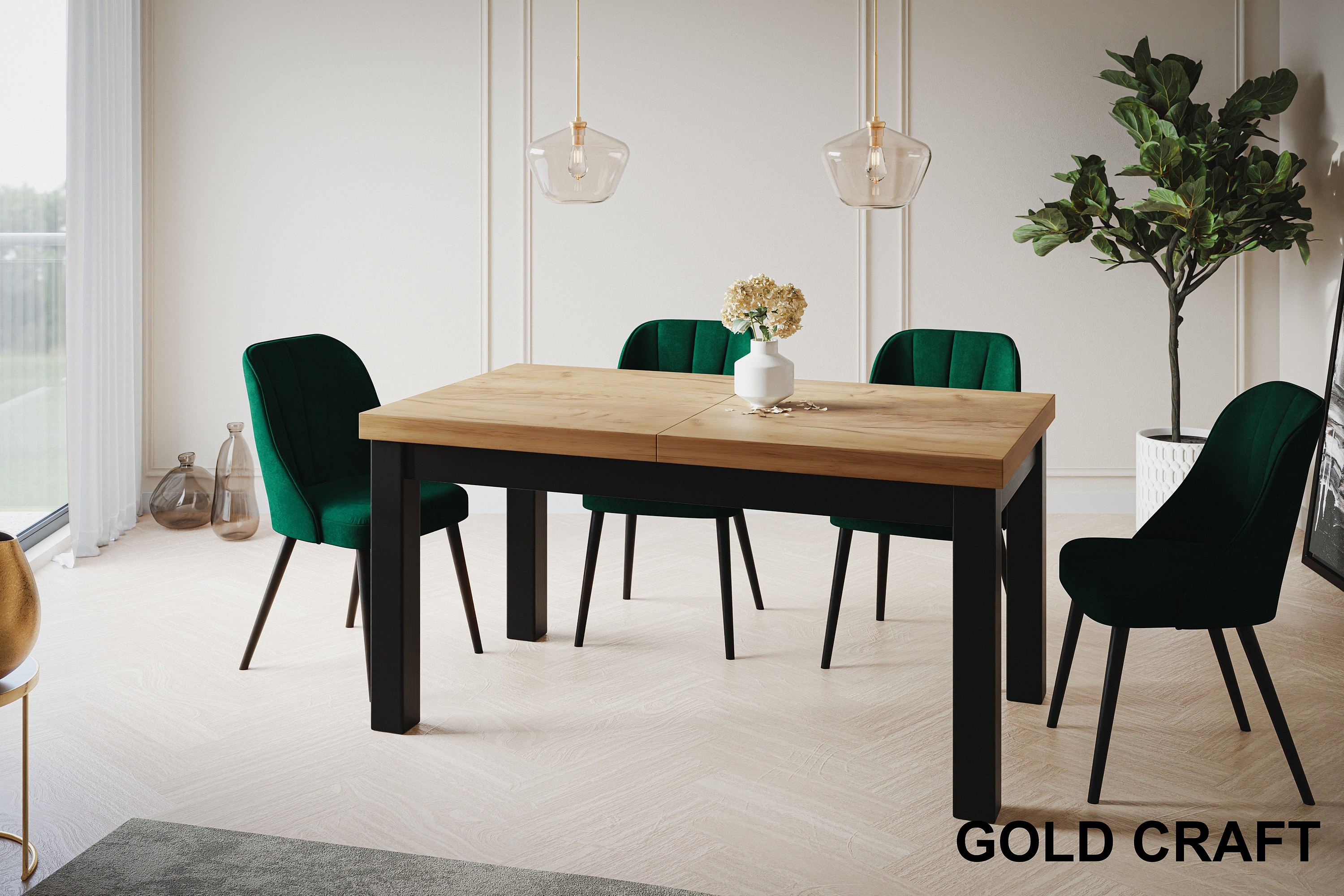 Table de salle à manger rectangulaire CLASSIC, table extensible, dimensions : 120-160X80X78 cm, couleur : CRAFT, avec pieds en bois de couleur noire
