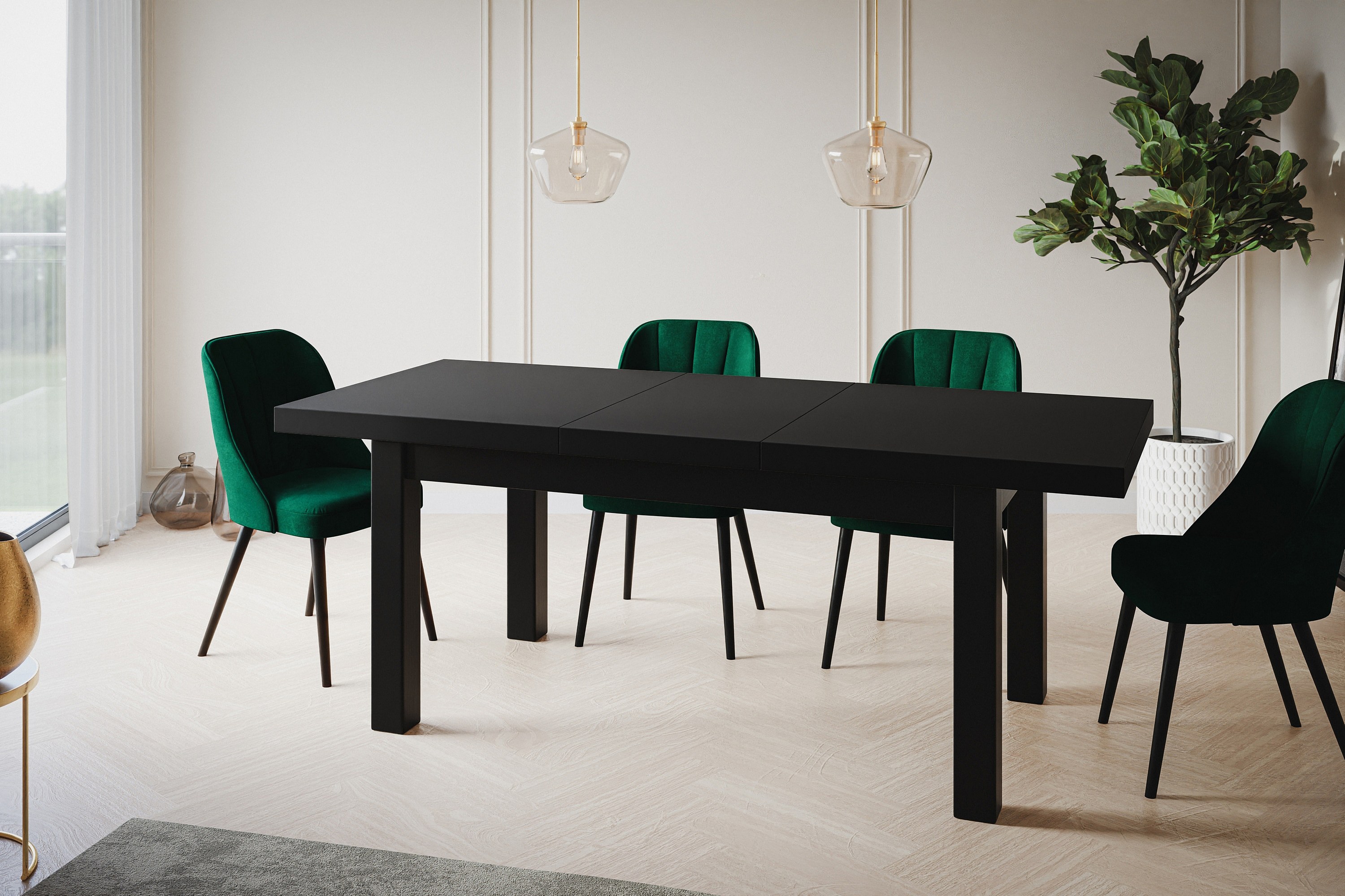 Table de salle à manger rectangulaire CLASSIC, table extensible, dimensions : 120-160X80X78 cm, couleur : noir, avec pieds en bois de couleur noire
