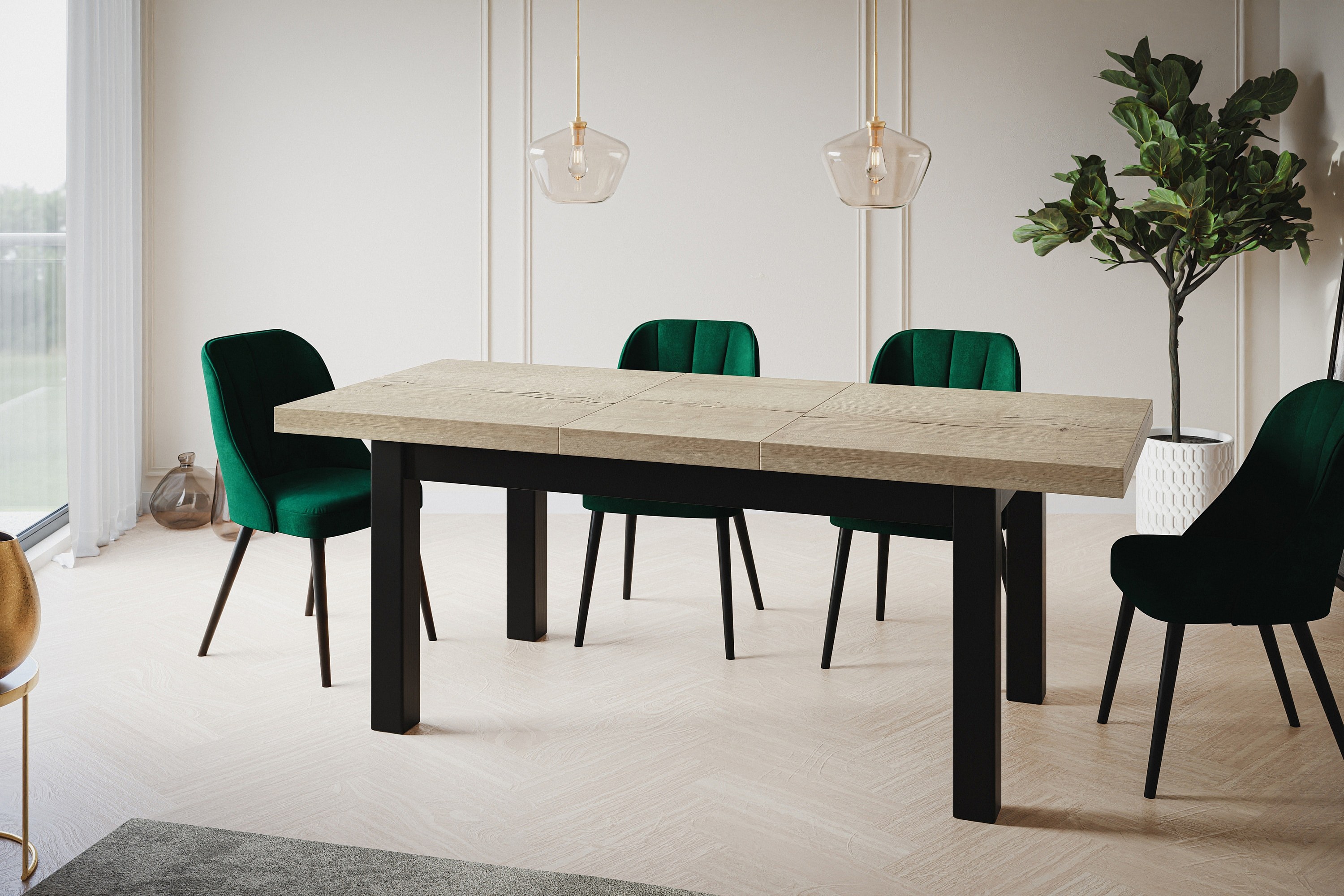 Table de salle à manger rectangulaire CLASSIC, table extensible, dimensions : 160-210X90X78 cm, couleur : HALIFAX, avec pieds en bois de couleur noire