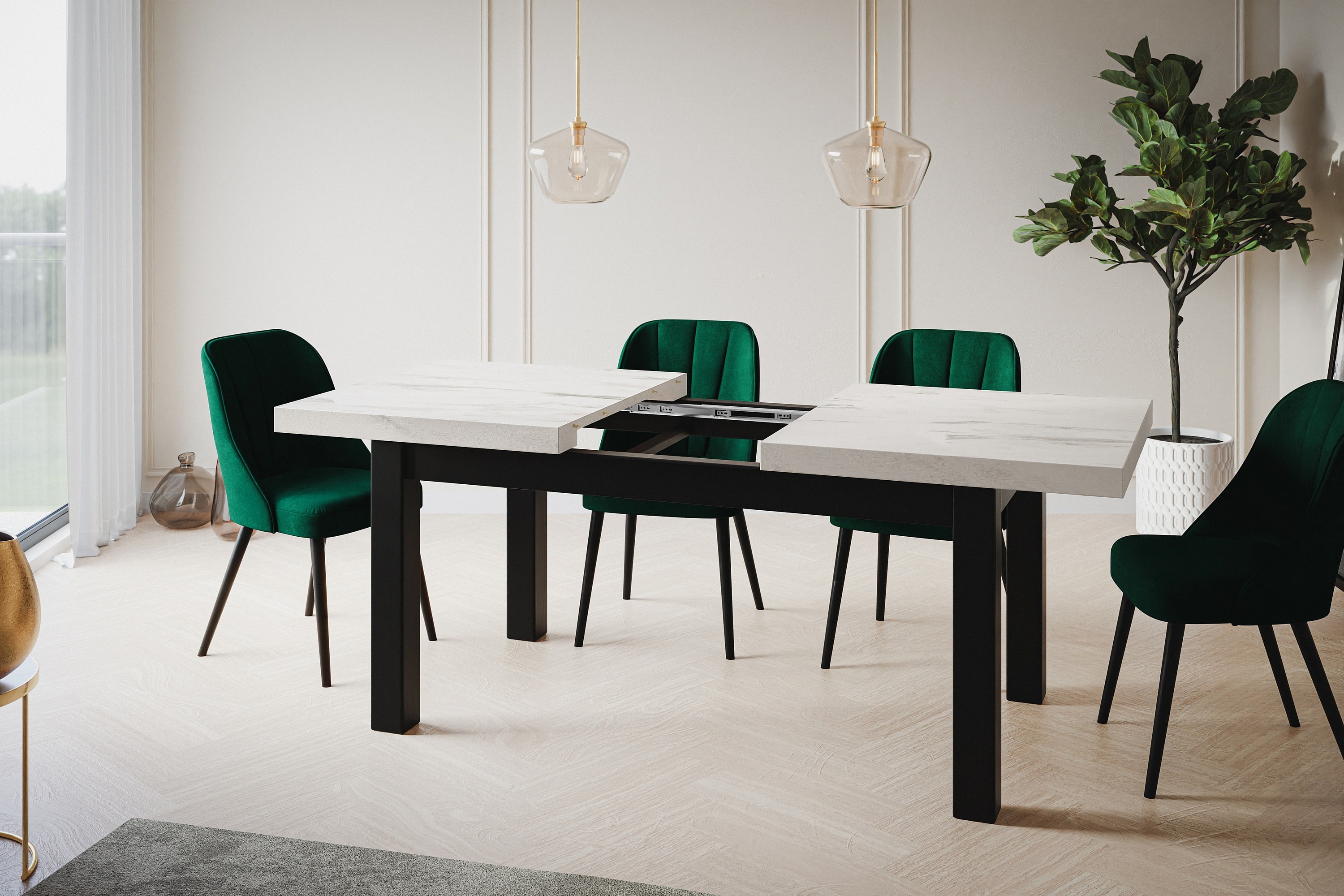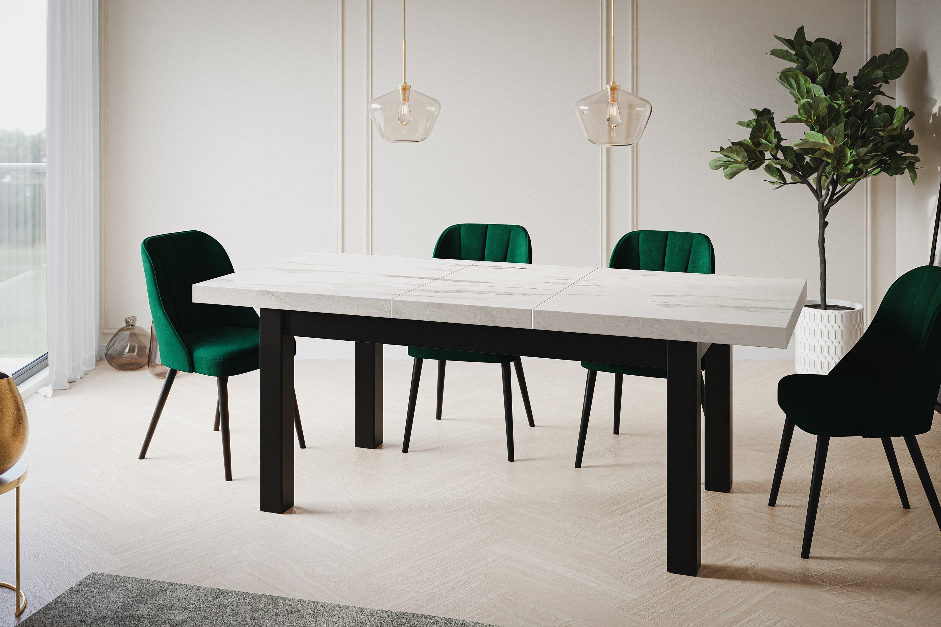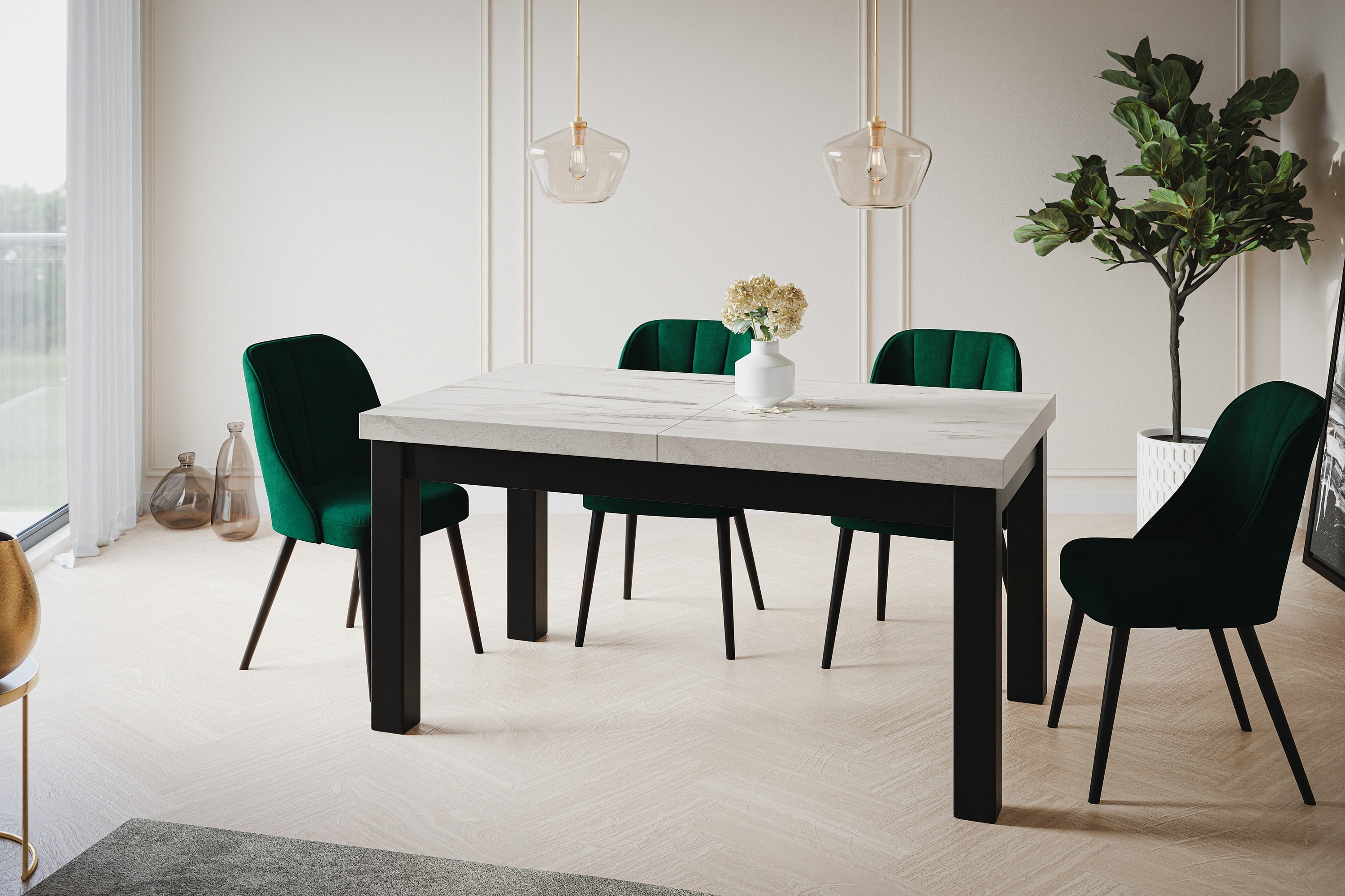 Table de salle à manger rectangulaire CLASSIC, table extensible, dimensions : 160-210X90X78 cm, couleur : MARMUR, avec pieds en bois de couleur noire