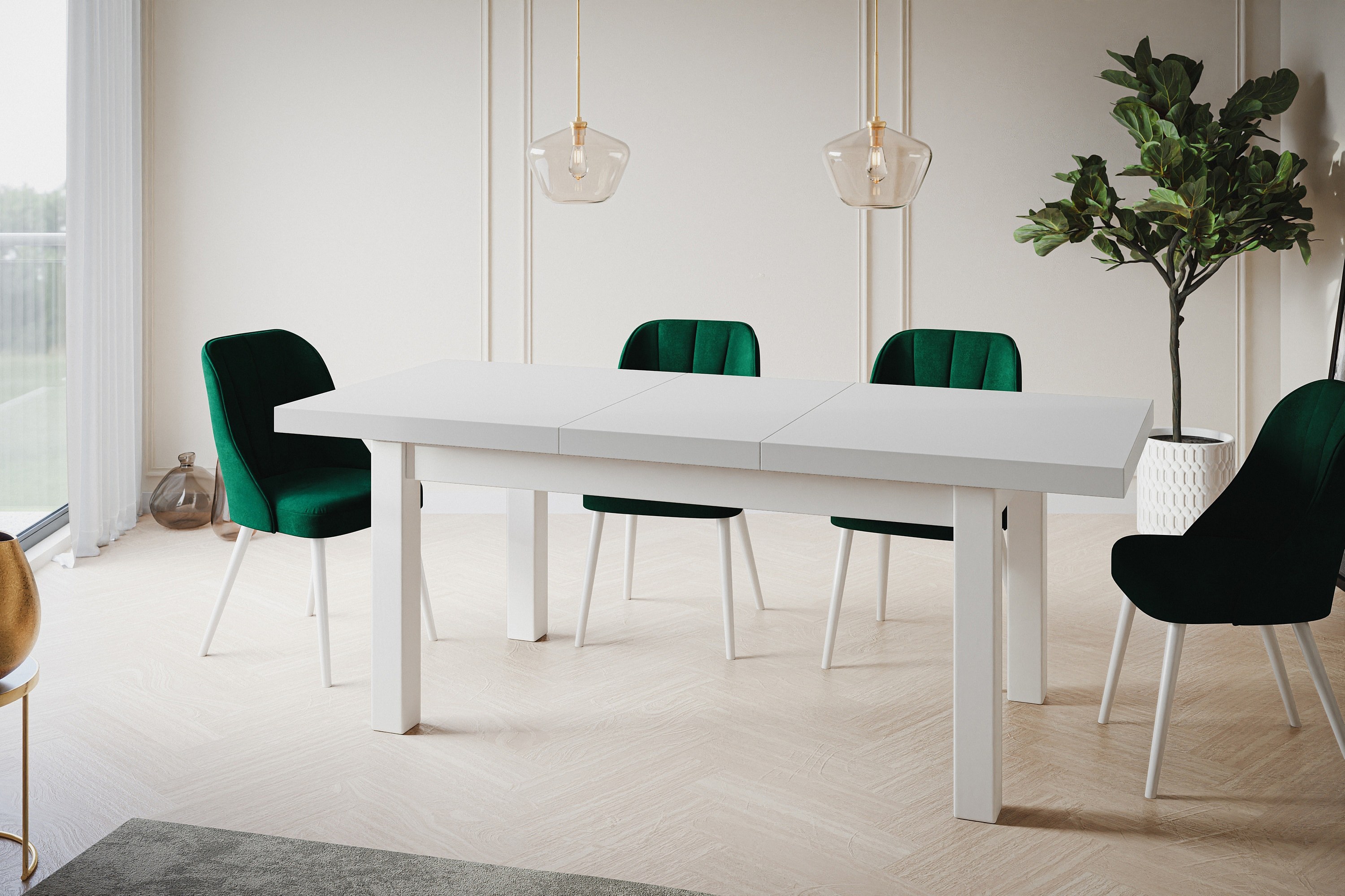 Table de salle à manger rectangulaire CLASSIC, table extensible, dimensions : 170-250X90X78 cm, couleur : blanc, avec pieds en bois de couleur blanche