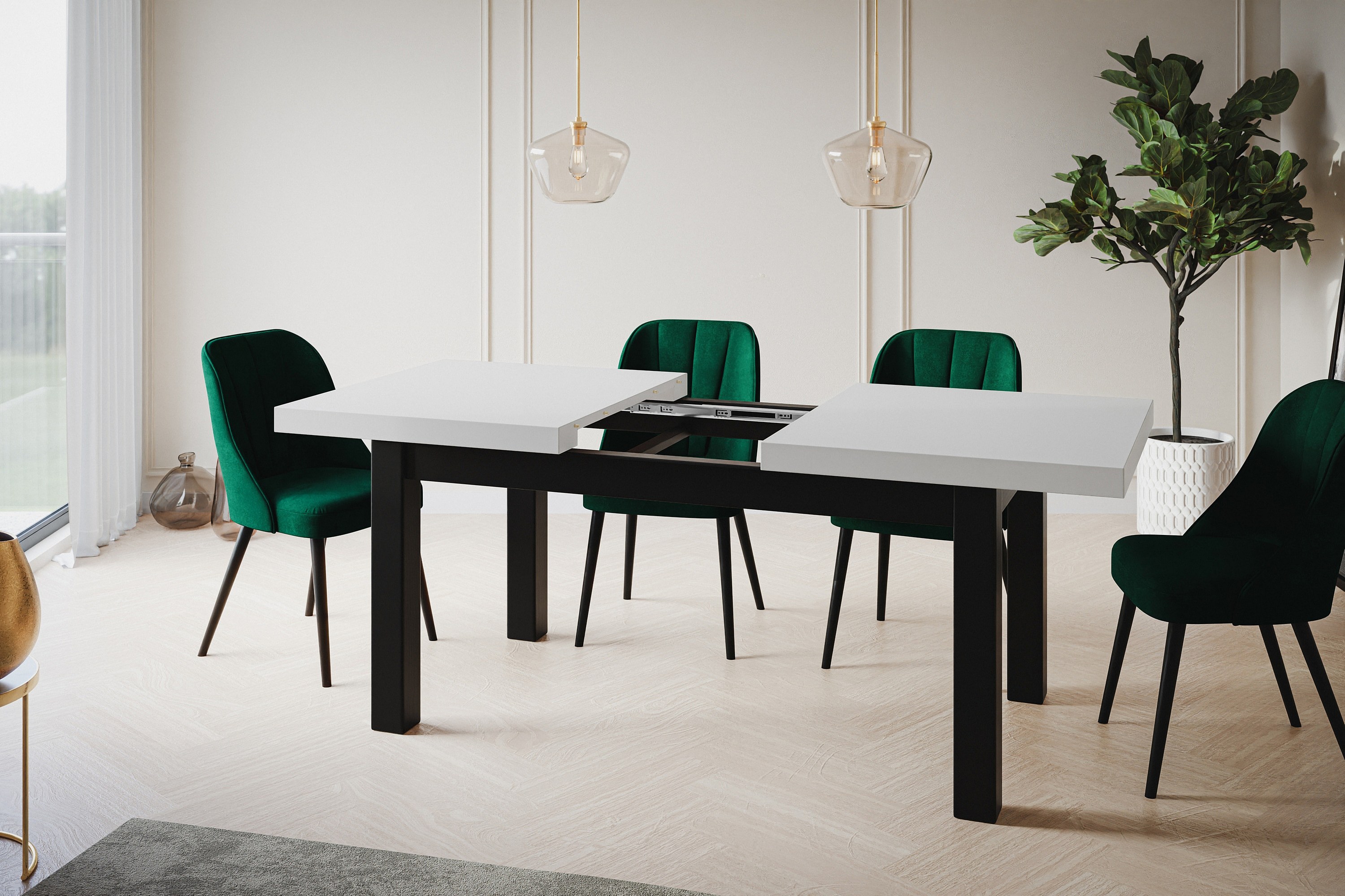 Table de salle à manger rectangulaire CLASSIC, table extensible, dimensions : 170-250X90X78 cm, couleur : blanc, avec pieds en bois de couleur noire
