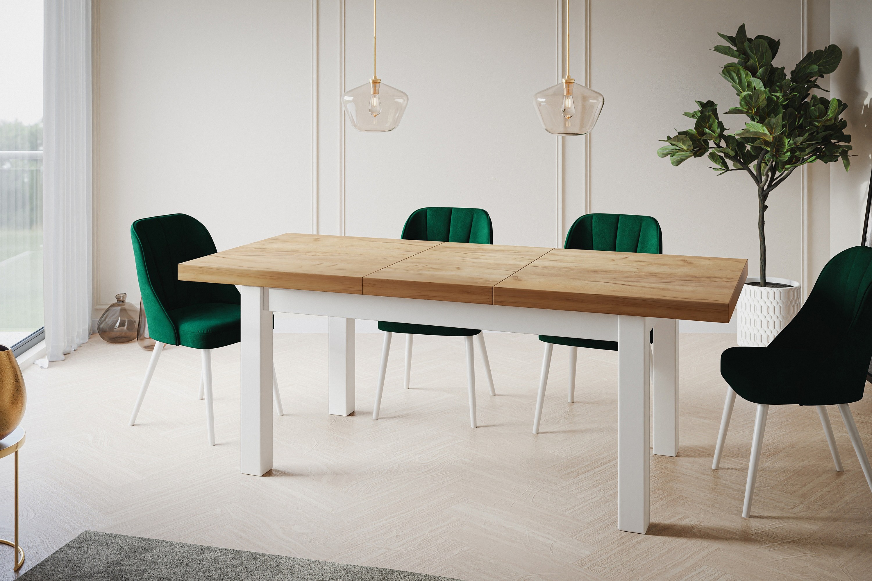 Table de salle à manger rectangulaire CLASSIC, table extensible, dimensions : 170-250X90X78 cm, couleur : CRAFT, avec pieds en bois de couleur blanche