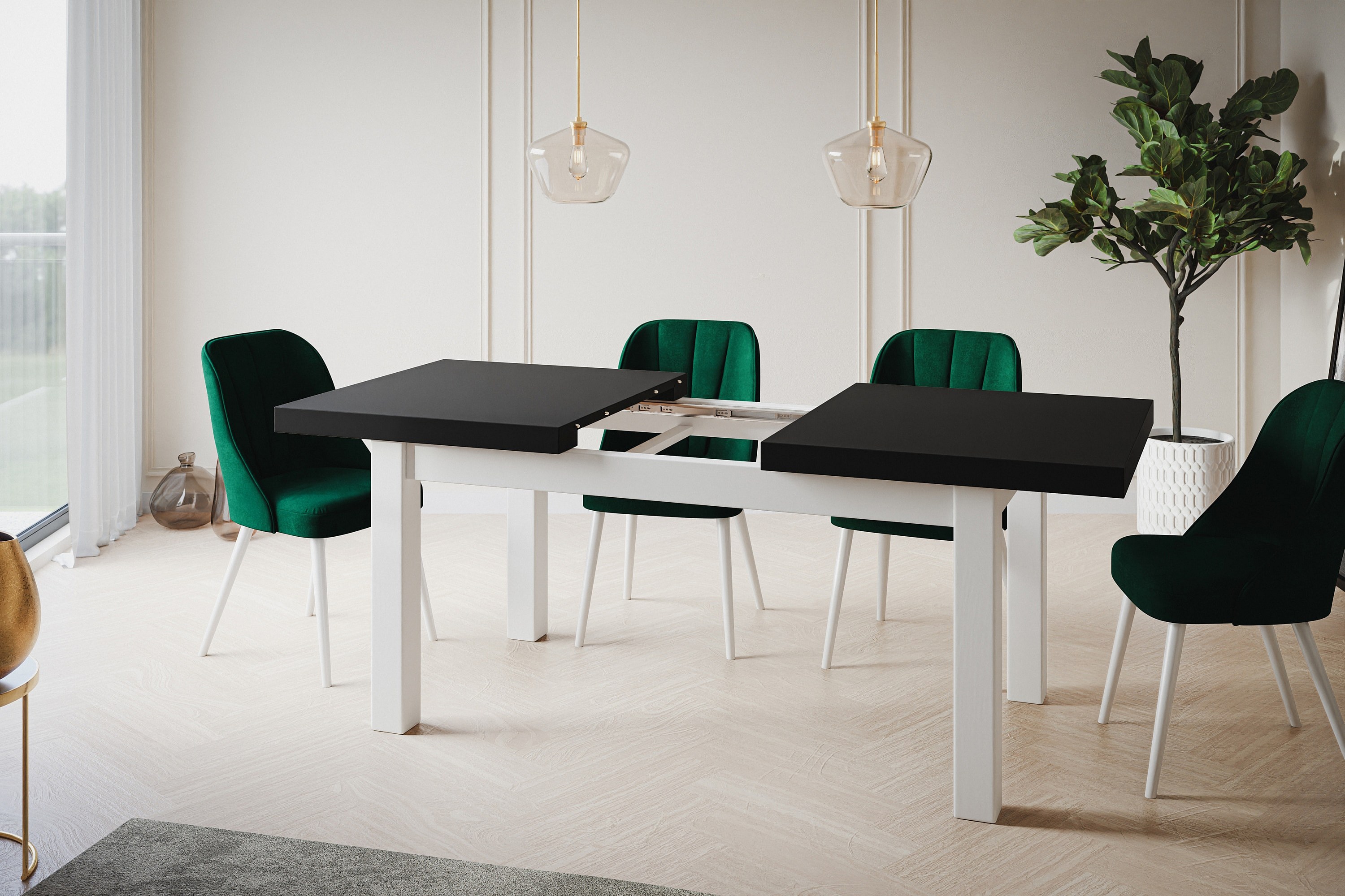Table de salle à manger rectangulaire CLASSIC, table extensible, dimensions : 170-250X90X78 cm, couleur : noir, avec pieds en bois de couleur blanche