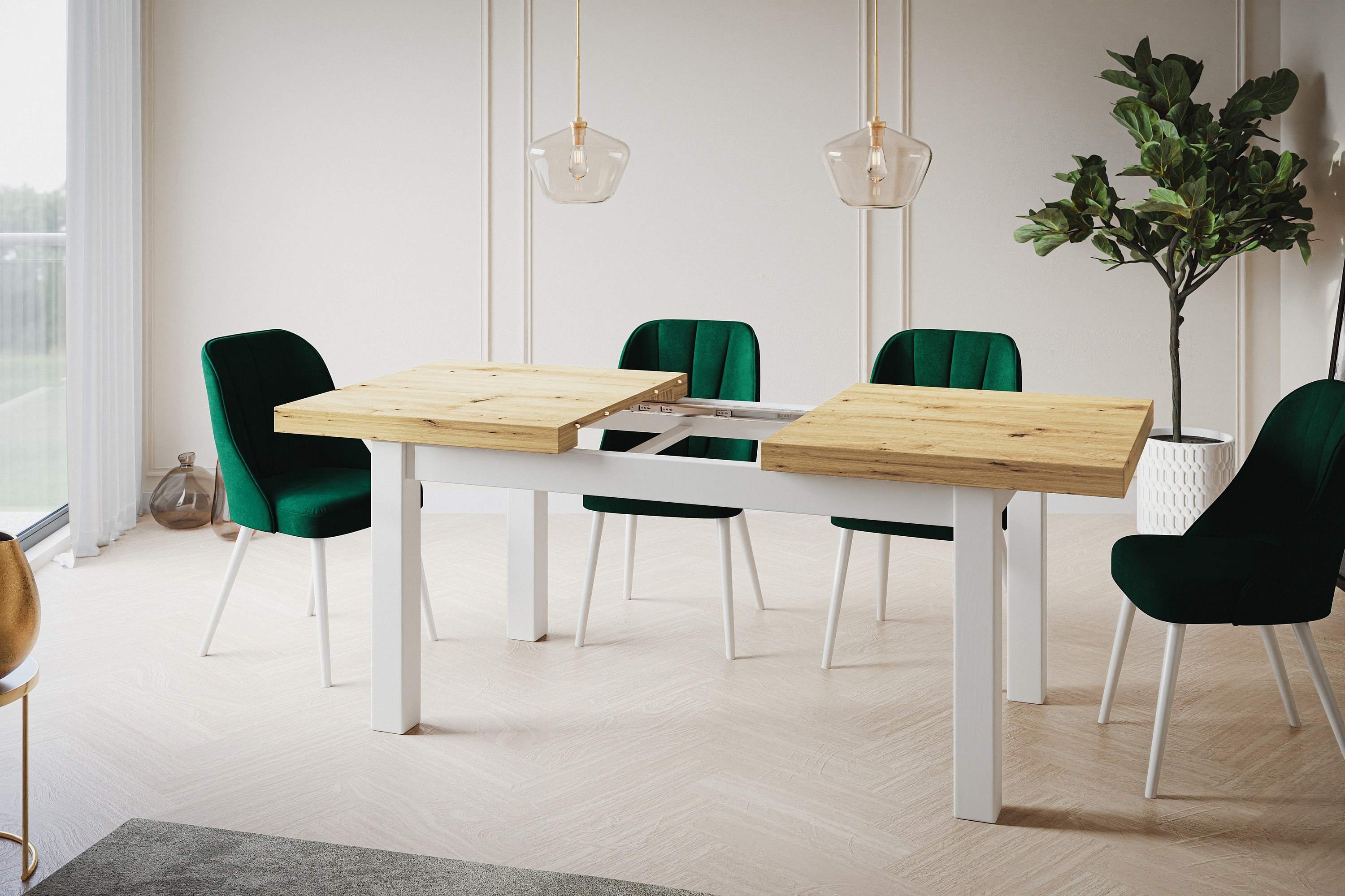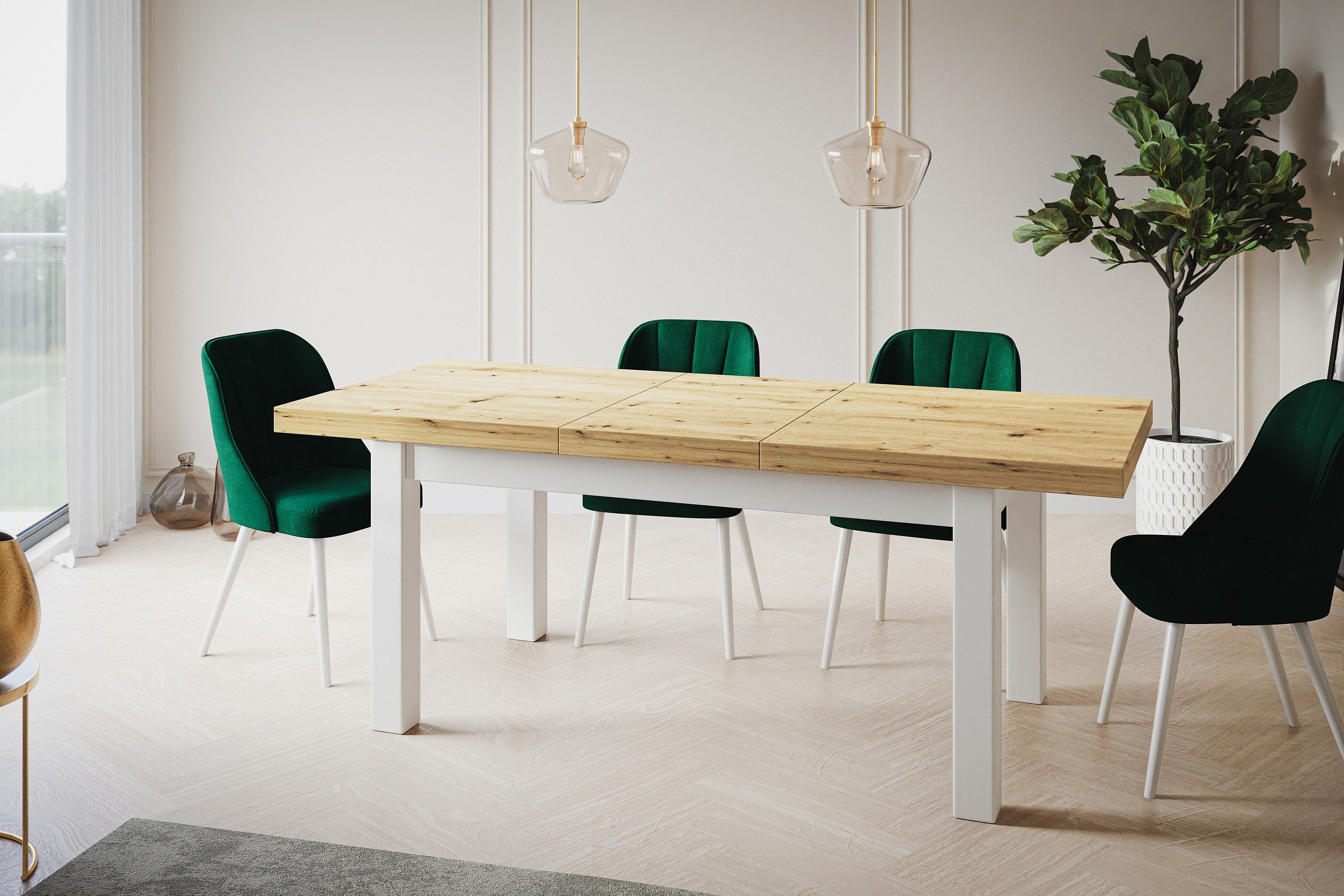 Table de salle à manger rectangulaire CLASSIC, table extensible, dimensions : 200-300X100X78 cm, couleur : ARTISAN, avec pieds en bois de couleur blanche