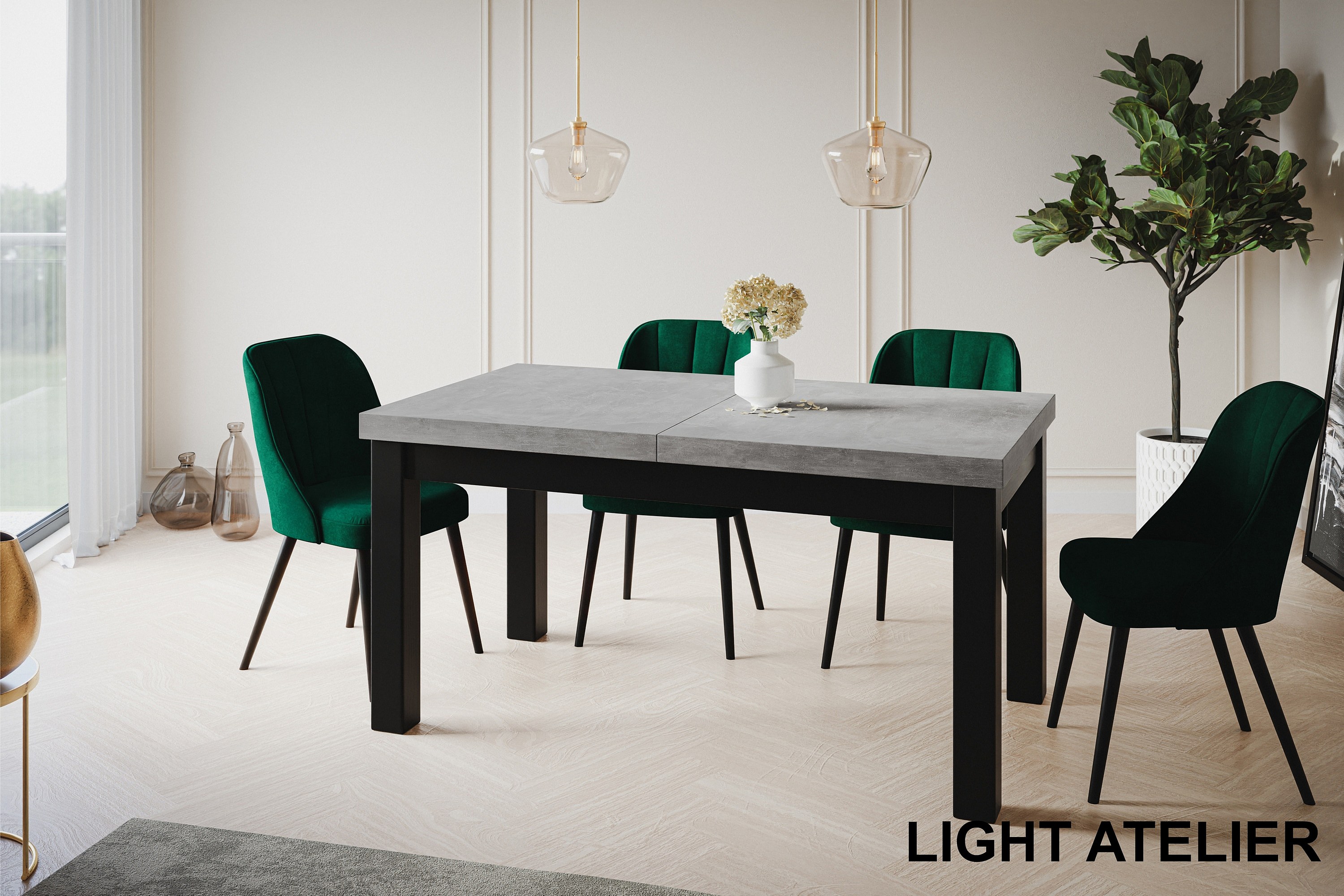 Table de salle à manger rectangulaire CLASSIC, table extensible, dimensions : 200-300X100X78 cm, couleur : ATELIER, avec pieds en bois de couleur blanche