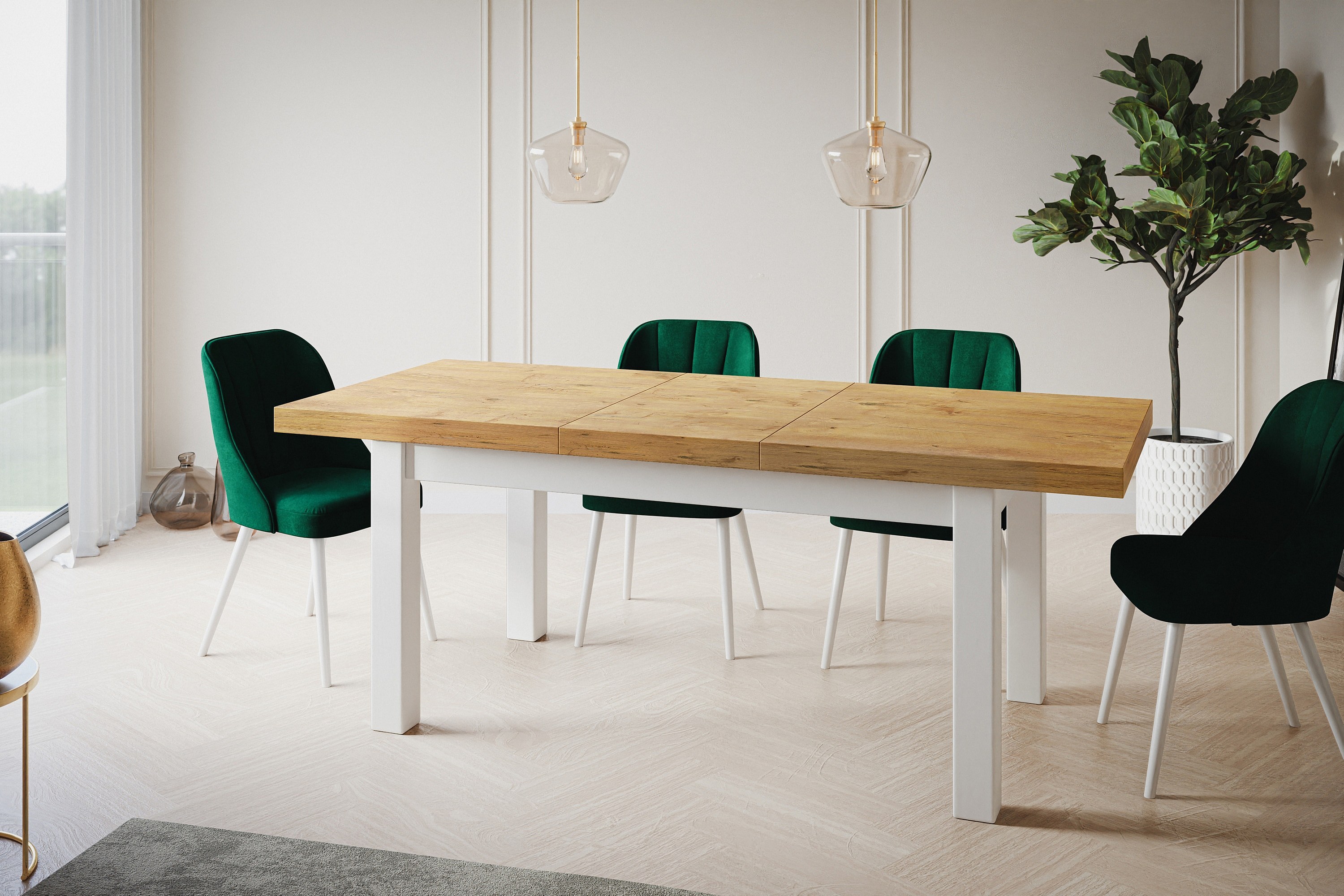Table de salle à manger rectangulaire CLASSIC, table extensible, dimensions : 200-300X100X78 cm, couleur : LANCELOT, avec pieds en bois de couleur blanche