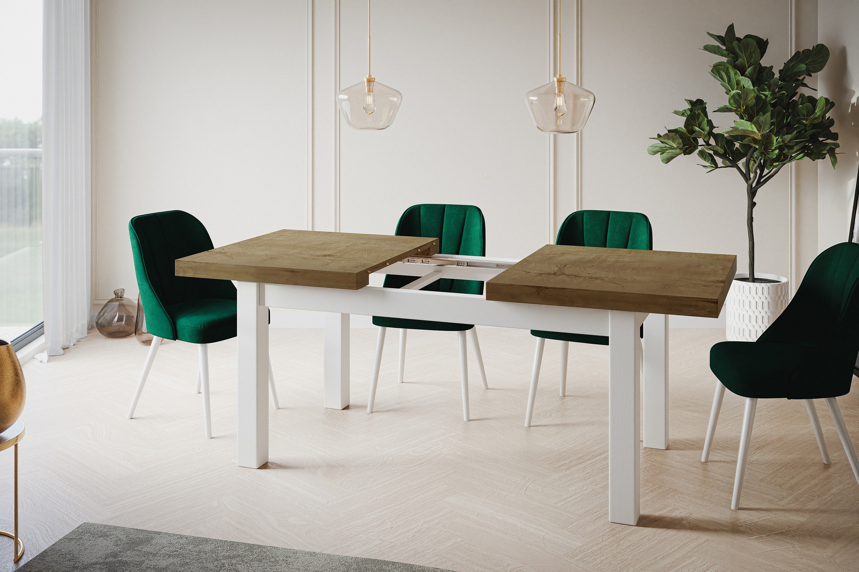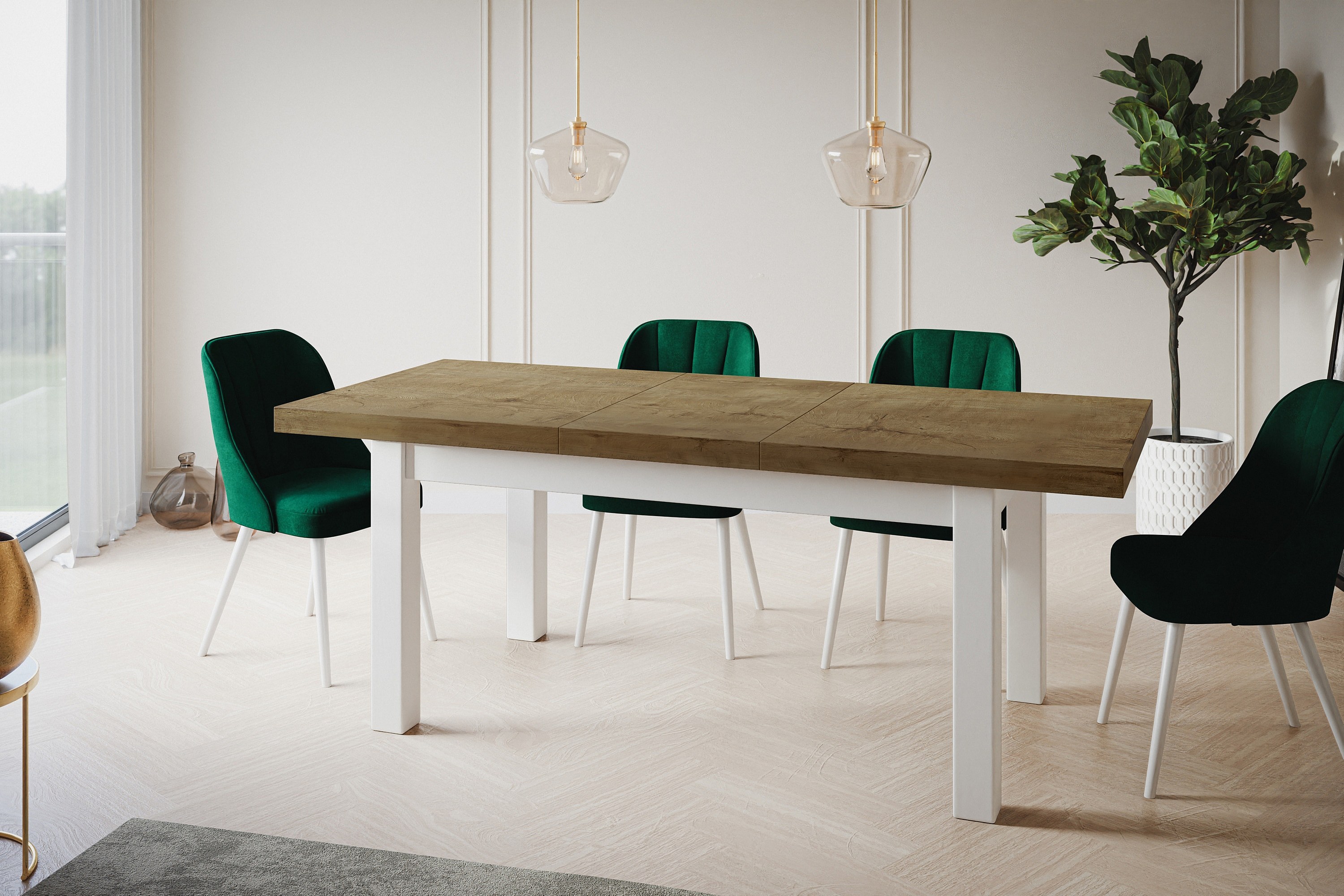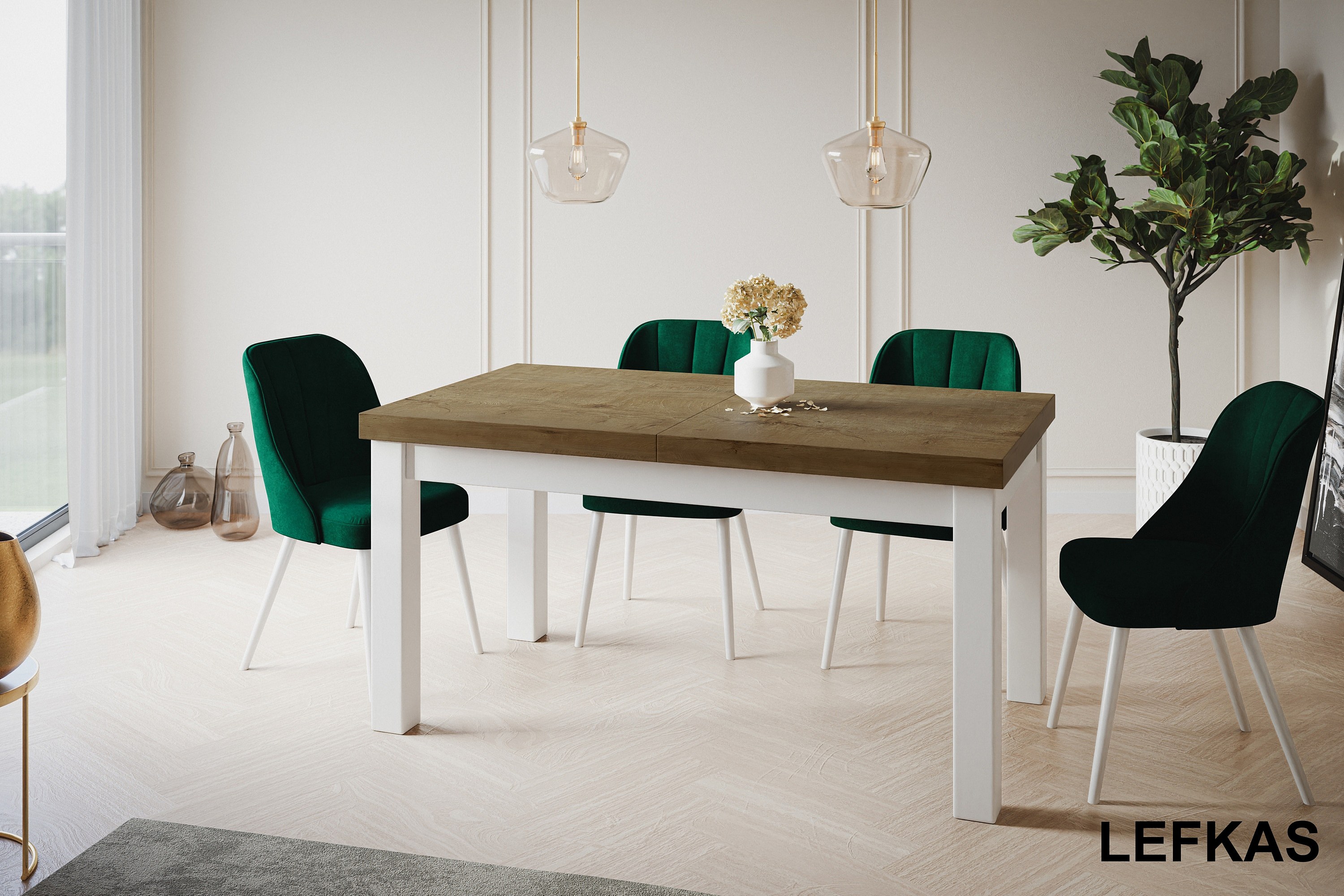 Table de salle à manger rectangulaire CLASSIC, table extensible, dimensions : 200-300X100X78 cm, couleur : LEFKAS, avec pieds en bois de couleur blanche