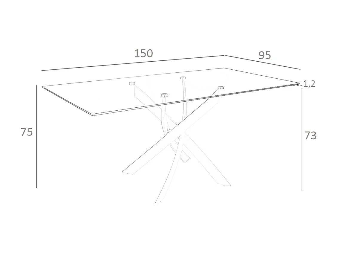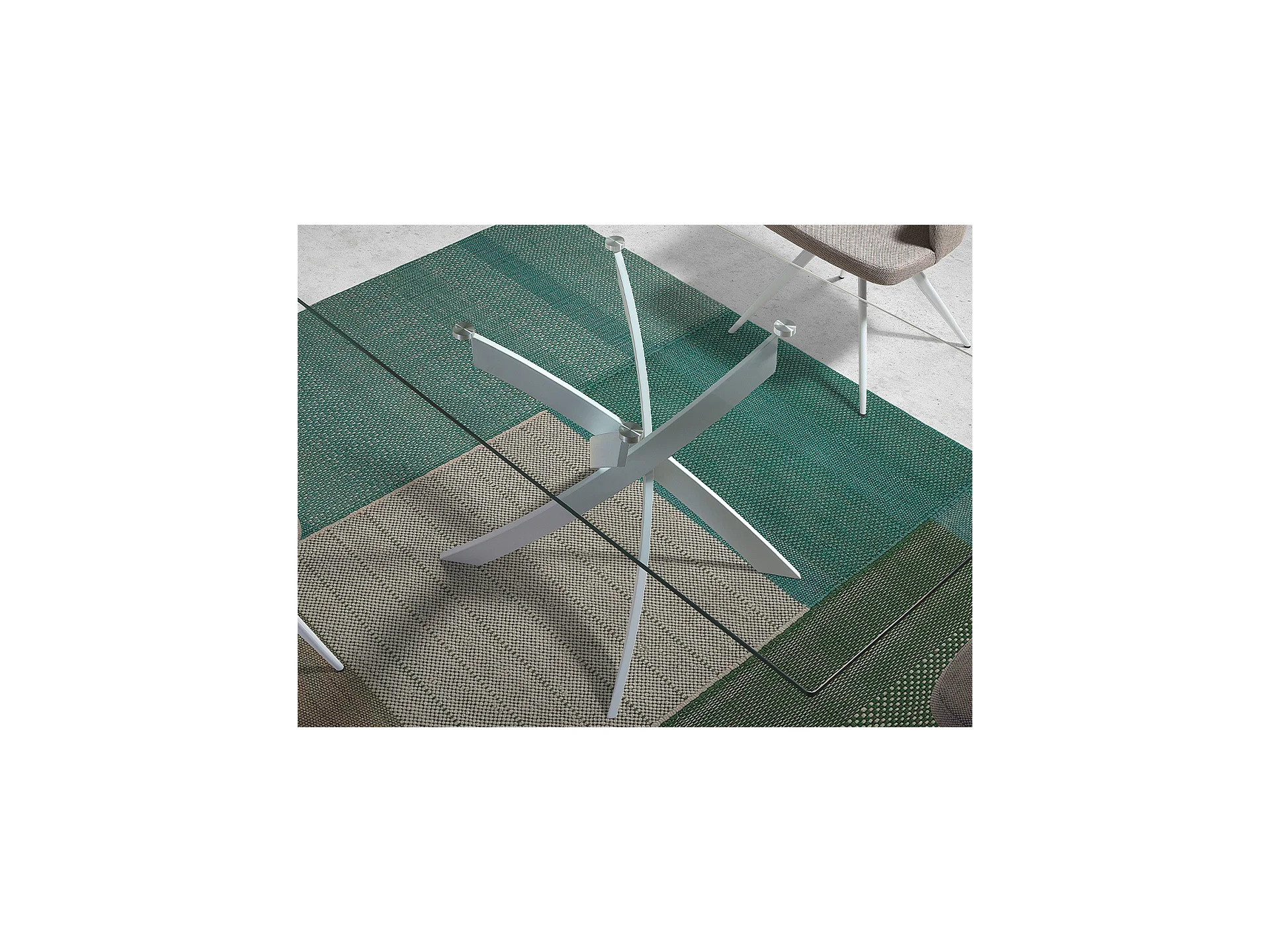 Table à manger rectangulaire verre trempé et acier blanc 1138-150x95 ANGEL CERDA