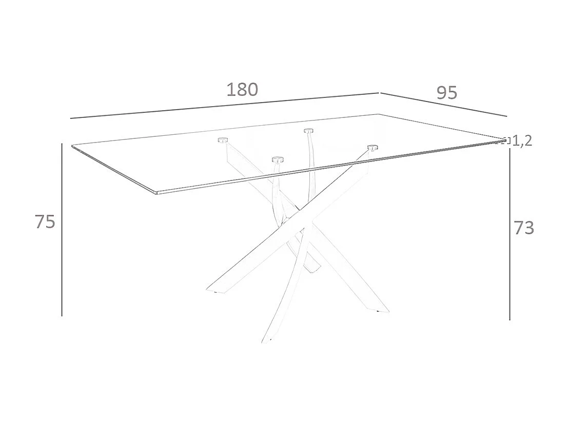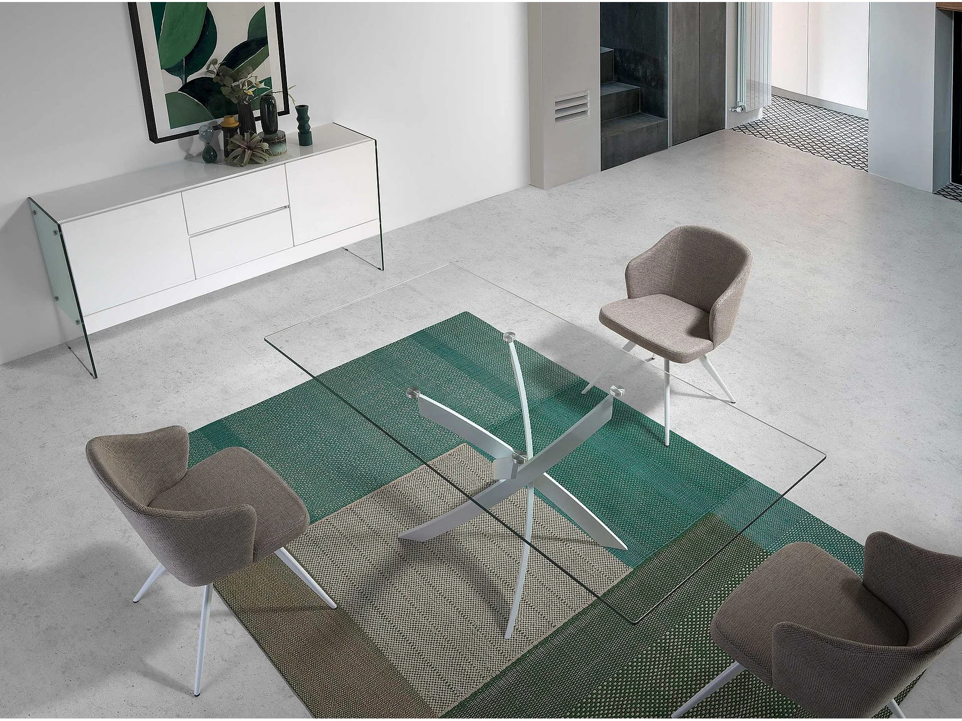 Table à manger rectangulaire verre trempé et acier blanc 1138-180x95 ANGEL CERDA
