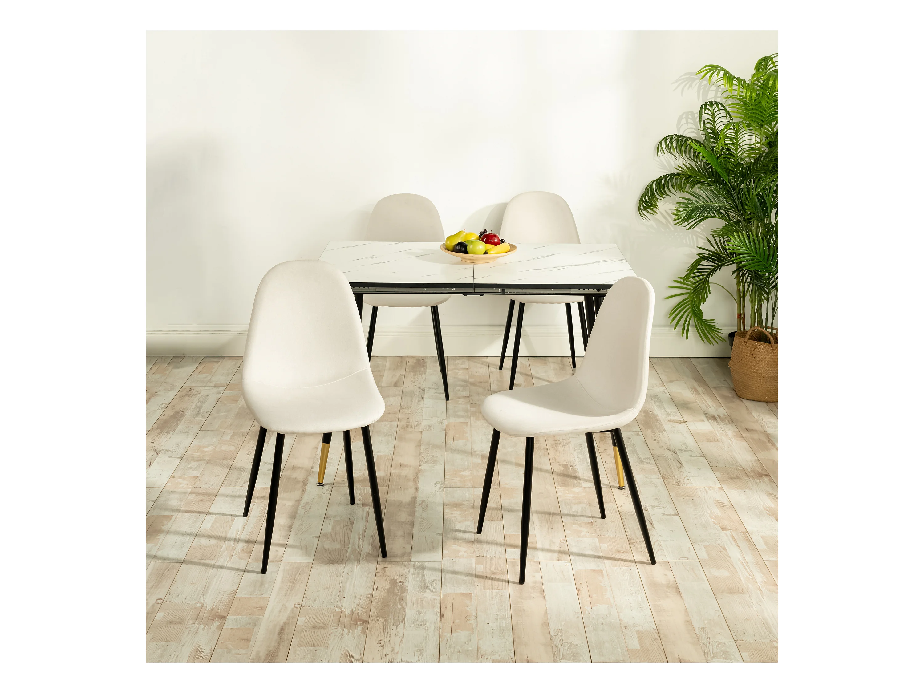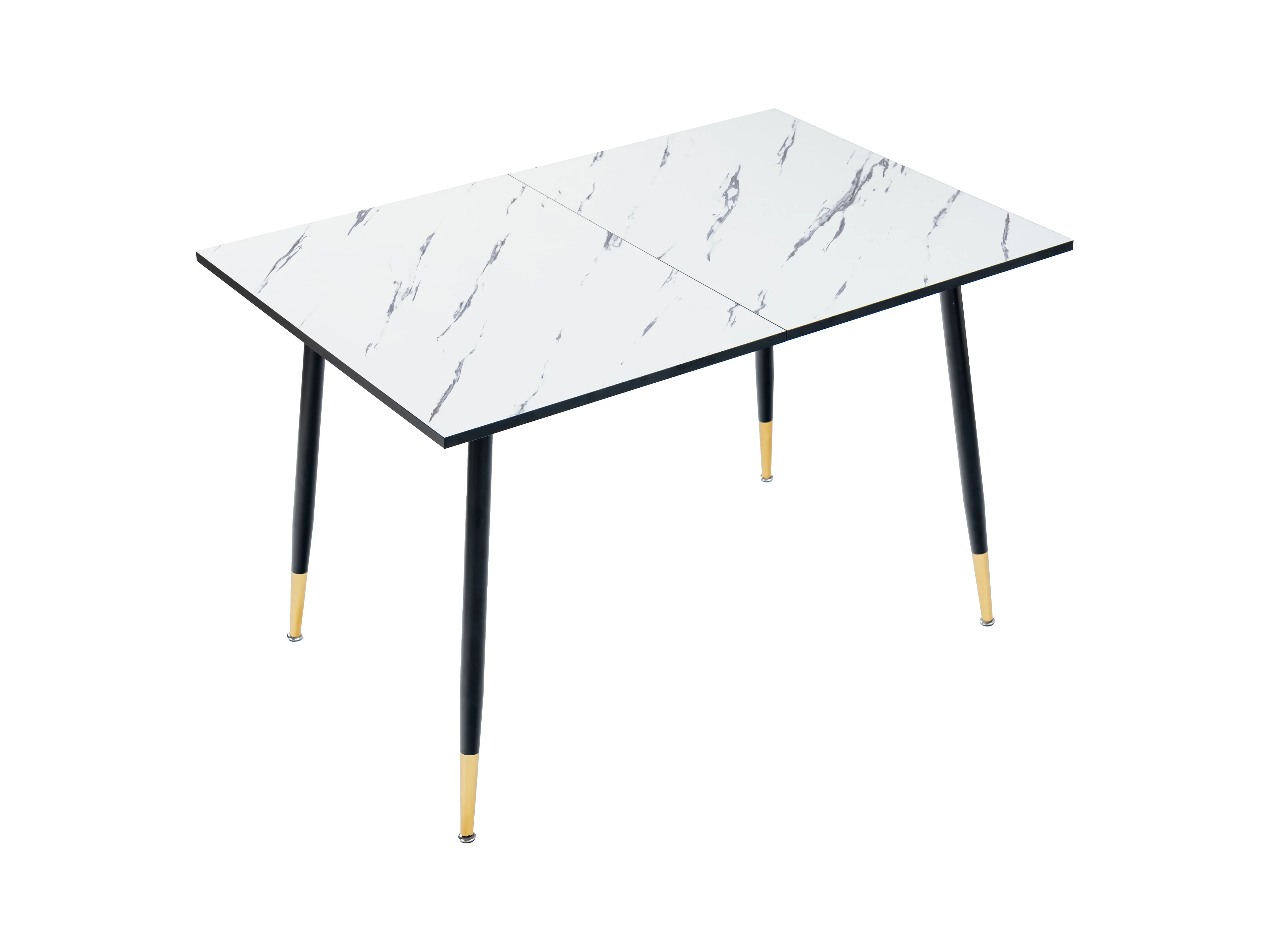 URBAN MEUBLE Table de salle à manger rectangulaire extensible blanche effet marbre de style scandinave pieds noir 120-160cm