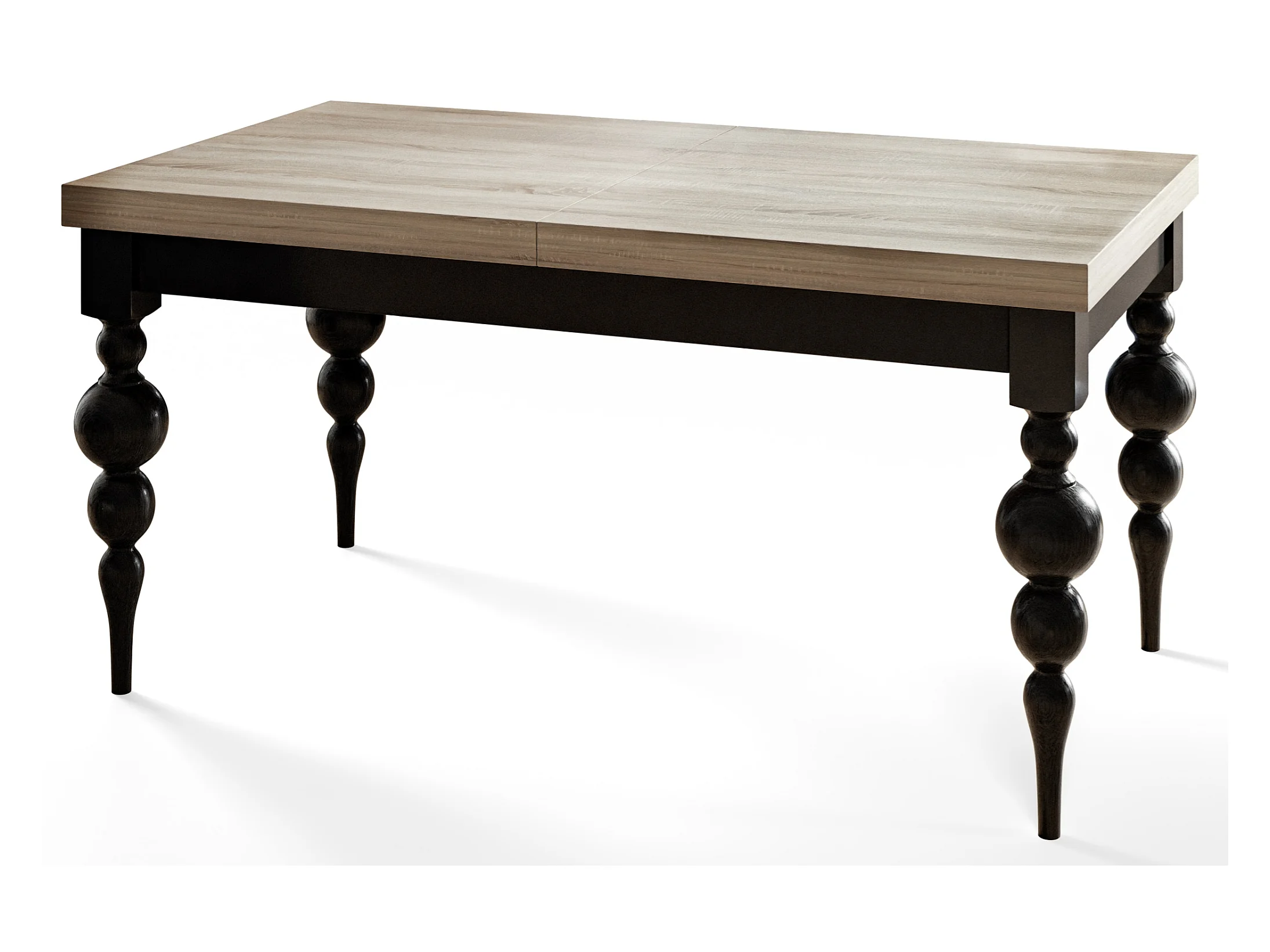 Table de salle à manger rectangulaire LENA, table à rallonges, dimensions: 120-160X80X78,5 cm, couleur: SONOMA, avec pieds de table de couleur noire